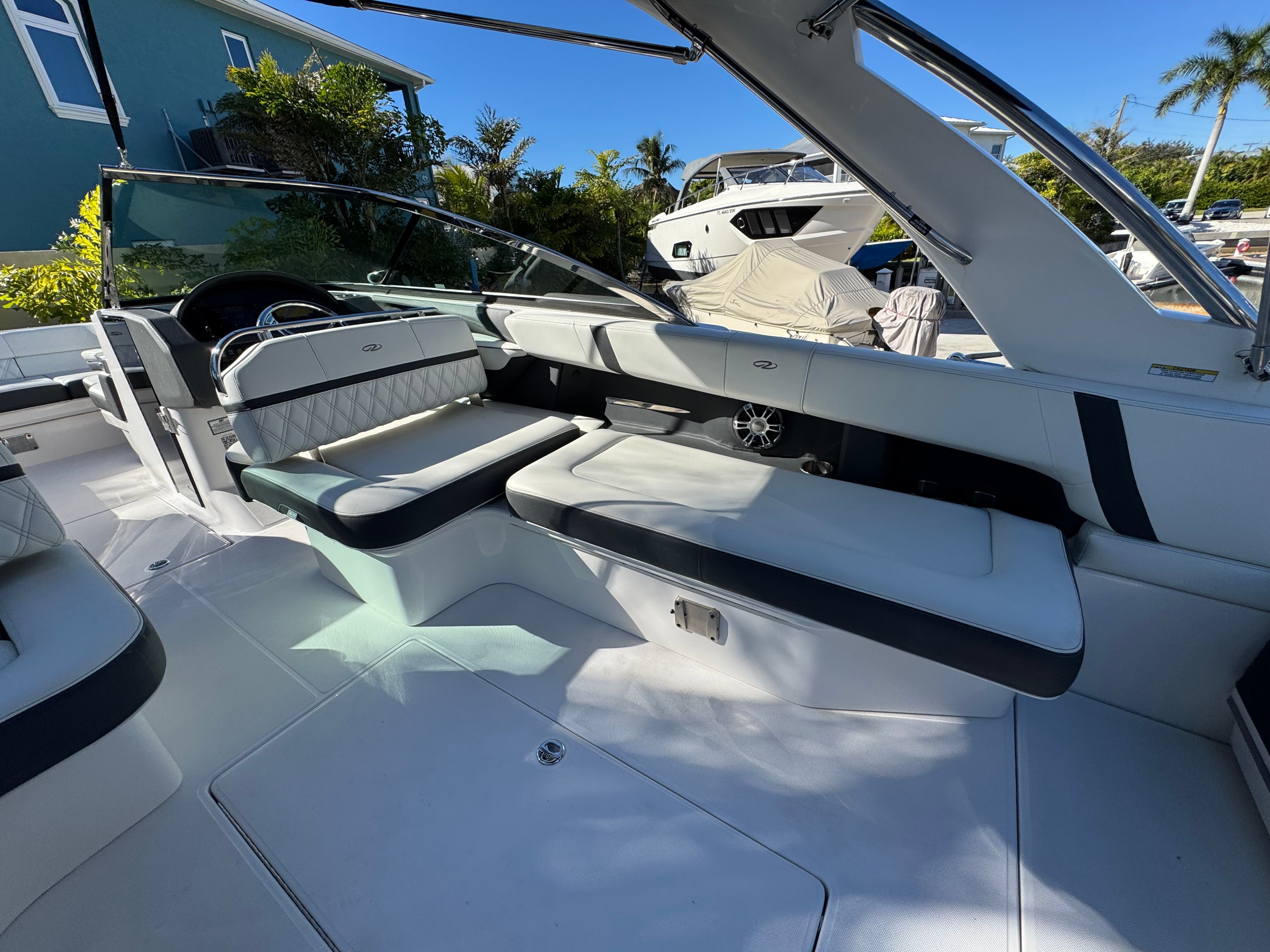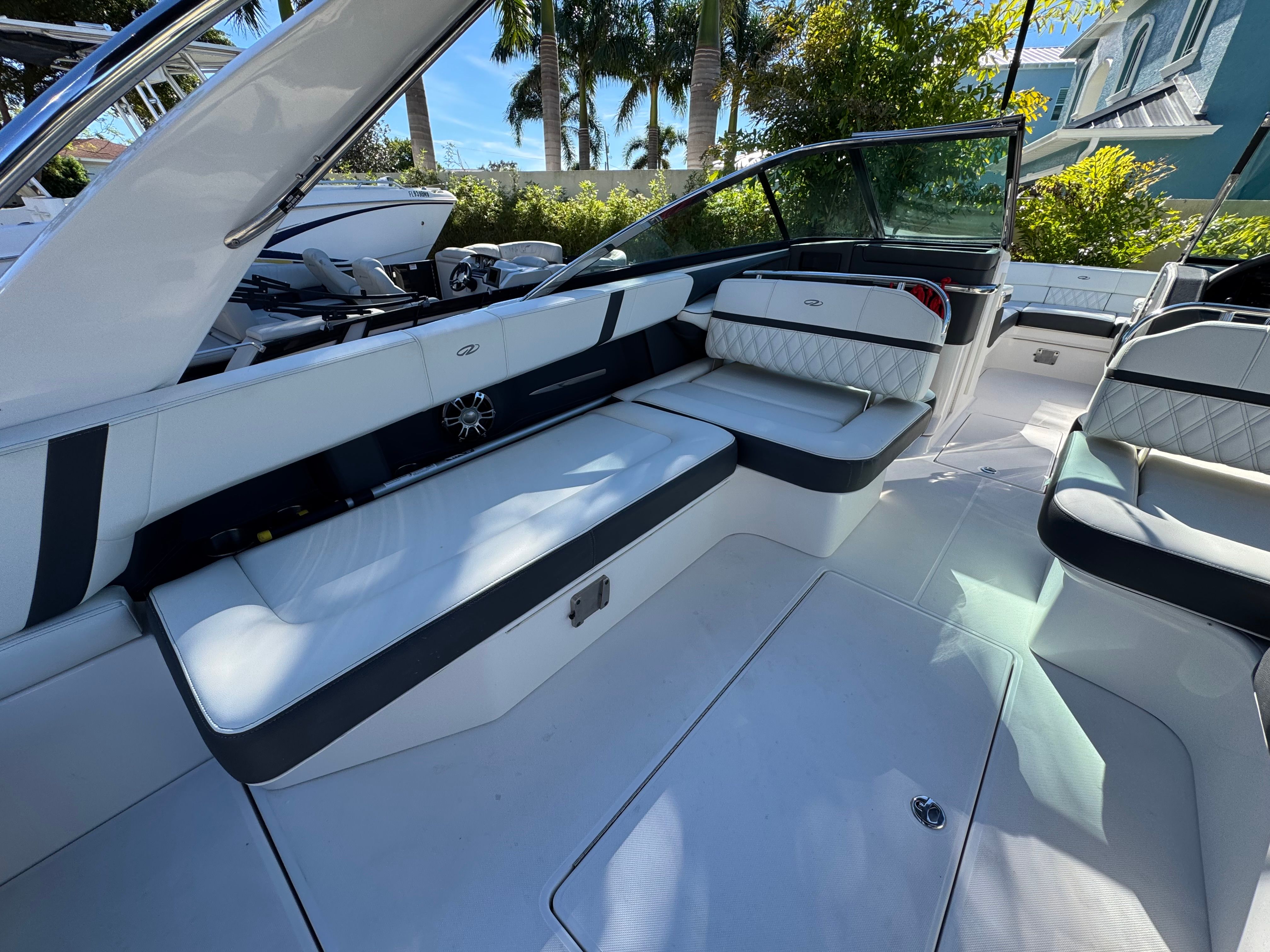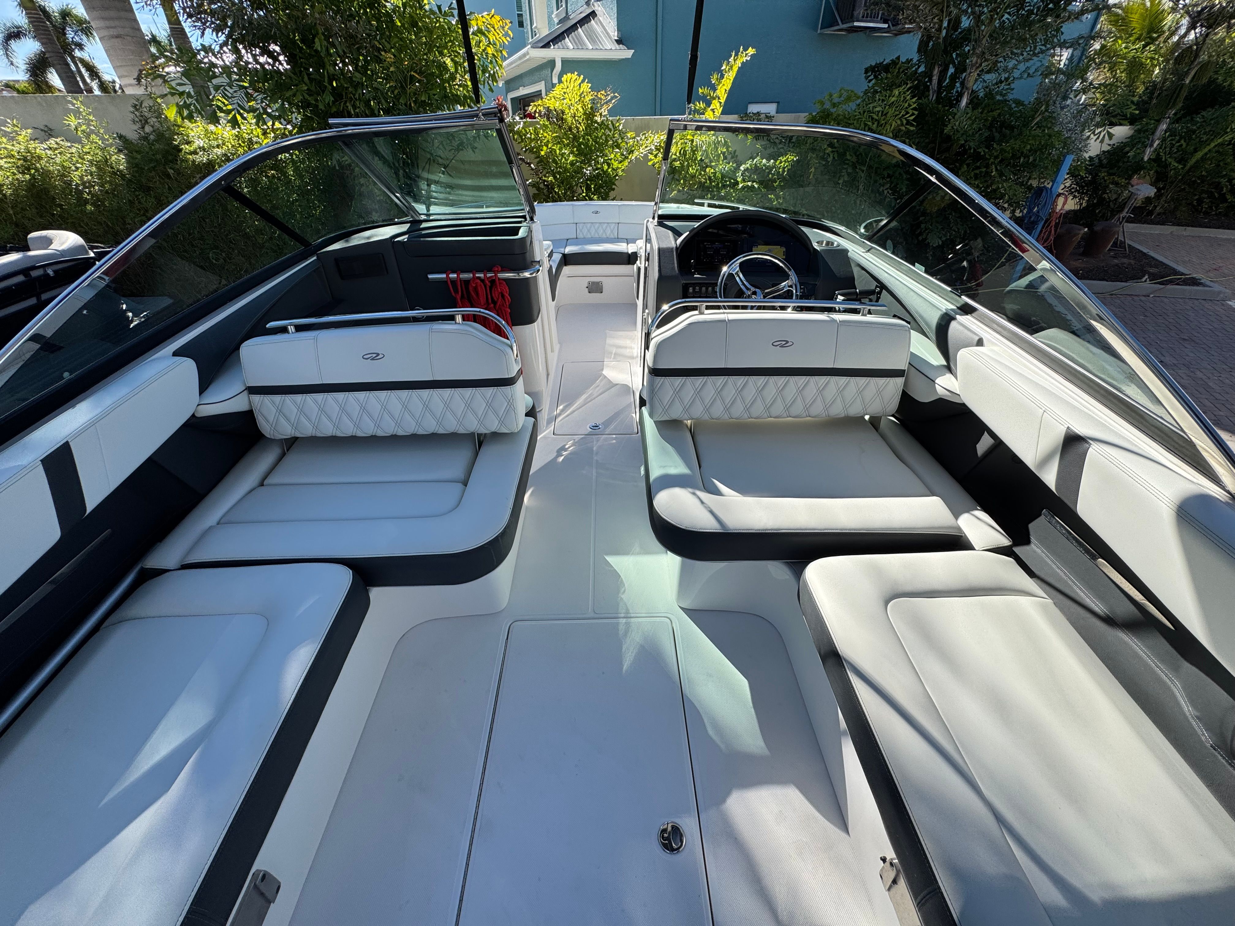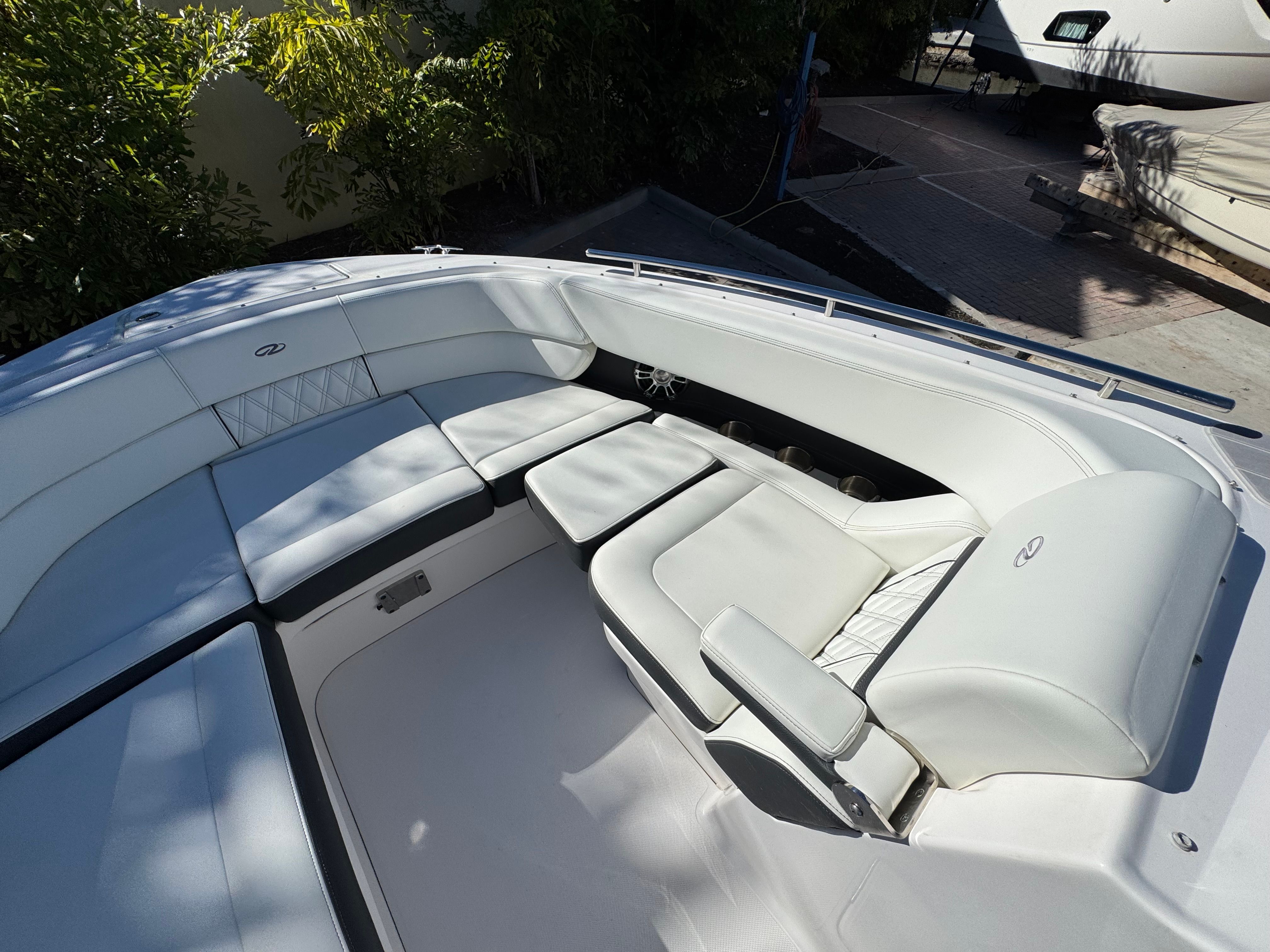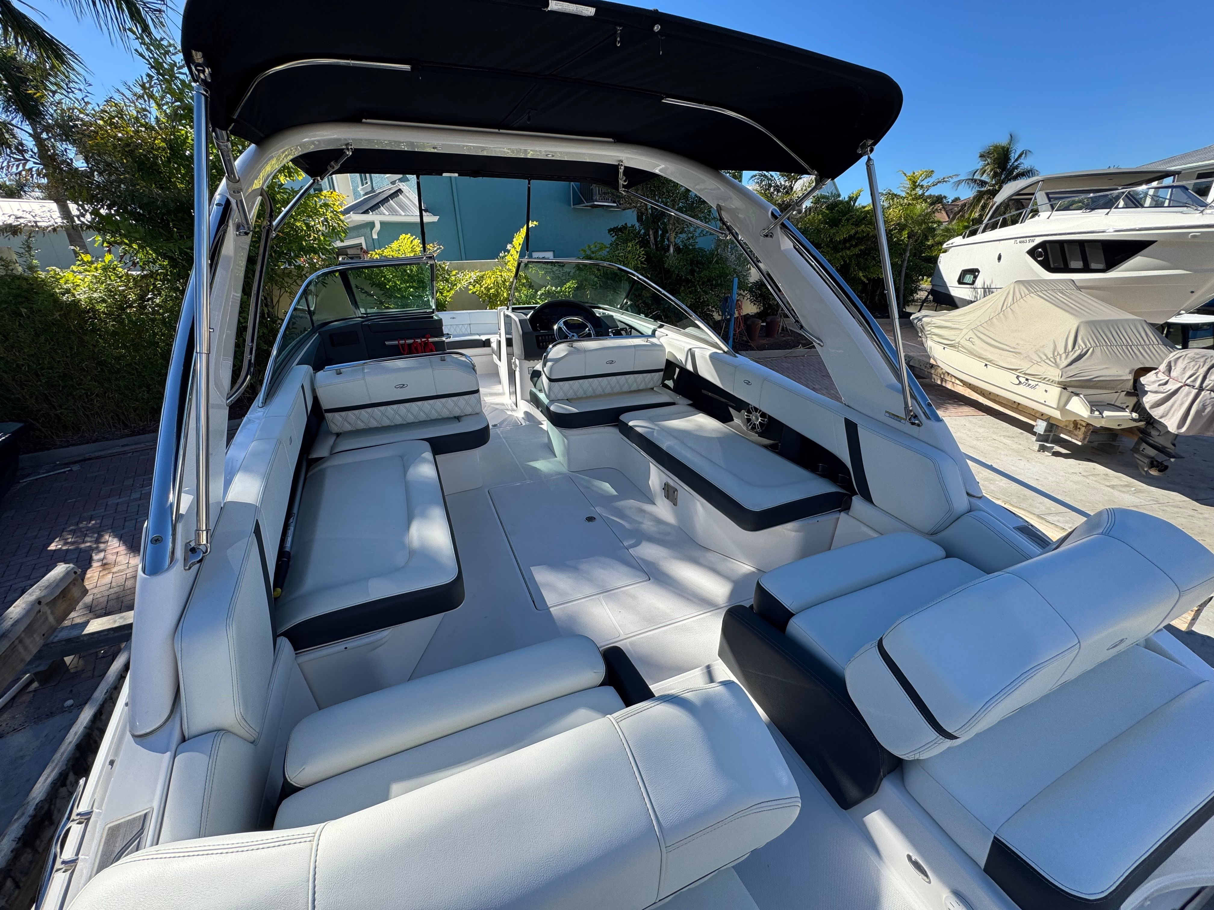 - SLIDEAWAY SEATING - With just a push of a button, slide the dual UltraLounges and center walk-thru to extend your cockpit or swim platform for an extra 10" of space.