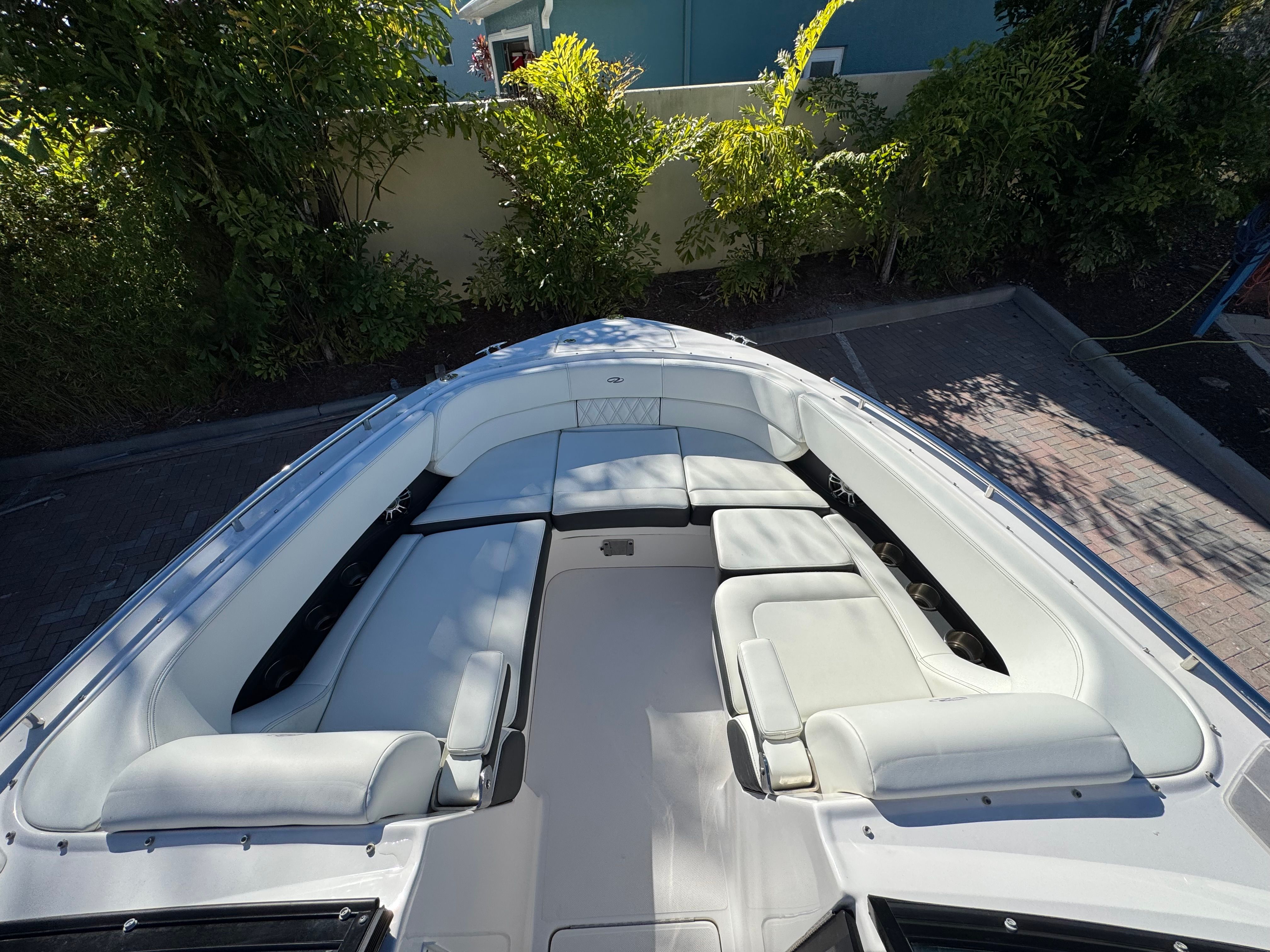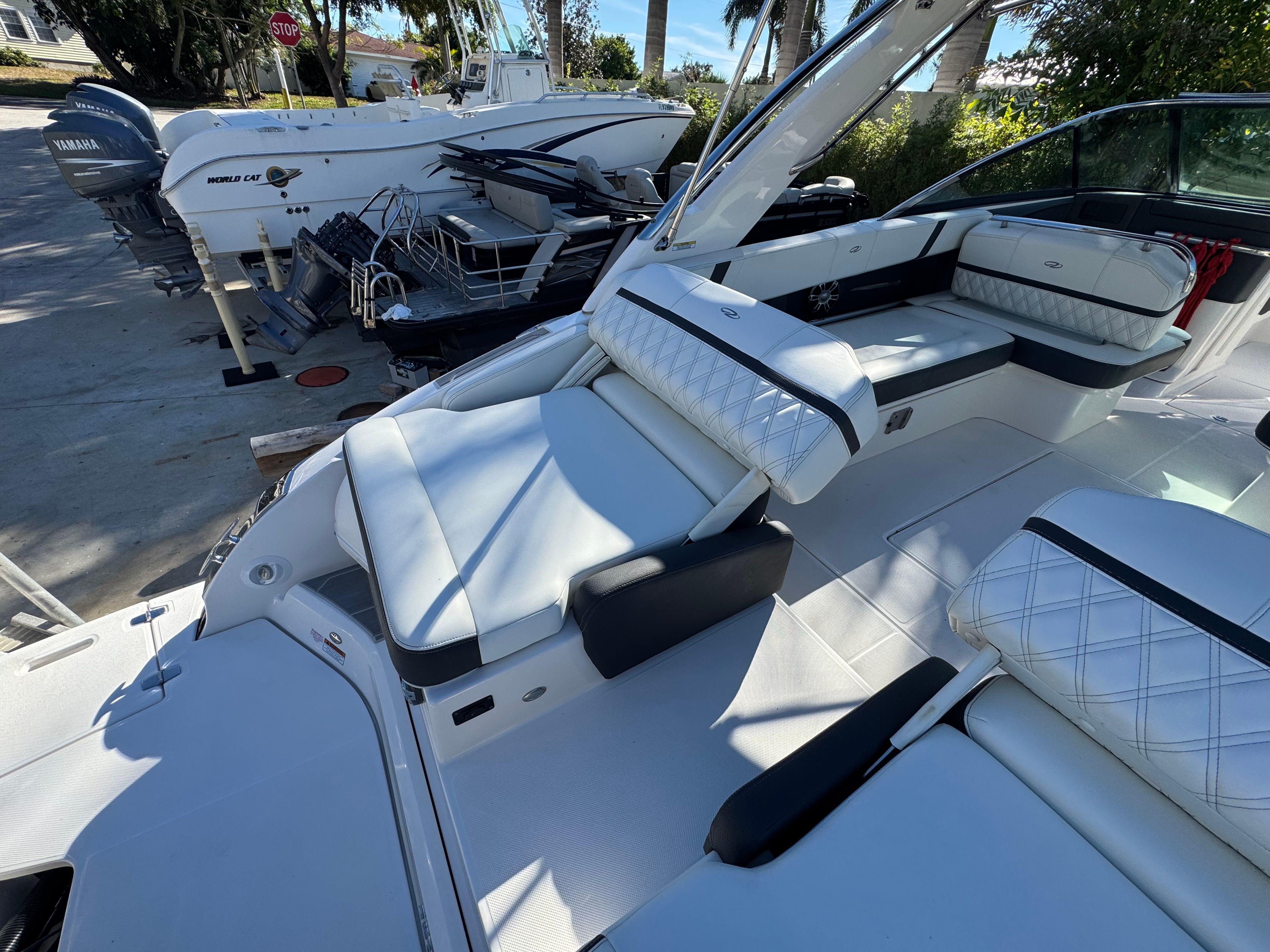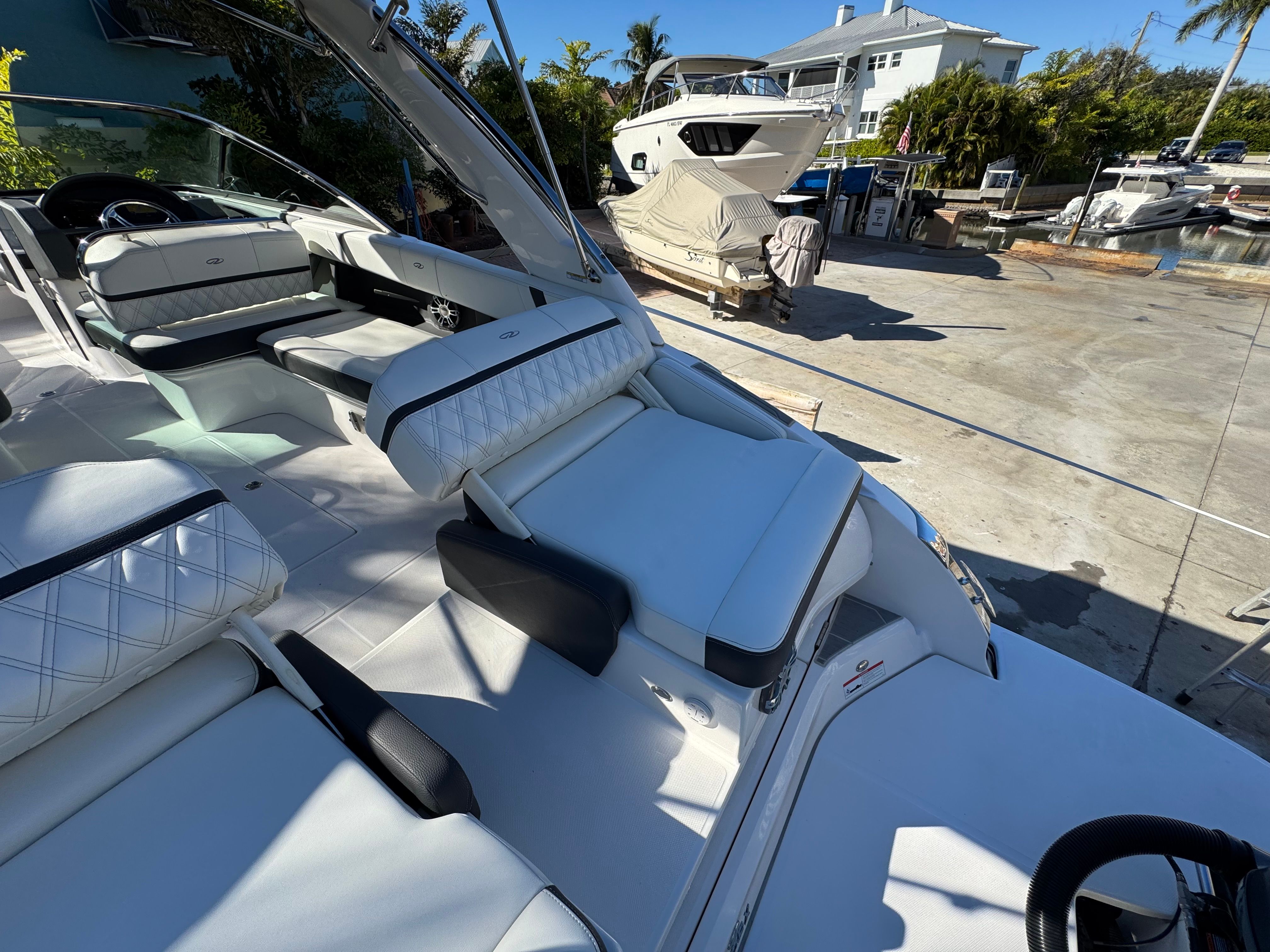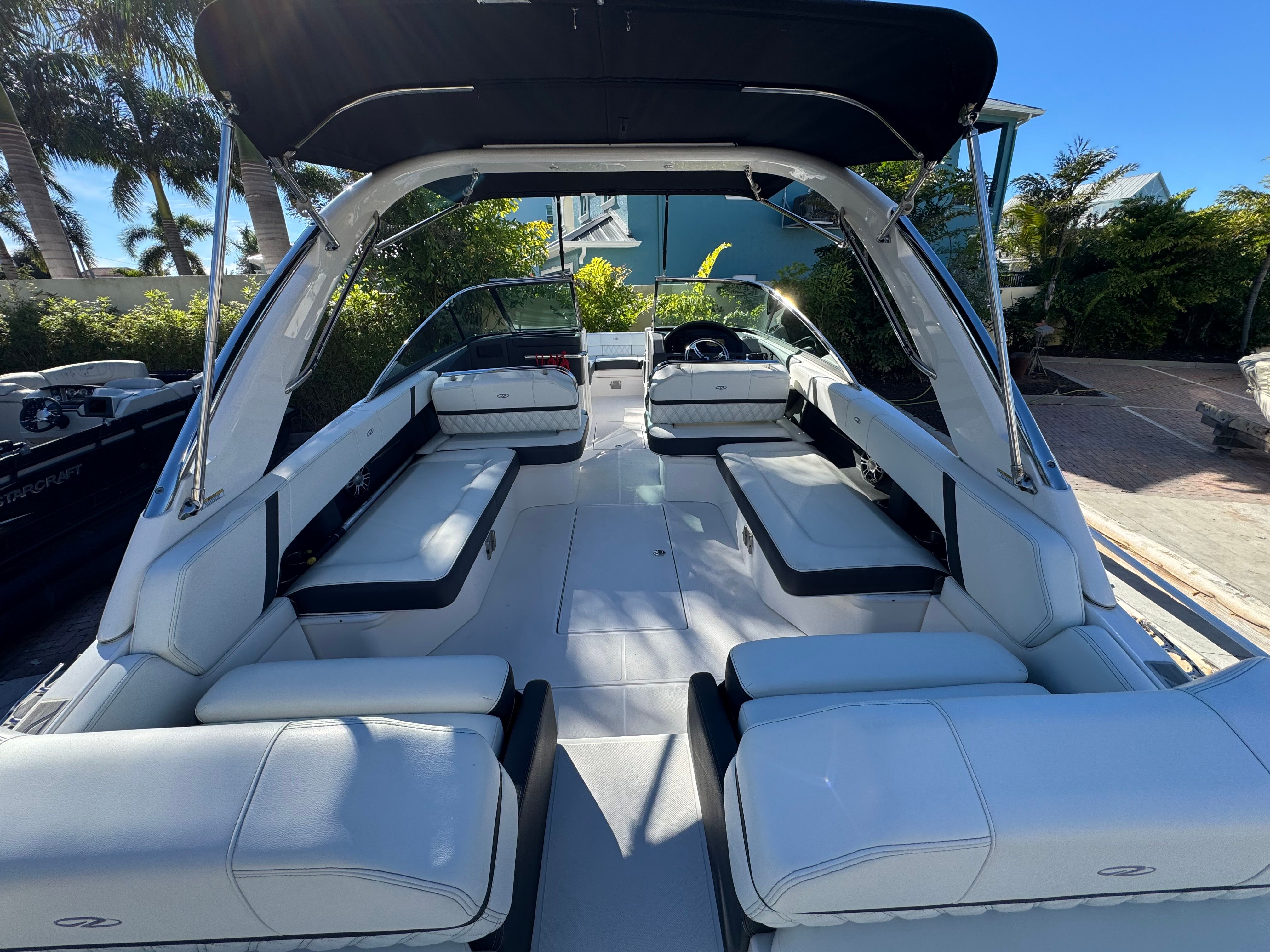 - SLIDEAWAY SEATING - With just a push of a button, slide the dual UltraLounges and center walk-thru to extend your cockpit or swim platform for an extra 10" of space.