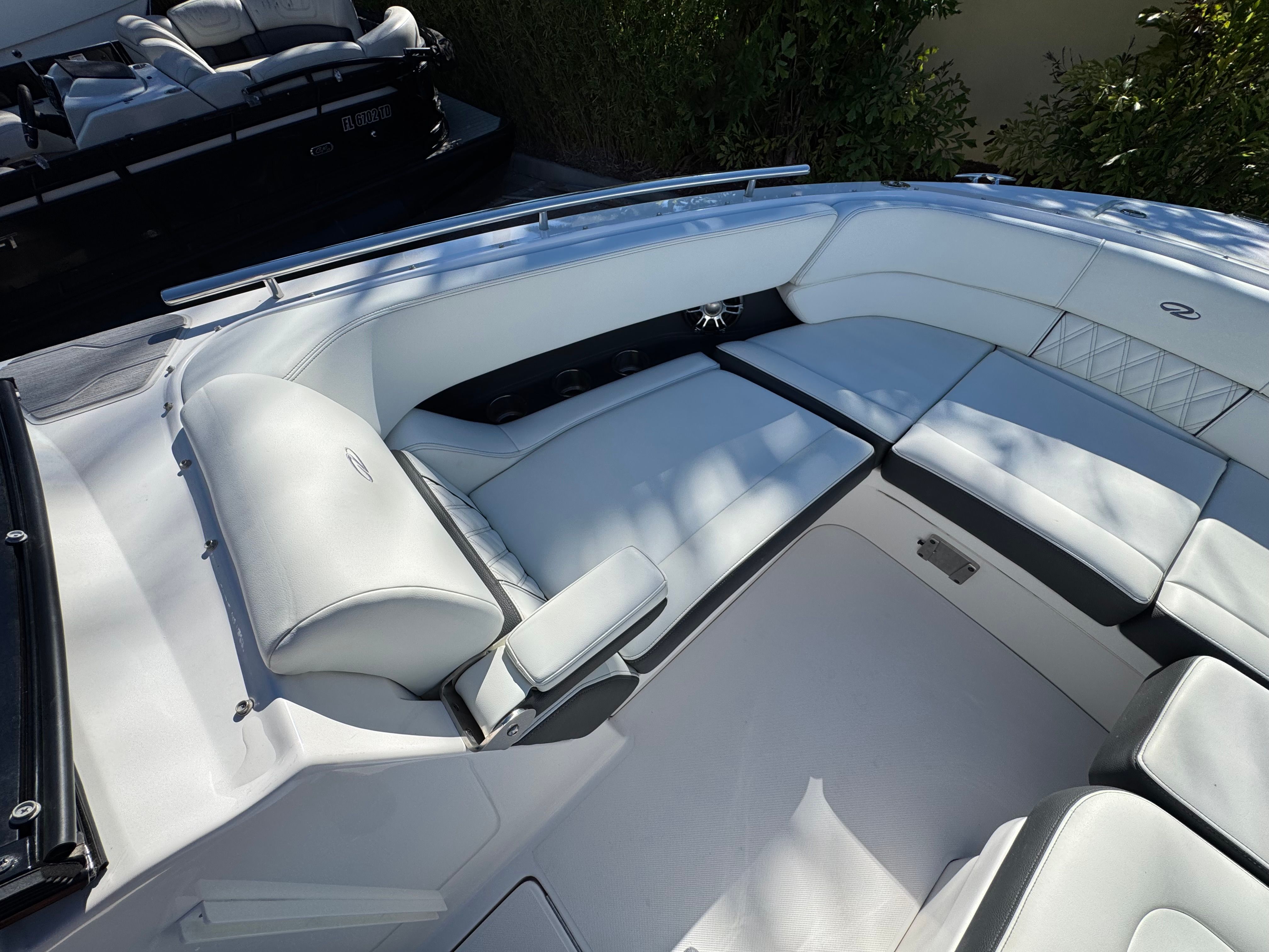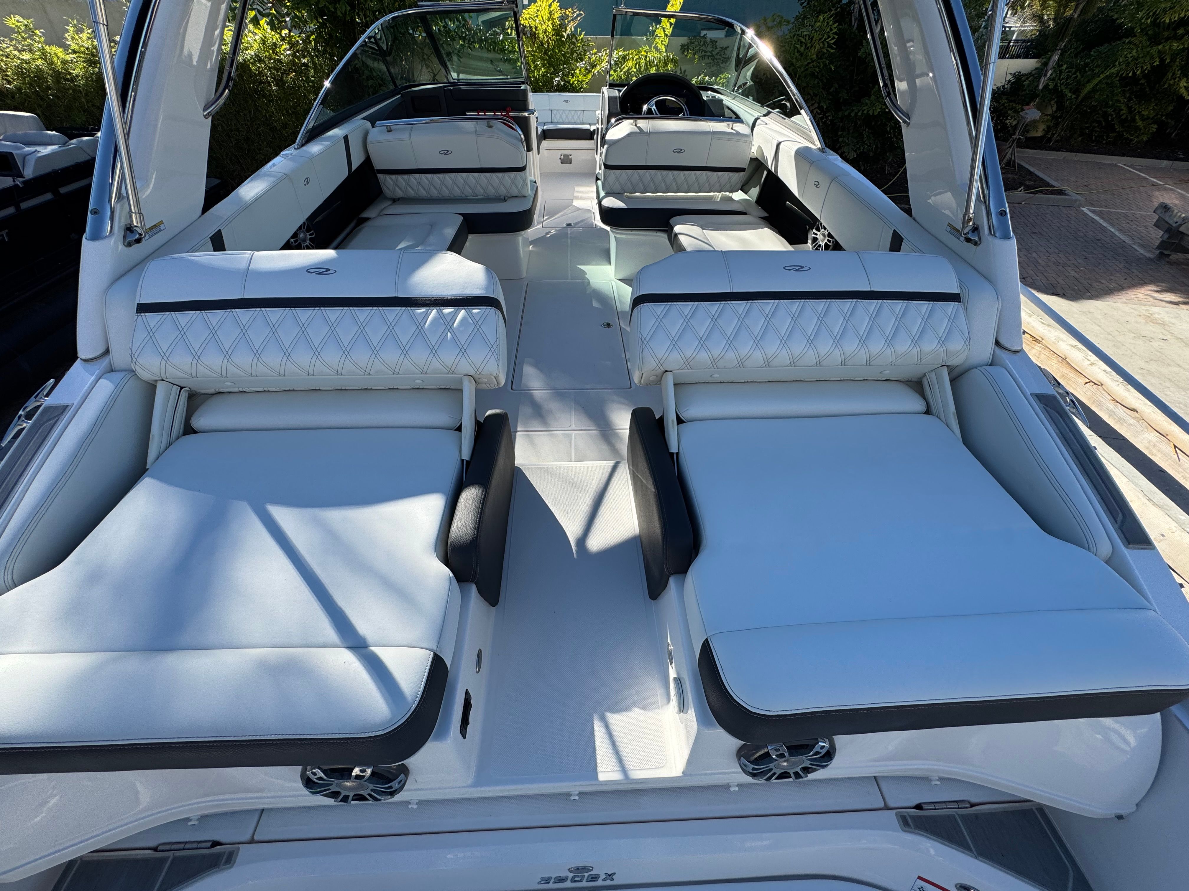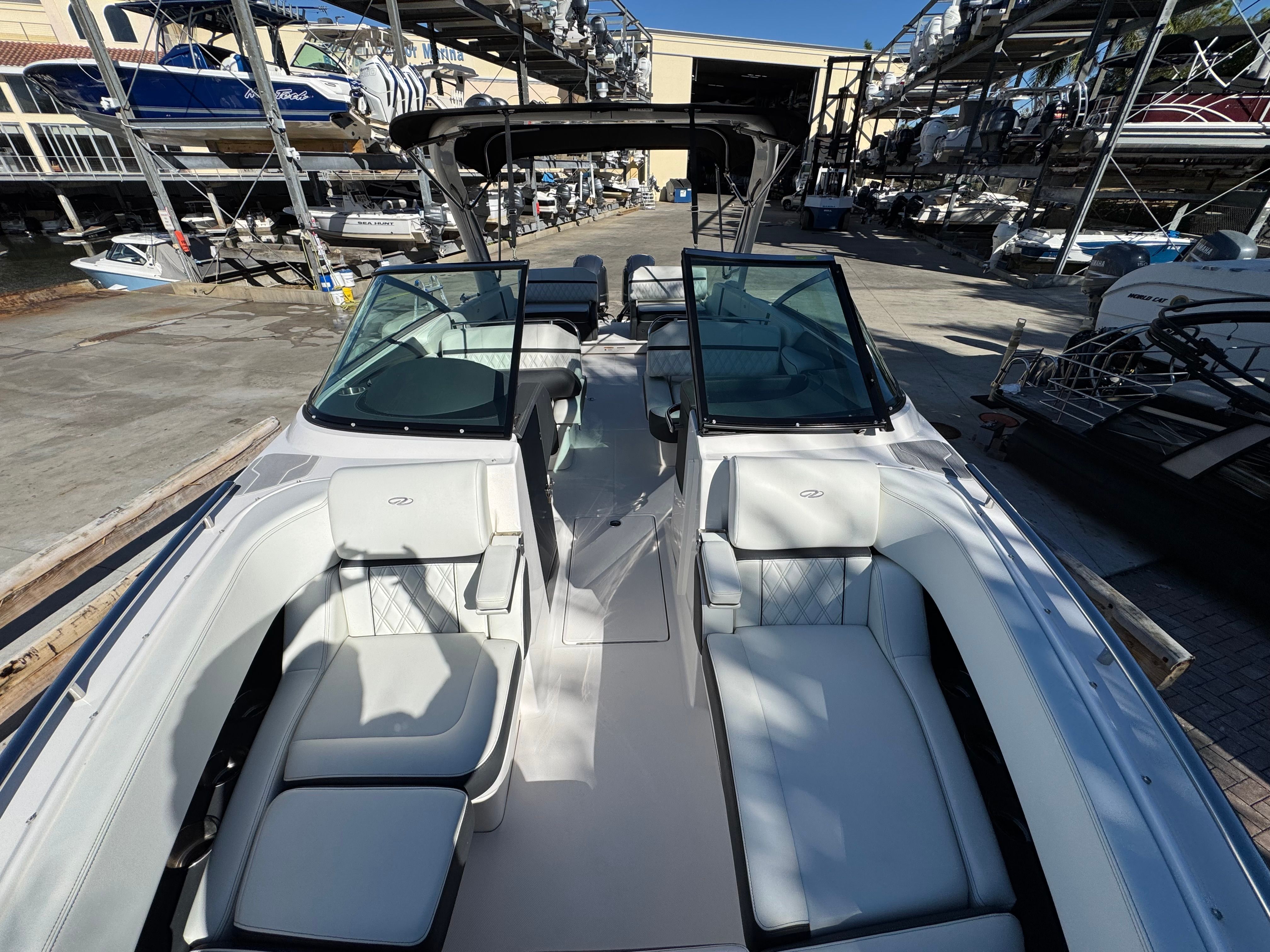- WRAPAROUND SWIM PLATFORM - The low-to-the-water swim platform wraps around the outboards making it easier to enjoy activities on the water.