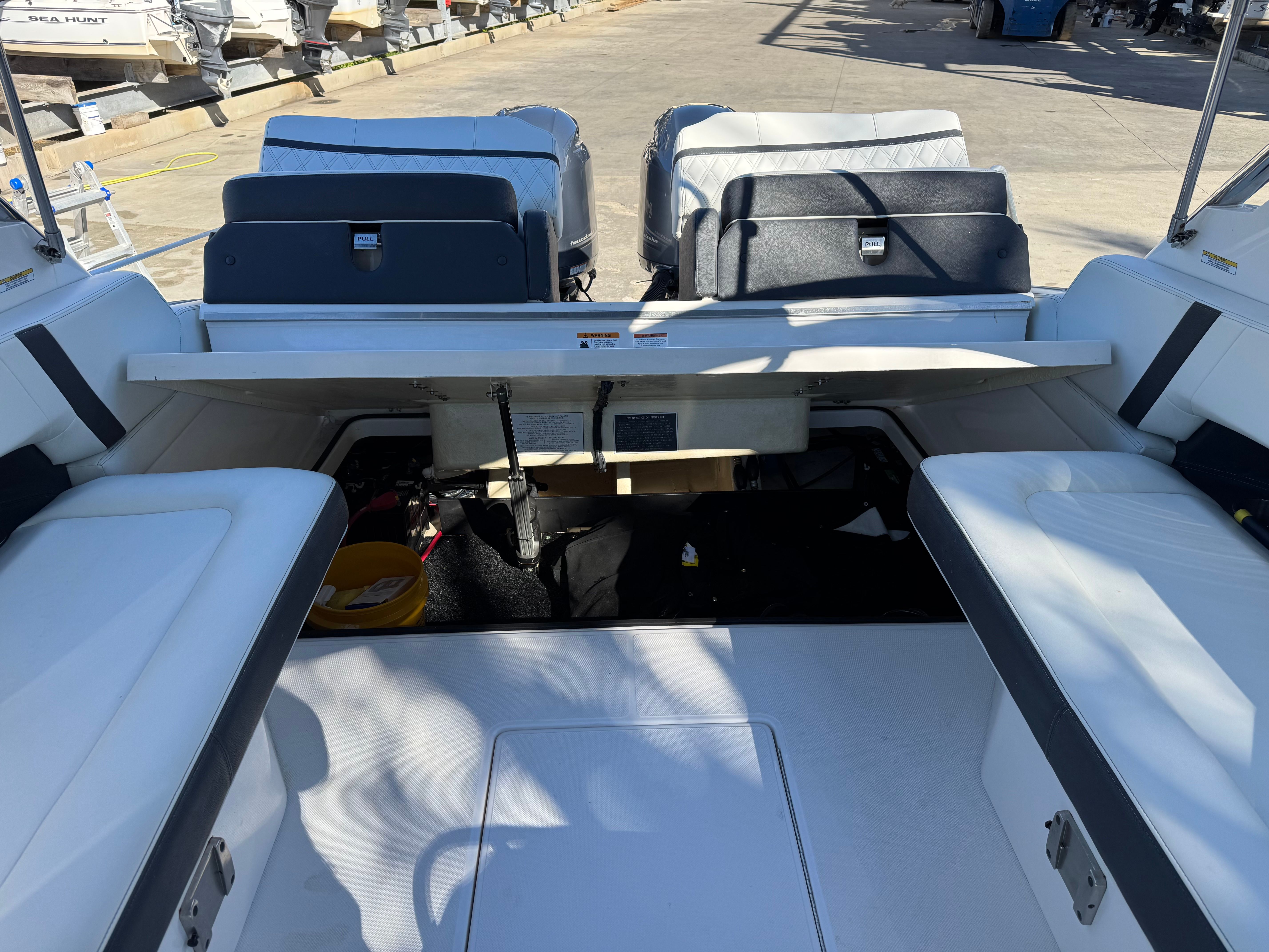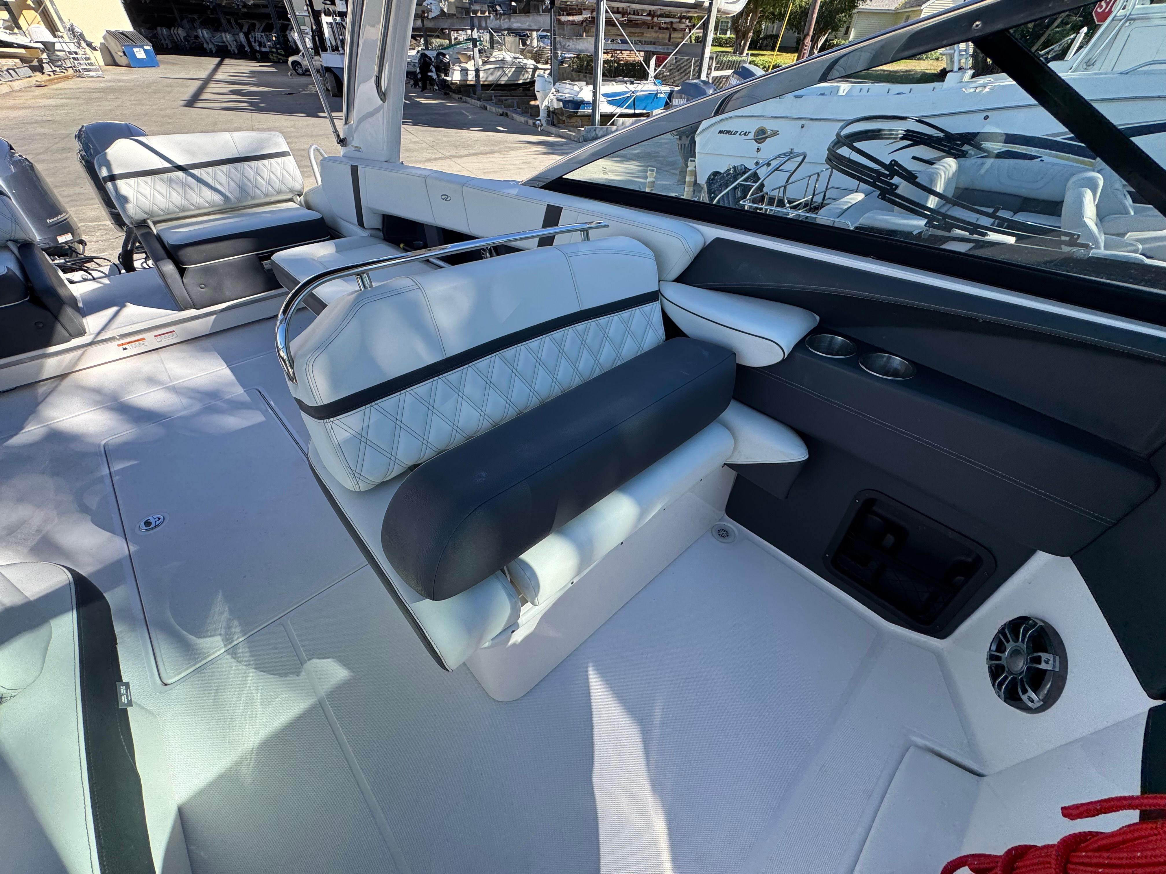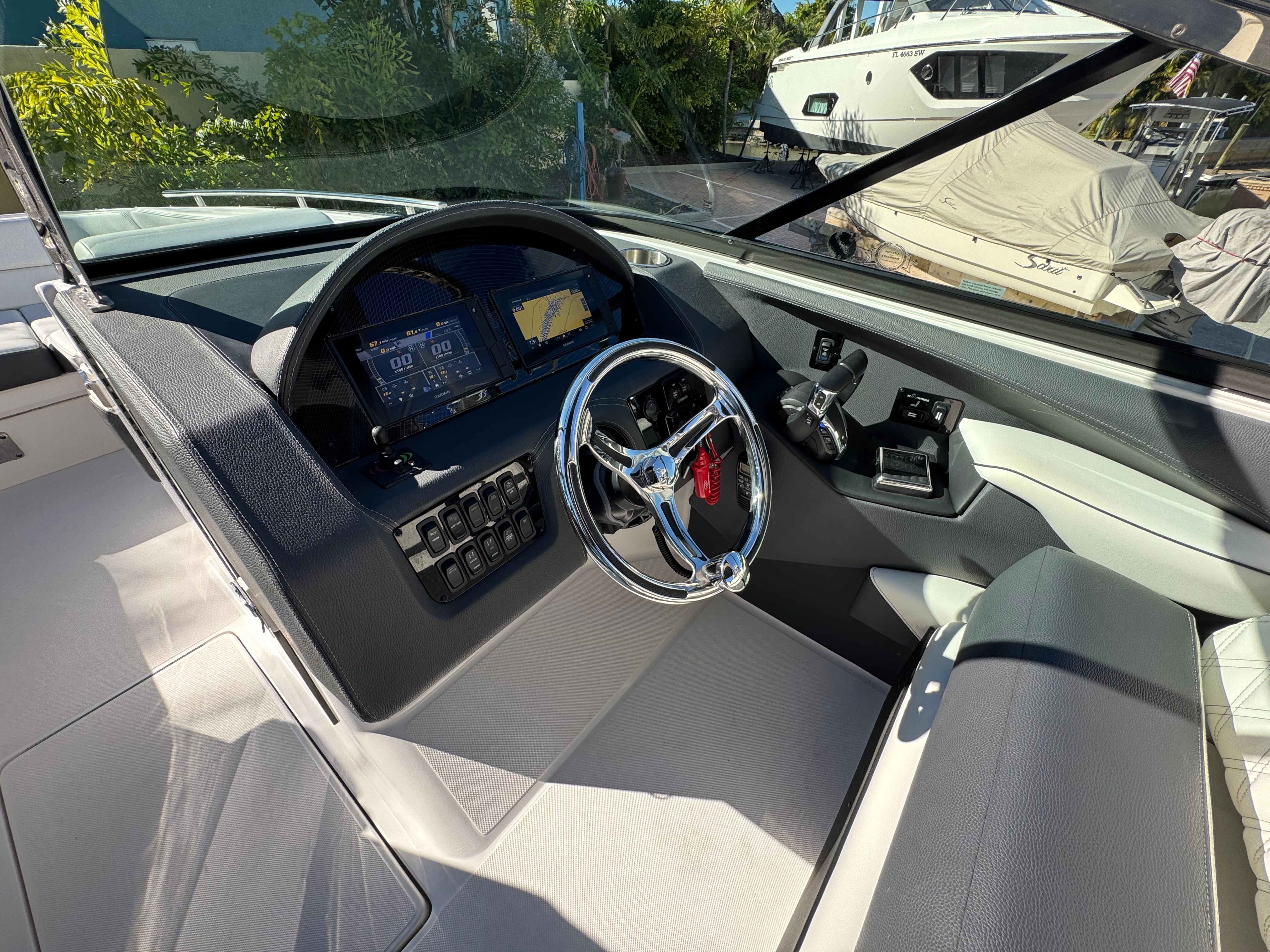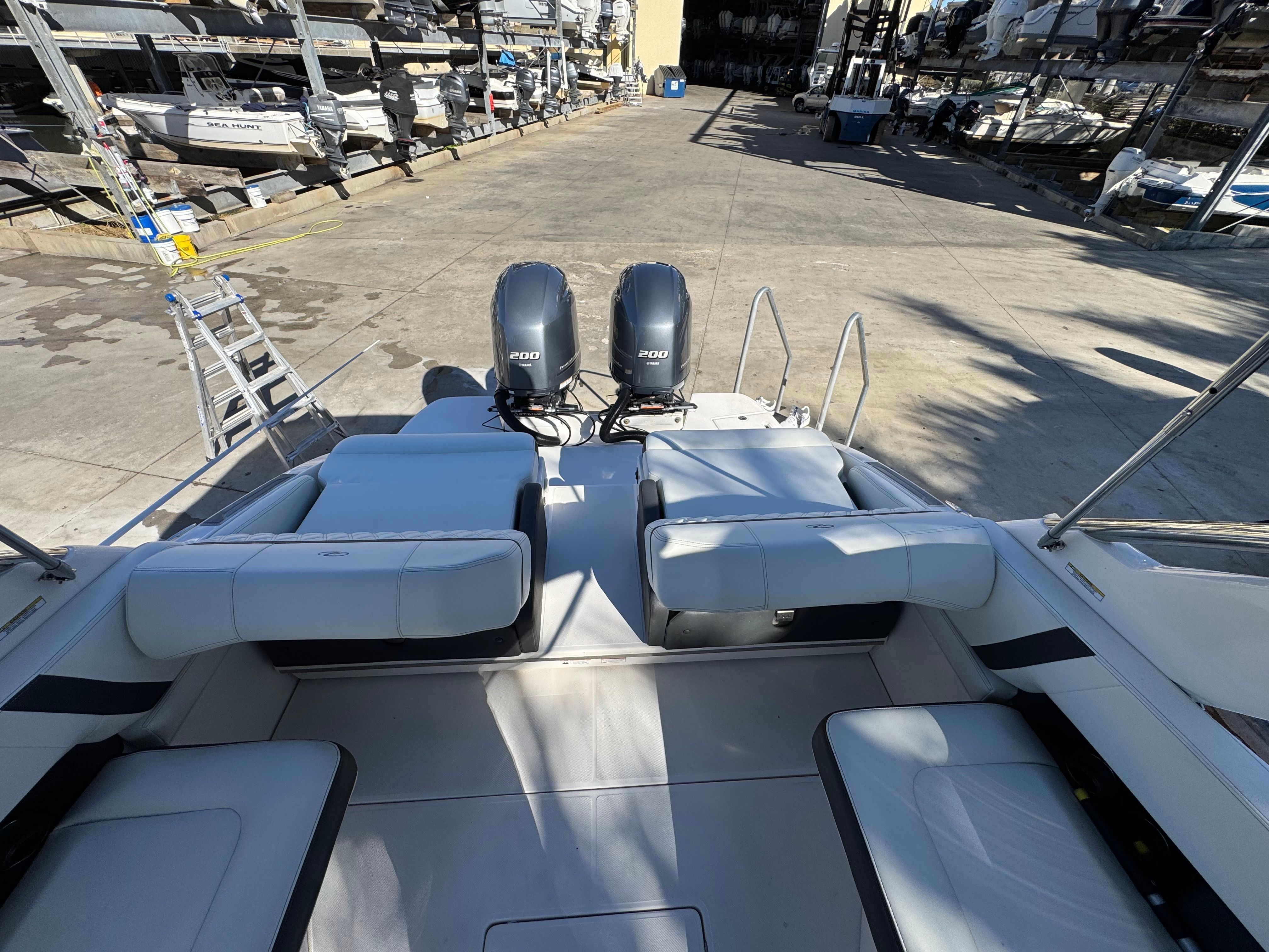 Powered by twin Yamaha outboards, this 29 OBX offers exceptional efficiency, confident handling, and a smooth, quiet ride!!