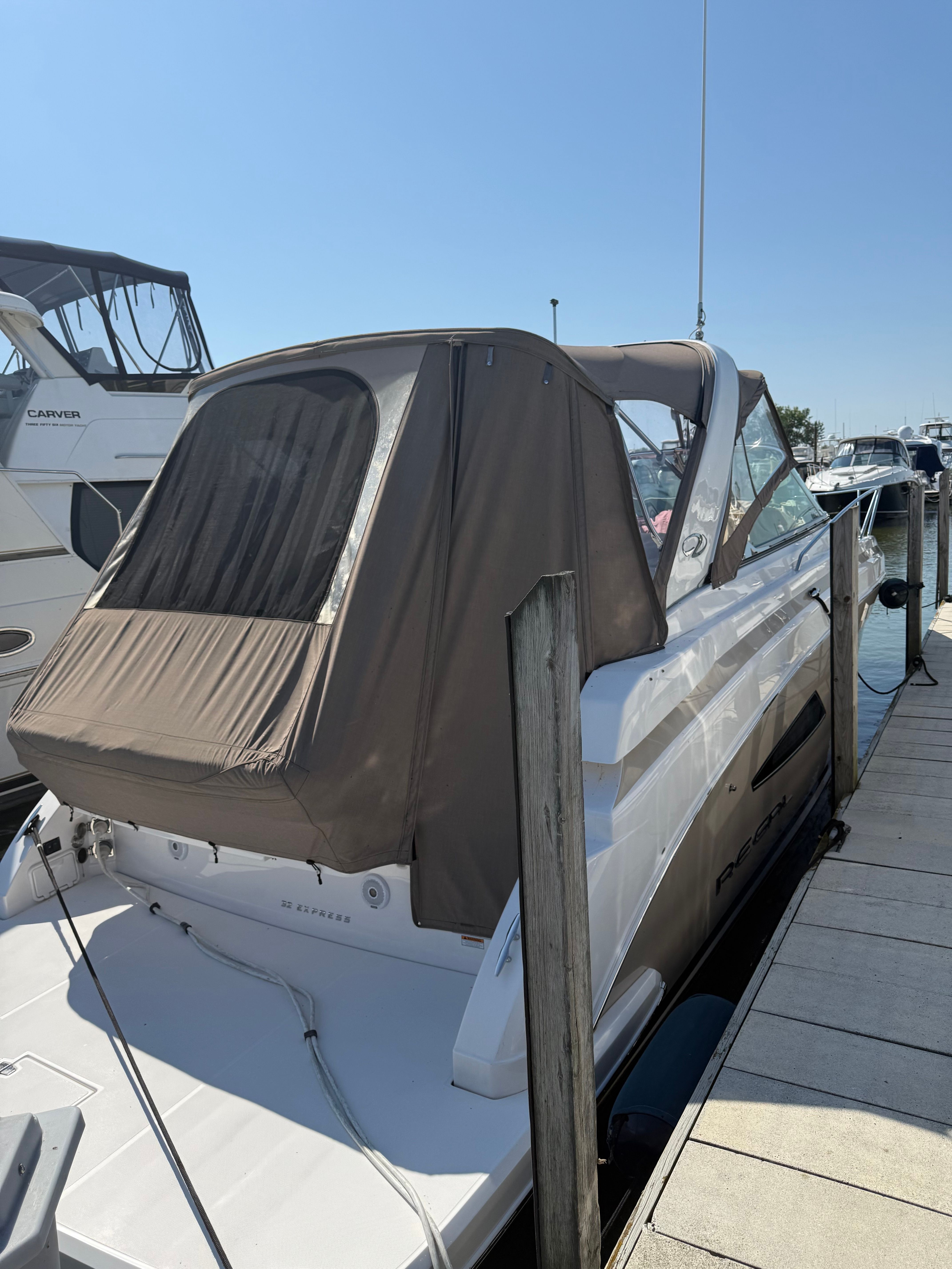 Owning the Regal 32 Express opens up a world of fun and relaxation on the water. The spacious cockpit and inviting cabin make it easy to host family and friends for unforgettable outings. The Sea Grass flooring not only adds a touch of luxury but also ensures easy maintenance, so you can spend more time enjoying the water and less time cleaning up. The wet bar in the cockpit is ideal for mixing drinks and serving snacks, turning every cruise into a celebration.The cabin’s AC/heat system keeps you comfortable in any weather, while the dinette provides a cozy spot for meals, games, or simply unwinding after a day of adventure. The Vaccuflush head offers the convenience and cleanliness you expect from a premium cruiser, making overnight stays and extended trips more enjoyable. With only two previous owners and a recent detailing, this boat is ready to deliver years of memorable experiences.