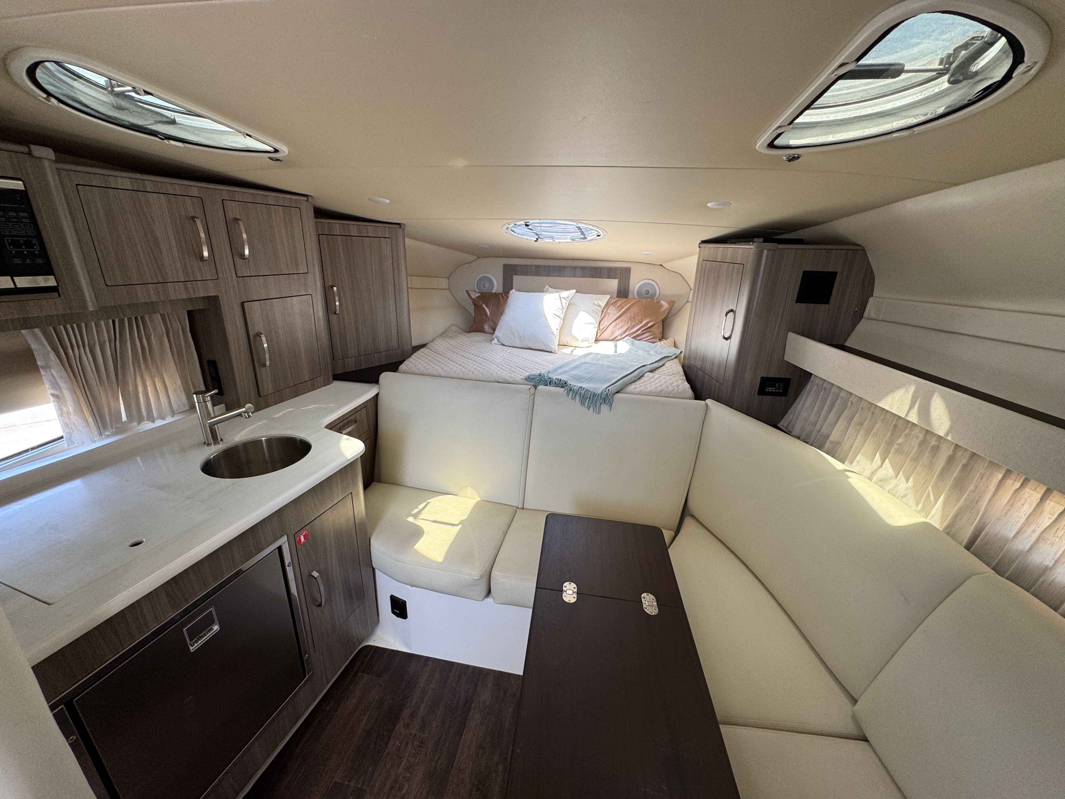 Owning a Regal 33 Express opens the door to a world of fun and relaxation. This Express Cruiser is perfect for hosting friends and family, with its spacious deck and comfortable seating encouraging lively conversations and shared memories. The generous layout makes it easy to transition from sunbathing to dining, while the cabin provides a cozy retreat for overnight stays or escaping the midday sun.The powerful twin engines mean you can explore farther and faster, turning every trip into an adventure. Whether you’re seeking the thrill of high-speed cruising or the tranquility of a sunset anchor, the Regal 33 Express adapts to your desires. Its stylish design and premium finishes ensure you’ll always make a statement on the water, while the practical features make ownership a pleasure.