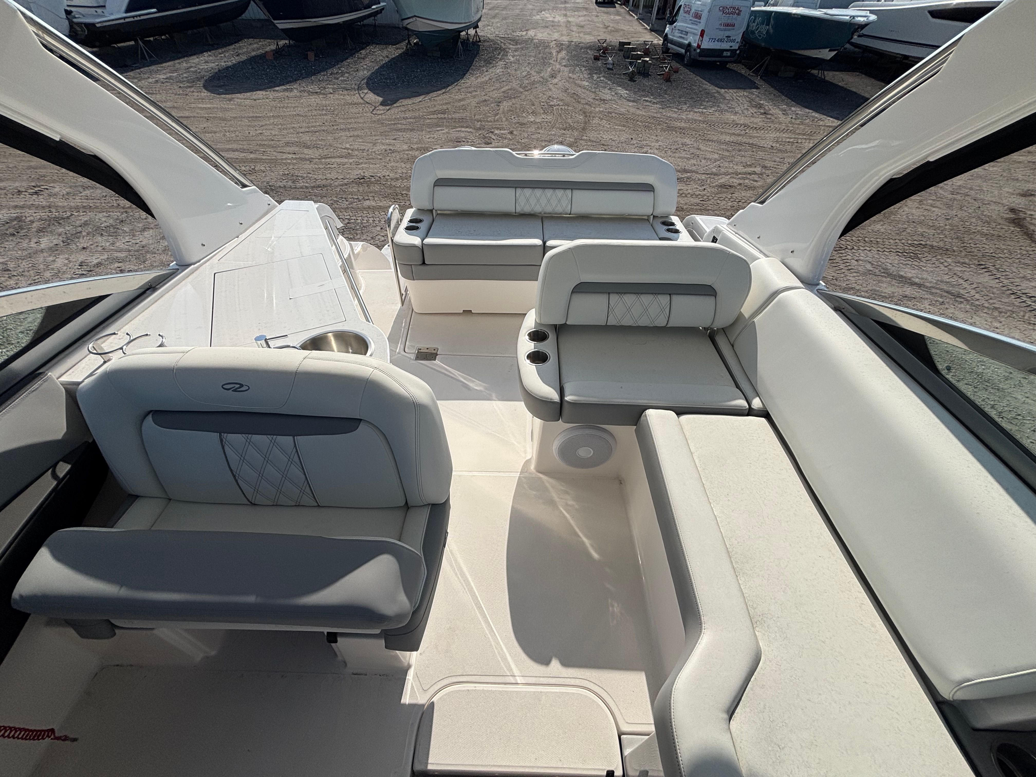 Beyond its luxurious features, the Regal 33 XO is designed with practicality in mind. The integrated steering system simplifies docking and close-quarters maneuvering, reducing stress and making every trip more enjoyable. The cockpit cover protects your investment from the elements, while the durable countertops and flooring are easy to maintain and clean. Storage solutions throughout the boat keep your gear organized and accessible, so you can focus on enjoying your time on the water. The efficient twin Yamaha engines offer a balance of power and fuel economy, allowing you to explore further without frequent stops for refueling.