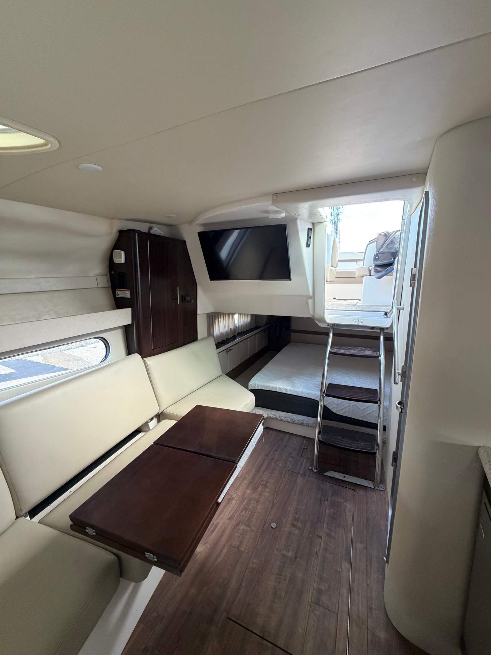 At the helm, you’re surrounded by premium Garmin electronics, including a Garmin 8612 display, Garmin VHF, and Garmin radar, giving you confidence whether you’re cruising familiar waters or heading out on a new adventure. Thoughtful amenities throughout the boat make it ideal for true on-the-water camping, weekend escapes, and long coastal cruises.