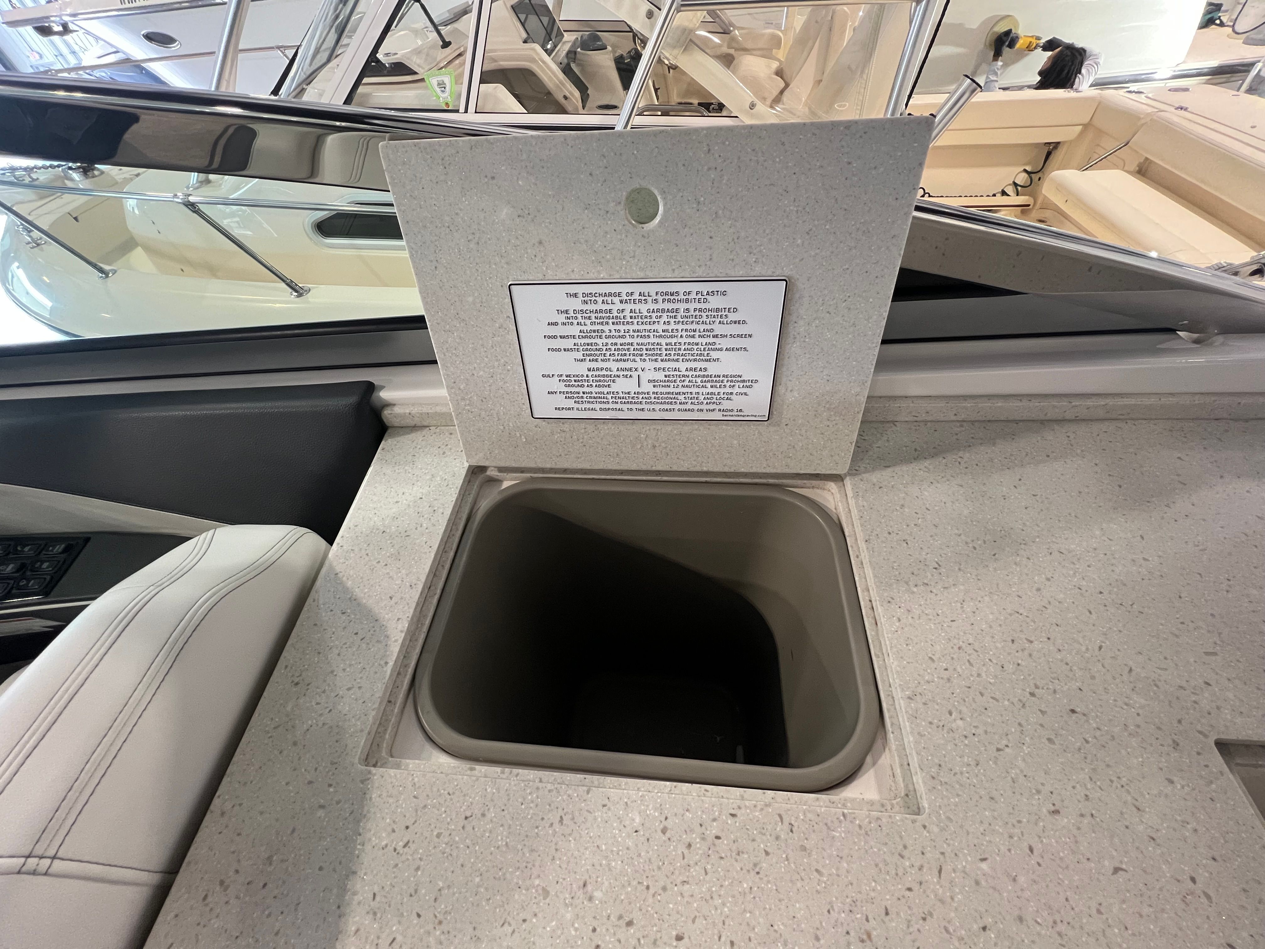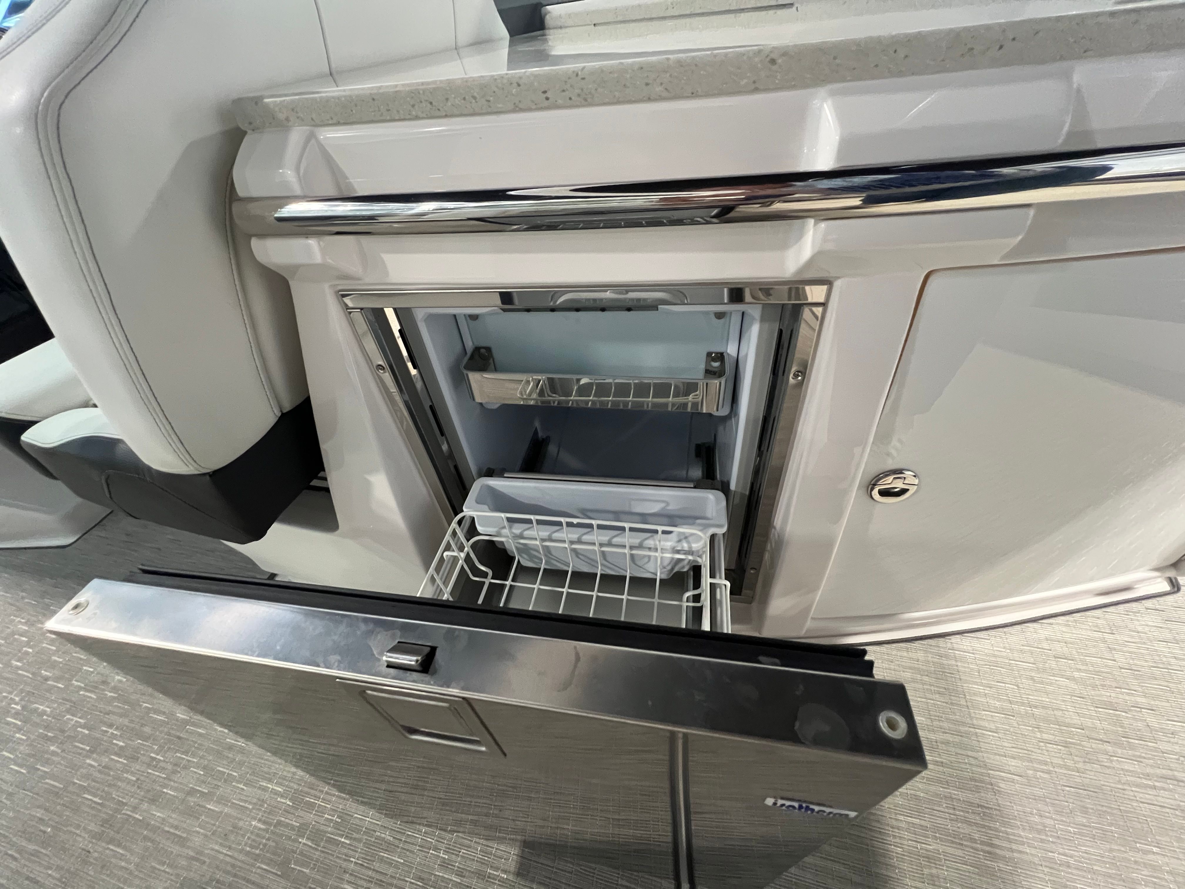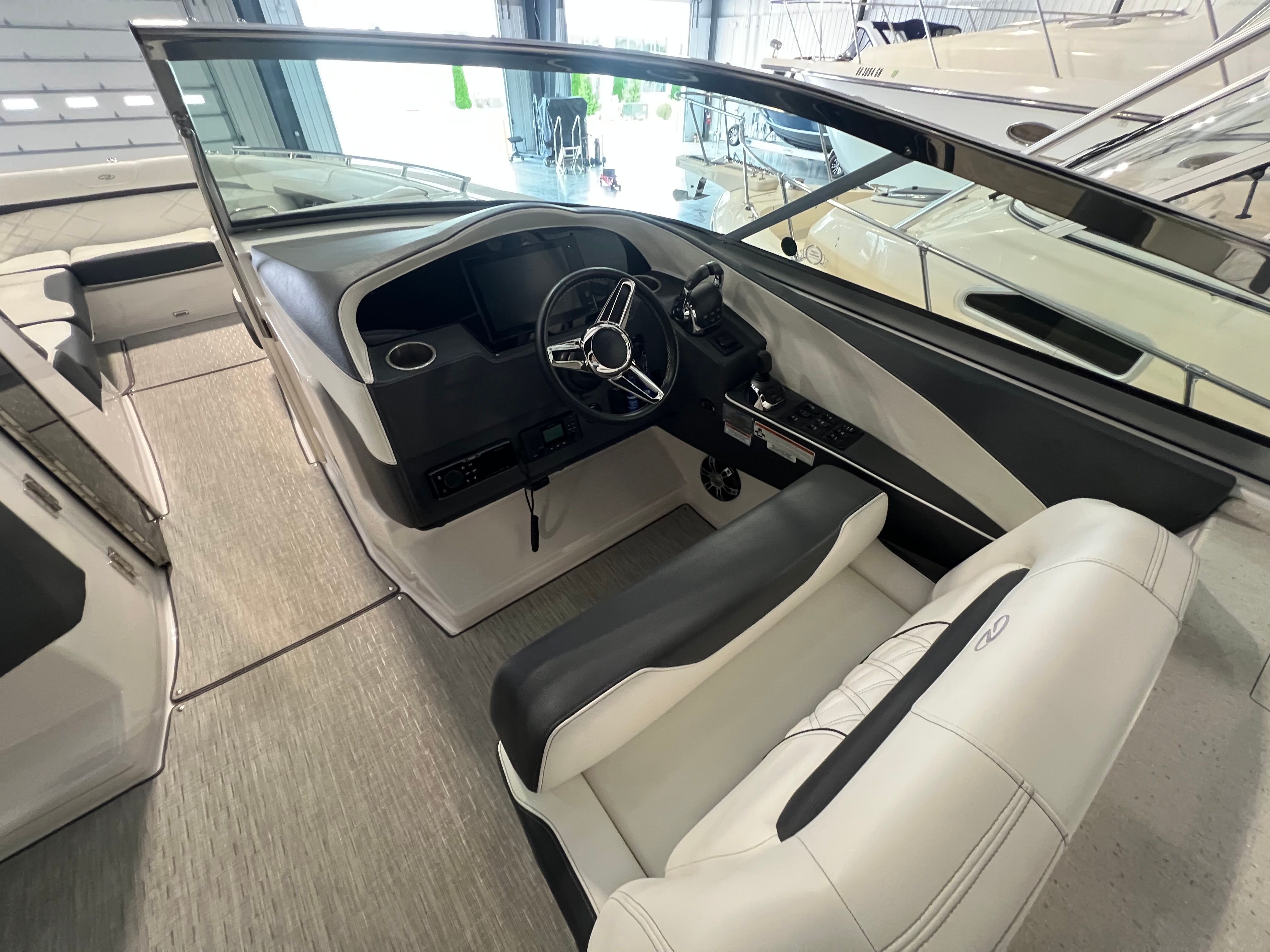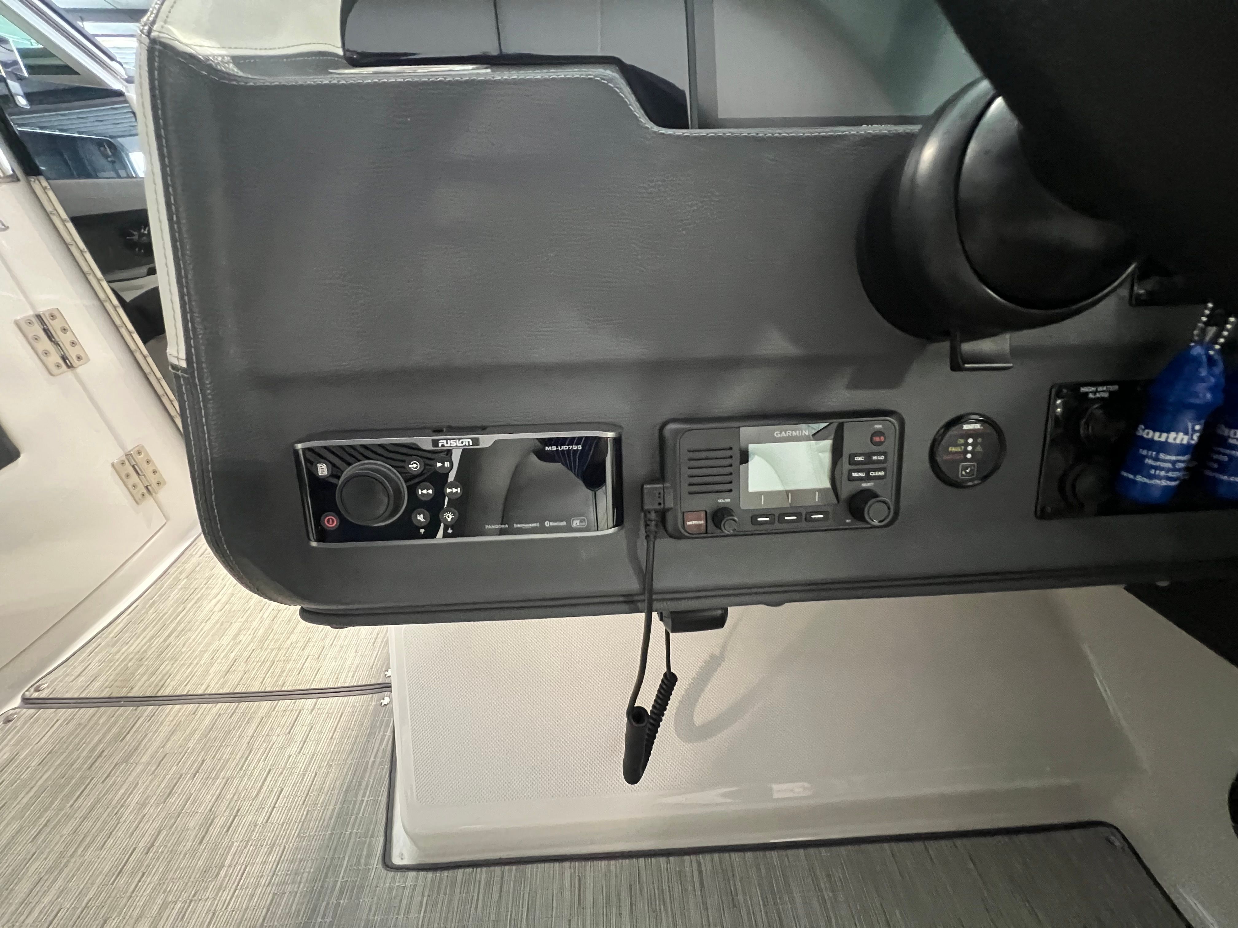 An extended swim platform enhances the boats functionality, providing ample space for water activities and easy access for swimming or boarding watercraft. The freshwater-only system ensures that the boat's plumbing remains in optimal condition, perfect for leisurely cruising and day trips. Additionally, the Garmin VHF radio ensures reliable communication, enhancing safety and connectivity while you're out on the water.