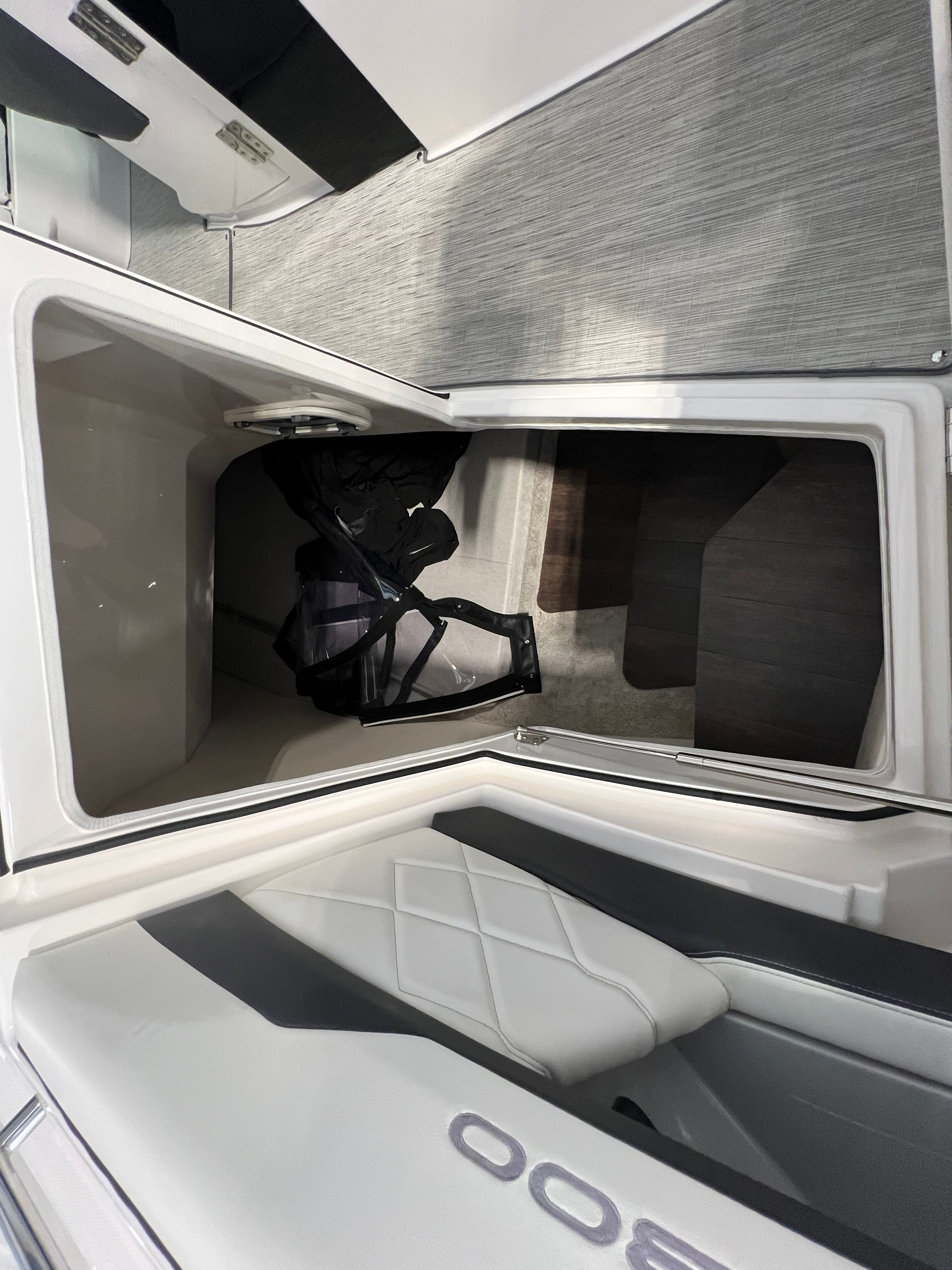 The extended swim platform is not only perfect for water activities but also facilitates easy docking and maneuvering, simplifying your boating experience. The electric engine hatch enhances accessibility, making engine checks and maintenance straightforward and convenient. With its reliable battery charger, you can ensure your boats electrical systems are always ready for your next adventure.