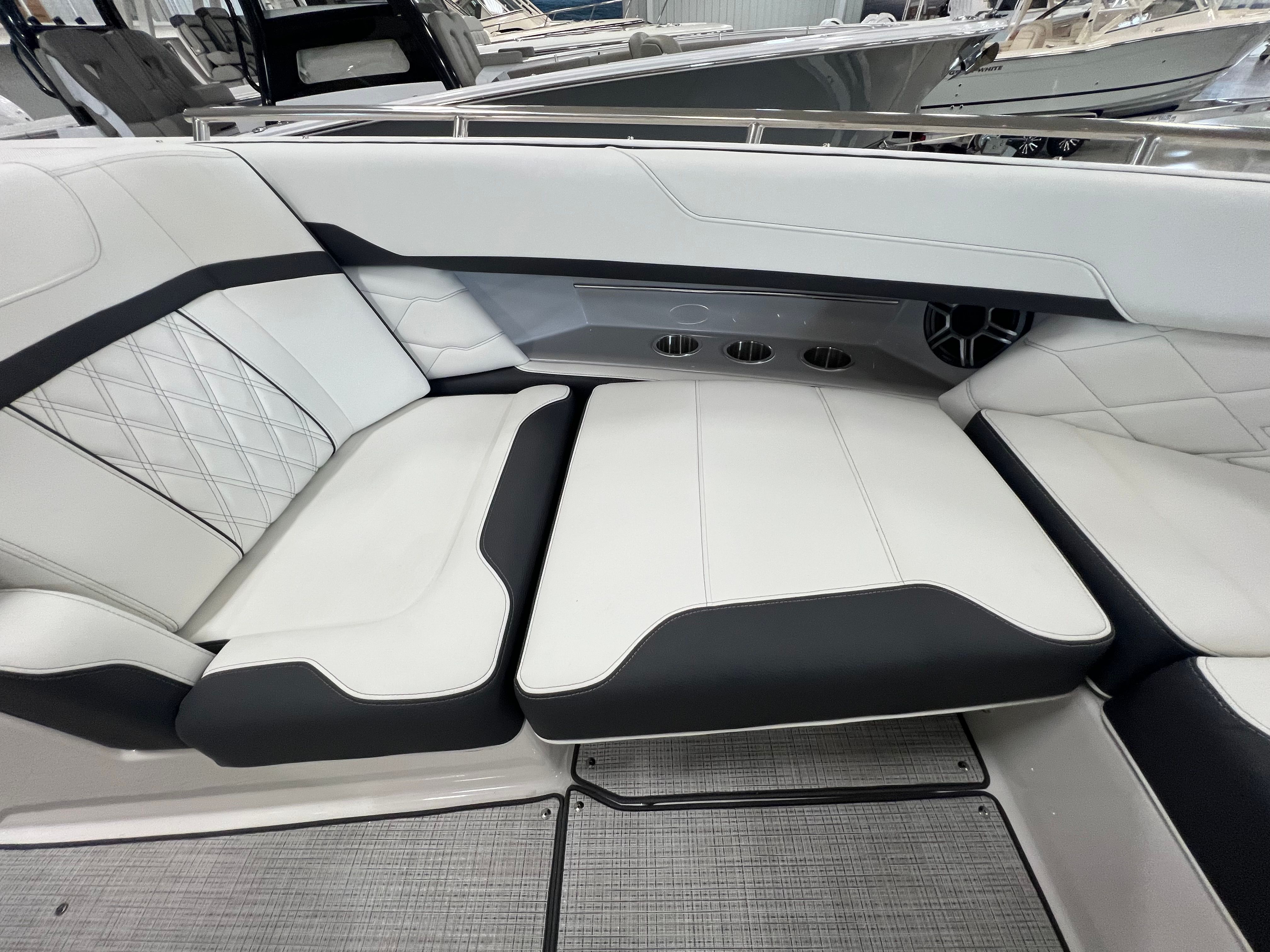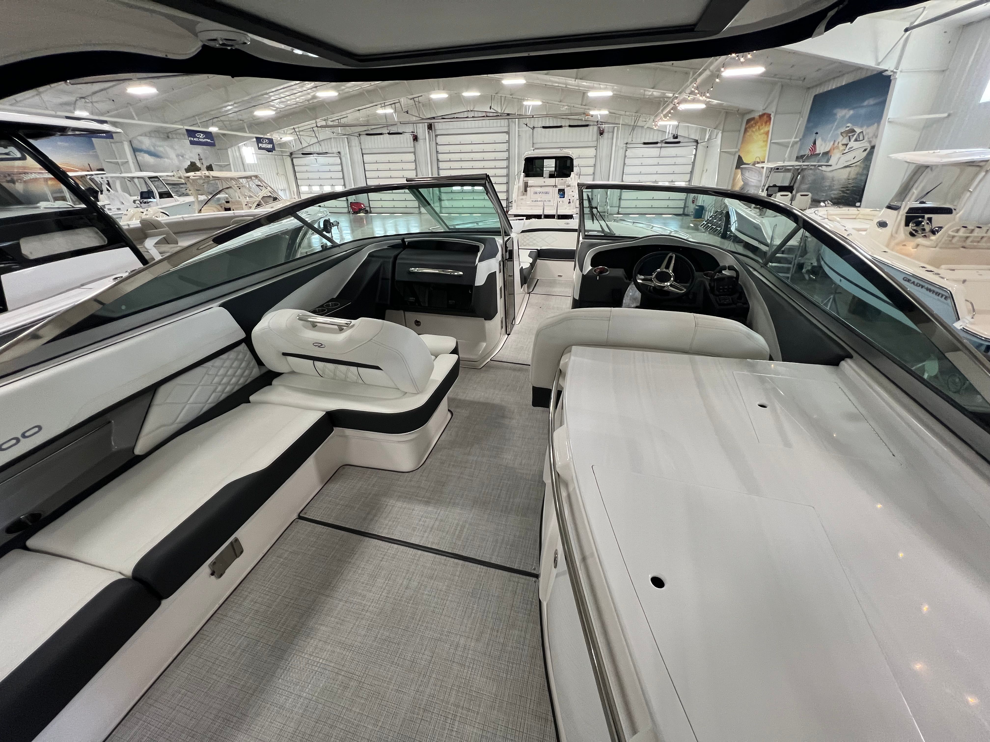 Under the hood, the Regal 3300 bow-rider is powered by two formidable engines, delivering a combined 700 horsepower. This impressive horsepower ensures exhilarating speed and smooth maneuverability, allowing you to navigate through waters with ease and precision. Whether you're cruising along serene coastlines or darting across open waters, the Regal 3300s powerful engines provide the performance needed to turn every trip into an unforgettable experience. The responsive handling and robust power train make this bow-rider boat for sale a top contender for those who demand both speed and reliability on the water.