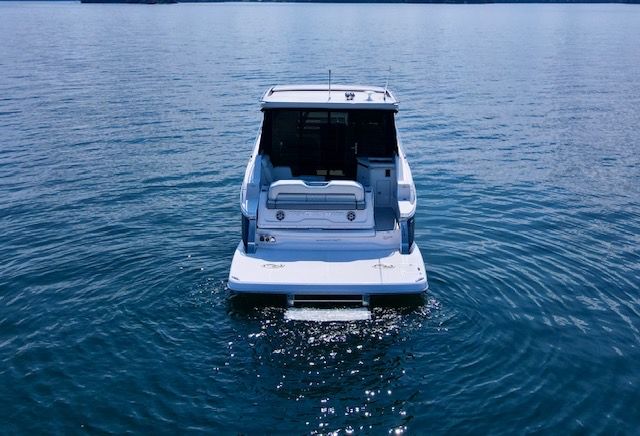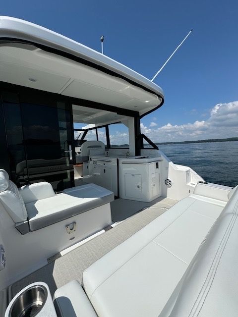 The 36 Grande Coupe combines luxury, innovation, and versatility, perfect for weekend getaways or day trips with family and friends. The open bow features Multi-Position seating, while the open-air salon highlights a refreshment center. The aft cockpit offers convertible face-to-face seating, adaptable for multiple uses.
