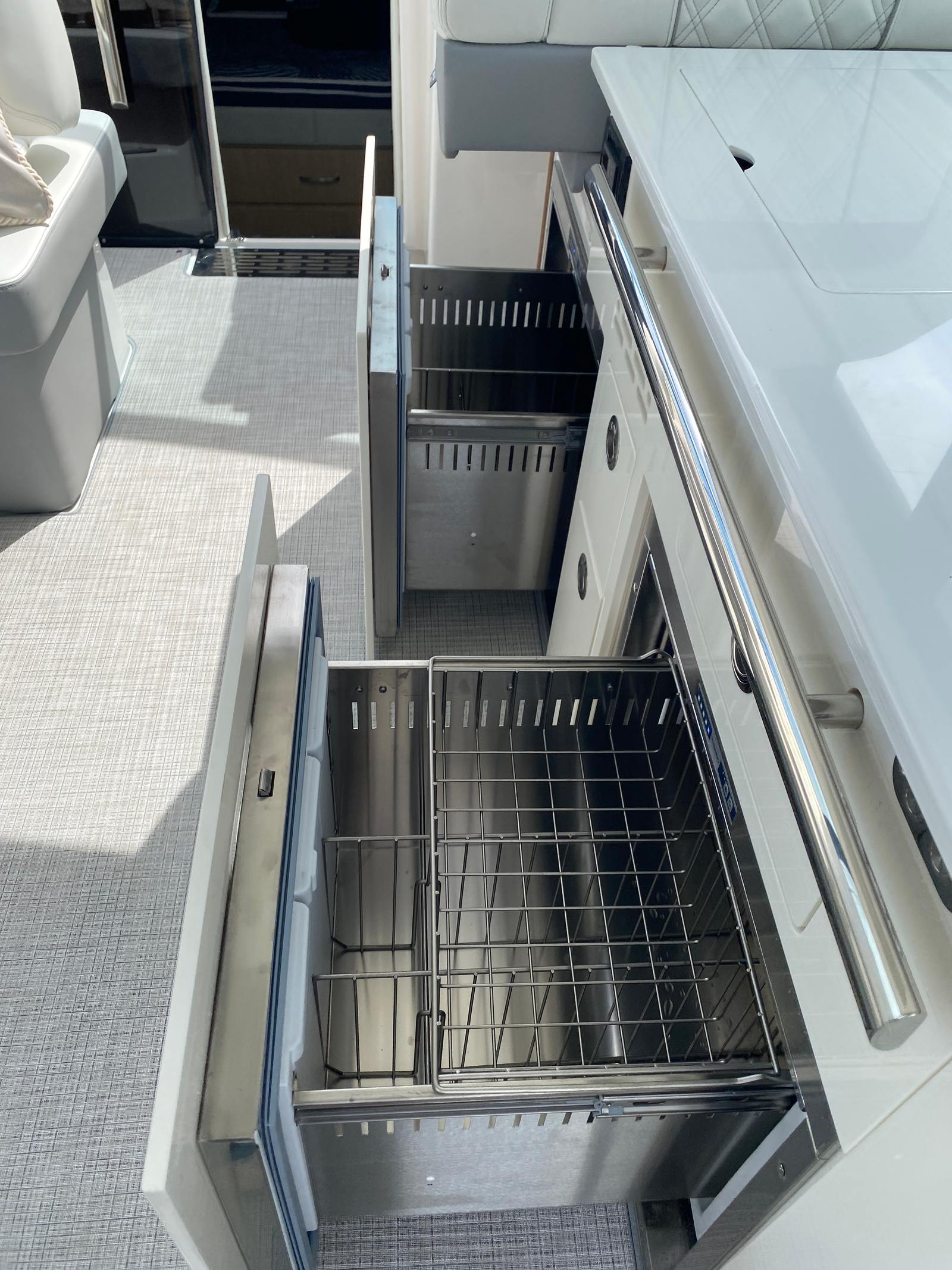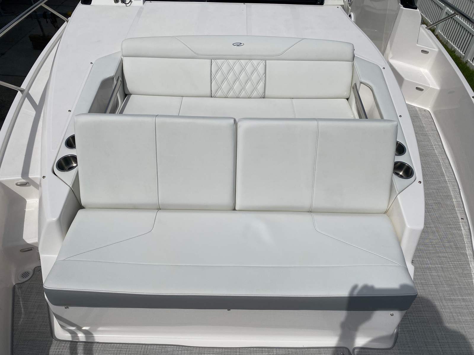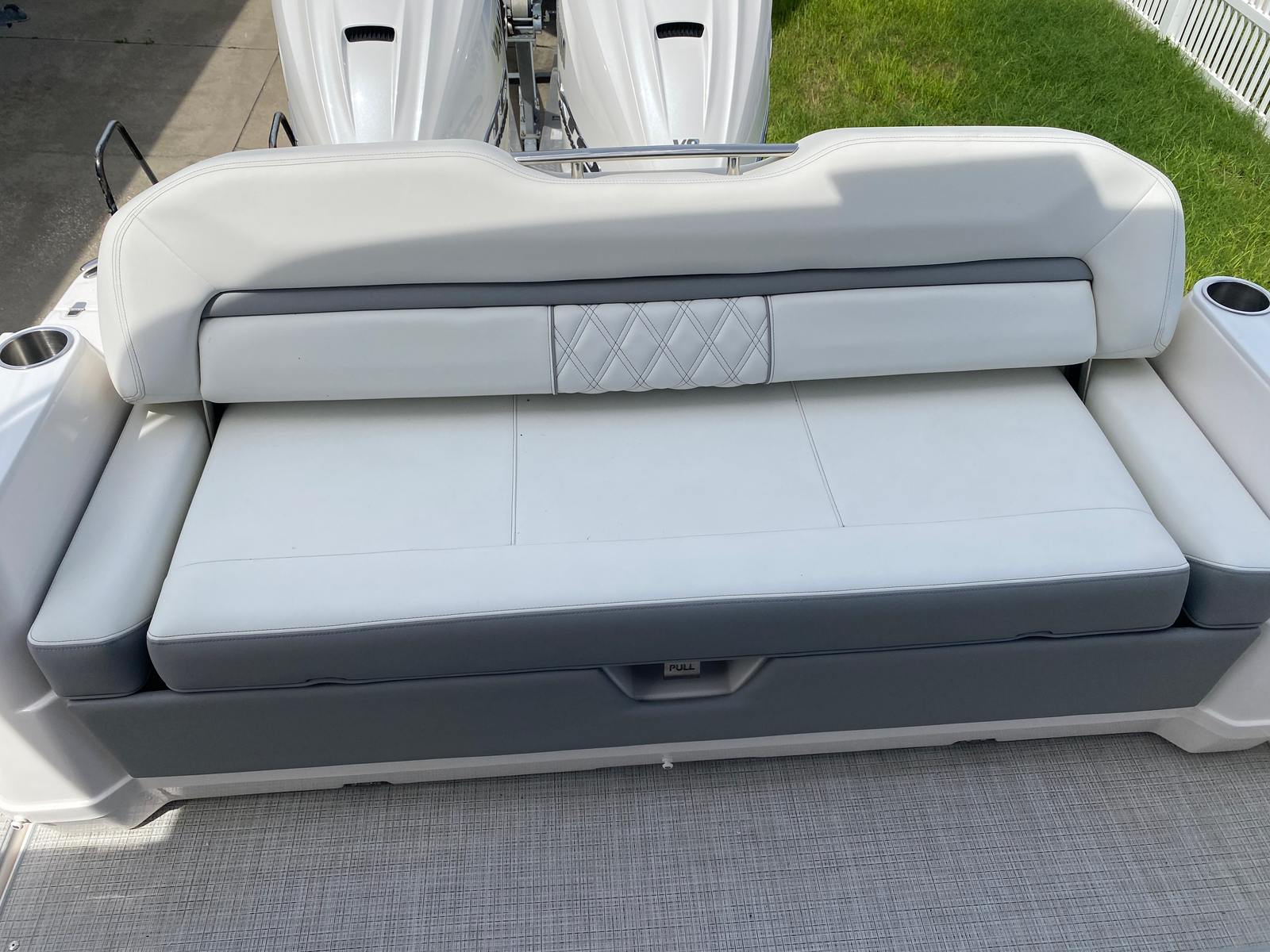 Practicality meets luxury in the Regal 36 XO. The yacht’s thoughtful design includes ample storage for gear, supplies, and personal items, making it easy to keep your space organized and clutter-free. Docking is a breeze thanks to the responsive twin engines, allowing you to navigate marinas and harbors with confidence. The yacht’s efficient performance also means you can enjoy longer trips without worrying about excessive fuel consumption.The cockpit seagrass mat provides a non-slip surface, enhancing safety while adding a touch of sophistication. The Strato Wind countertops are both durable and stylish, making them perfect for preparing meals or serving drinks during gatherings. Every detail of the Regal 36 XO is designed to make ownership easy and enjoyable, so you can focus on making memories with your loved ones.