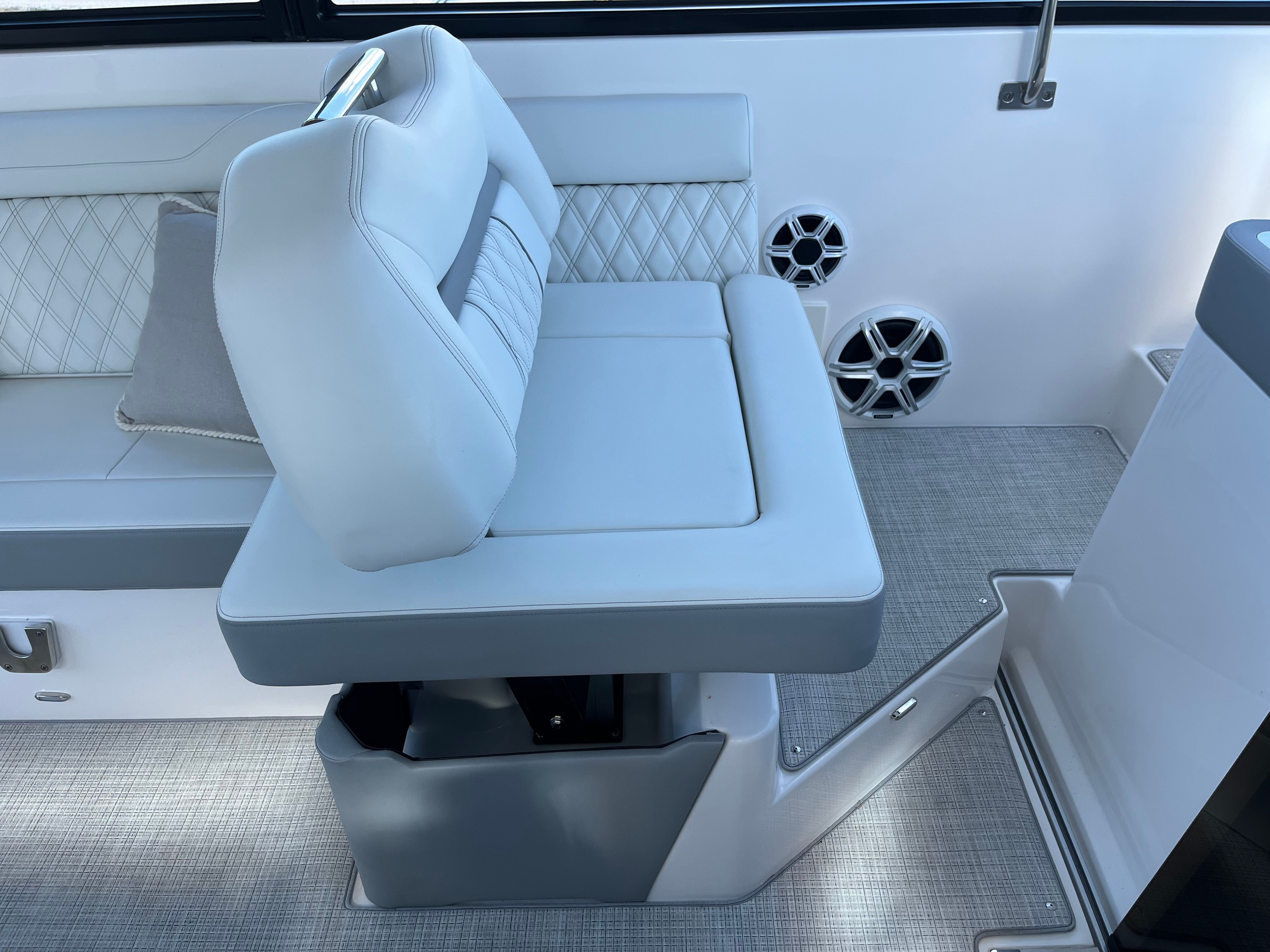 The Regal 36 XO is as practical as it is luxurious. Its generous length provides ample storage for gear, water toys, and provisions, making it ideal for extended outings or spontaneous getaways. Docking is made easier by the yacht’s agile handling and responsive controls, allowing you to navigate marinas and tight spaces with confidence. The efficient twin Yamaha engines offer excellent fuel economy for a vessel of this size, helping you maximize your time on the water without frequent refueling stops. The Palm Beach Enclosure and other protective features ensure comfort in a variety of weather conditions, so you can enjoy your yacht year-round.