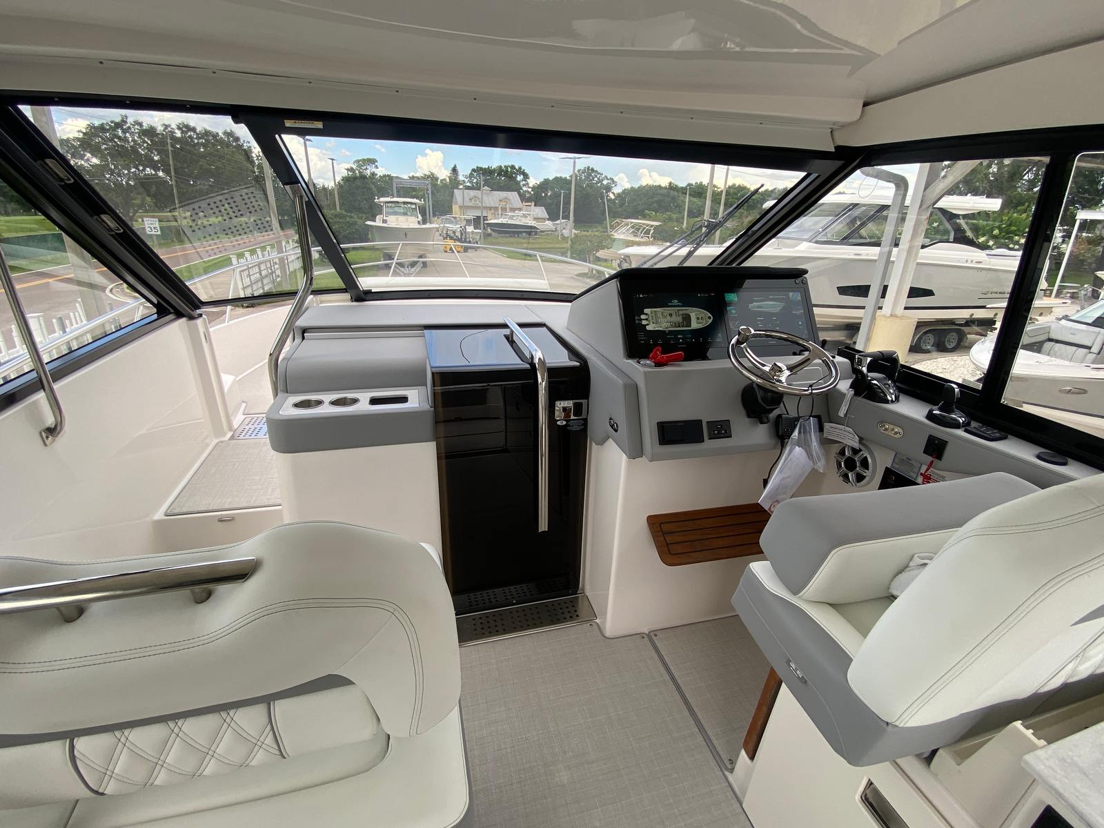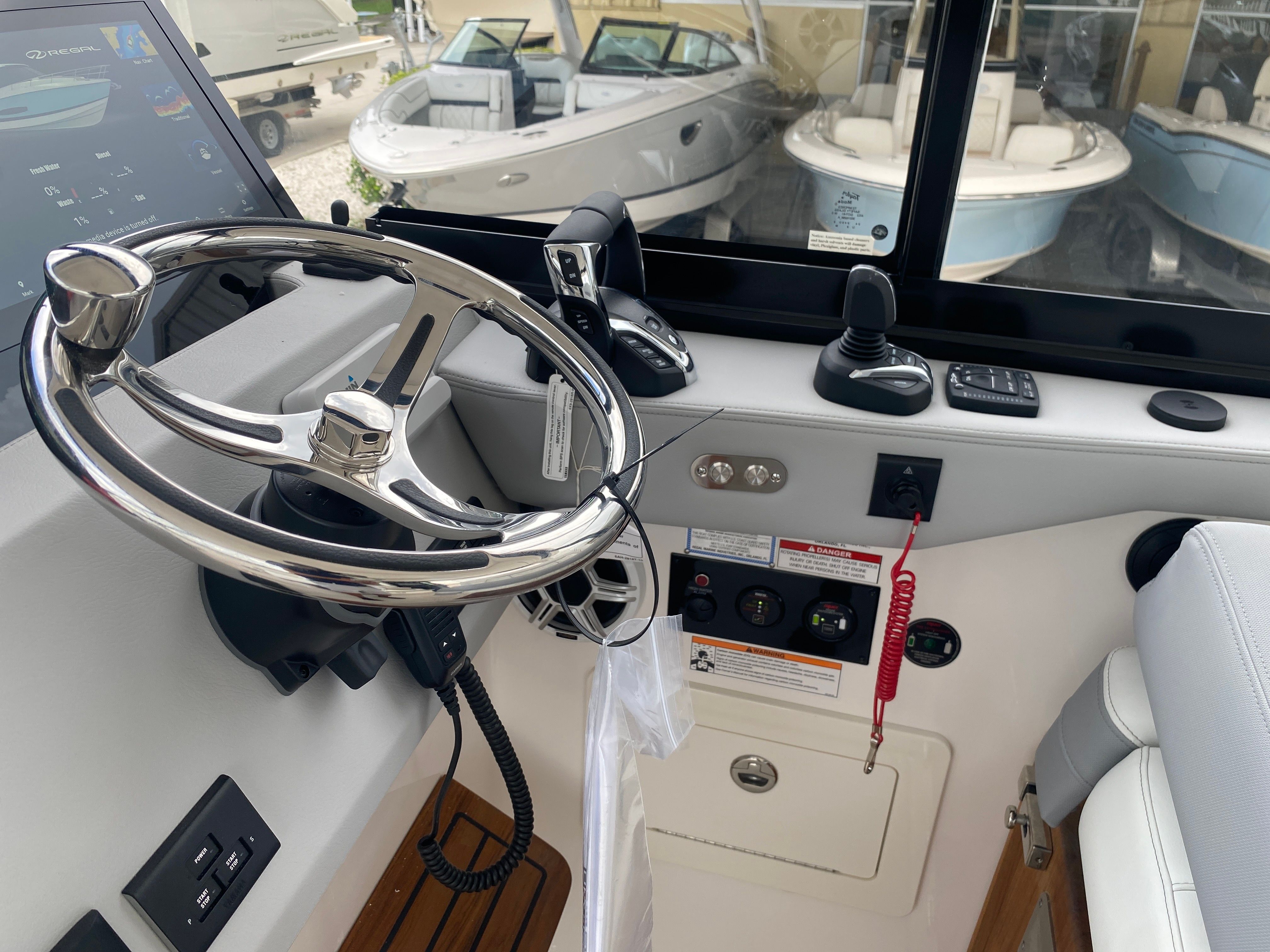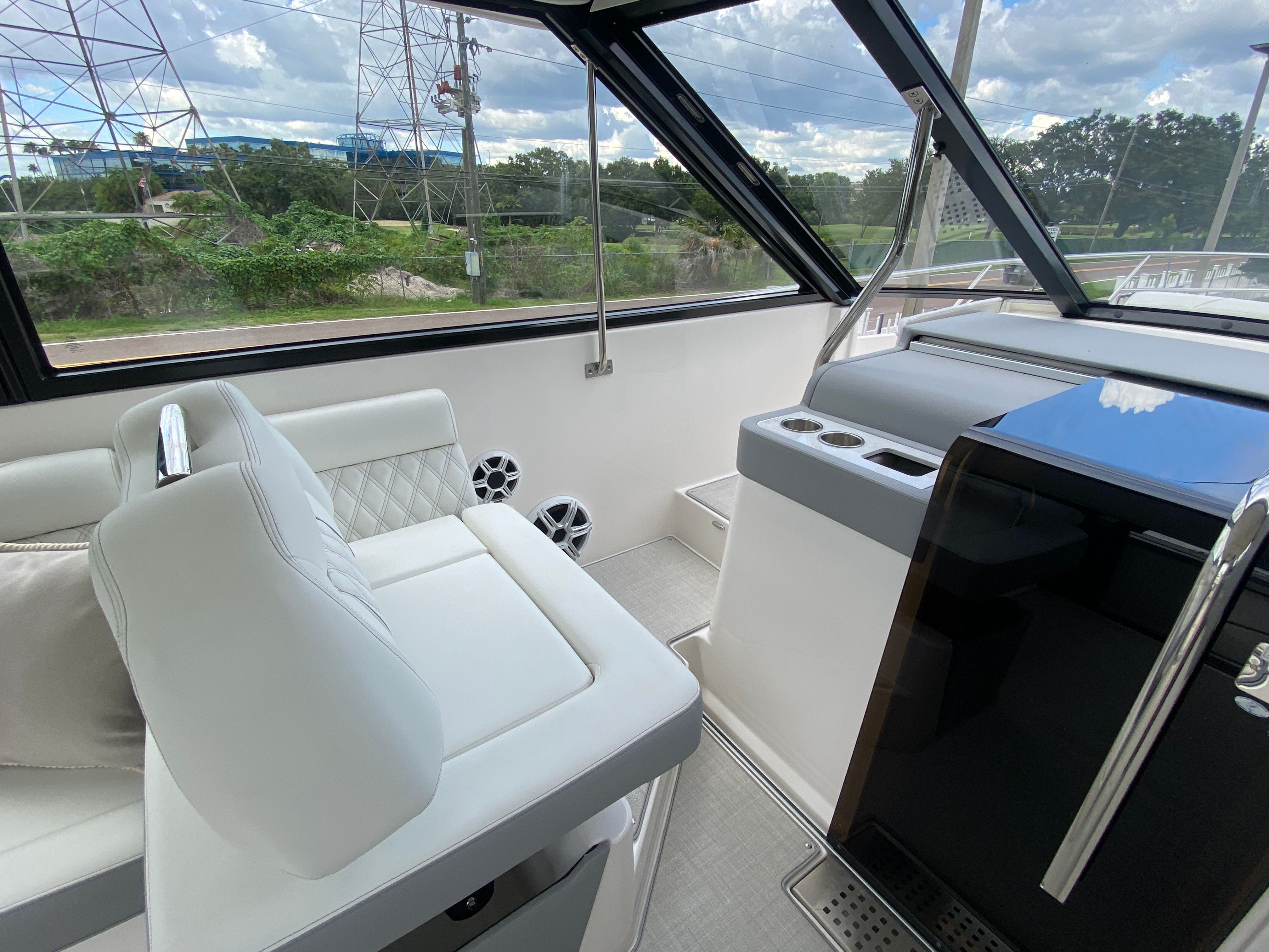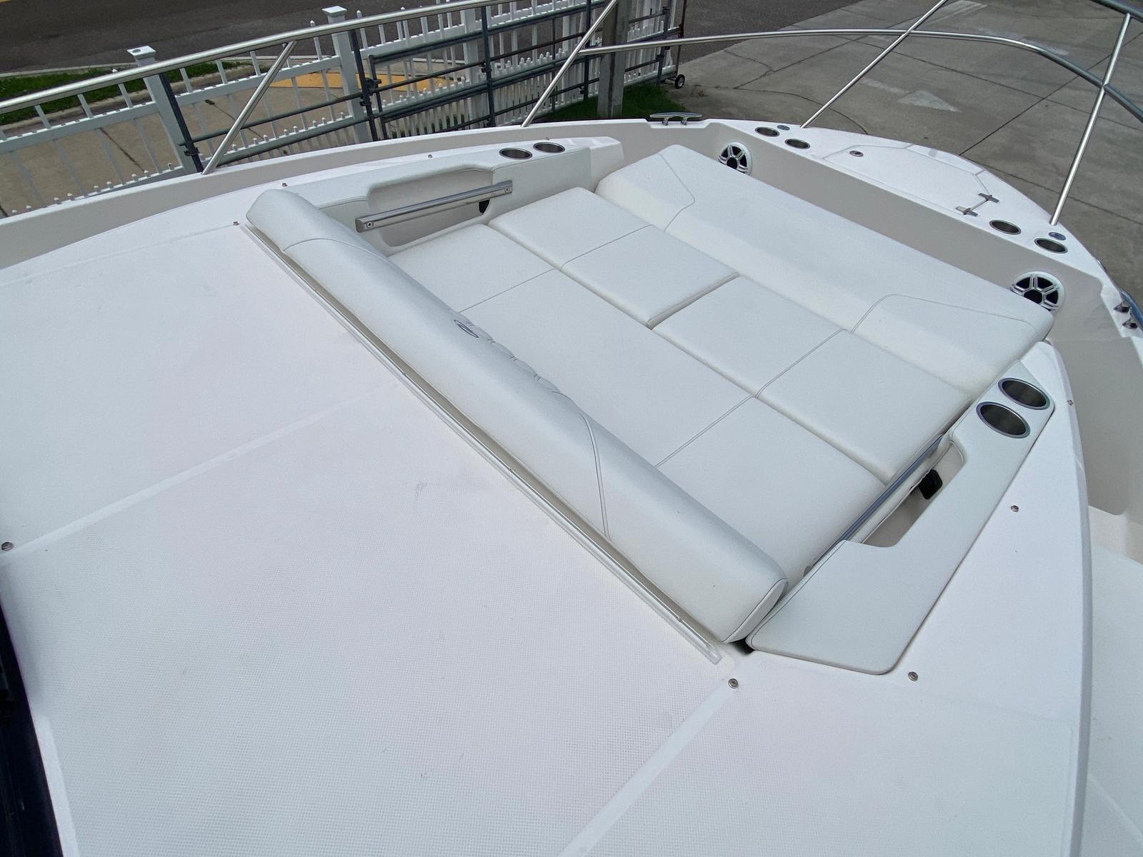 The Regal 36 XO is packed with premium features designed to elevate your time on the water. The overboard discharge toilet offers convenience and practicality, ensuring comfort during extended trips. The diesel 110V generator provides reliable power for all your onboard systems, so you can enjoy modern amenities wherever you go. The cruise package enhances your journey, making every outing smooth and enjoyable. For entertainment, the stereo satellite tuner with antenna delivers crystal-clear sound and access to your favorite music and channels, setting the perfect mood for any occasion.The Mediterranean Blue hull and canvas create a cohesive and stylish look, while the toasted oak salon floor adds a touch of luxury to the interior. The windshield privacy cover offers added comfort and security, allowing you to relax in peace. The electric salon door provides effortless access to the main living area, combining convenience with modern design. Every feature has been thoughtfully selected to enhance your boating experience, making the Regal 36 XO a top choice among yacht boats for sale.
