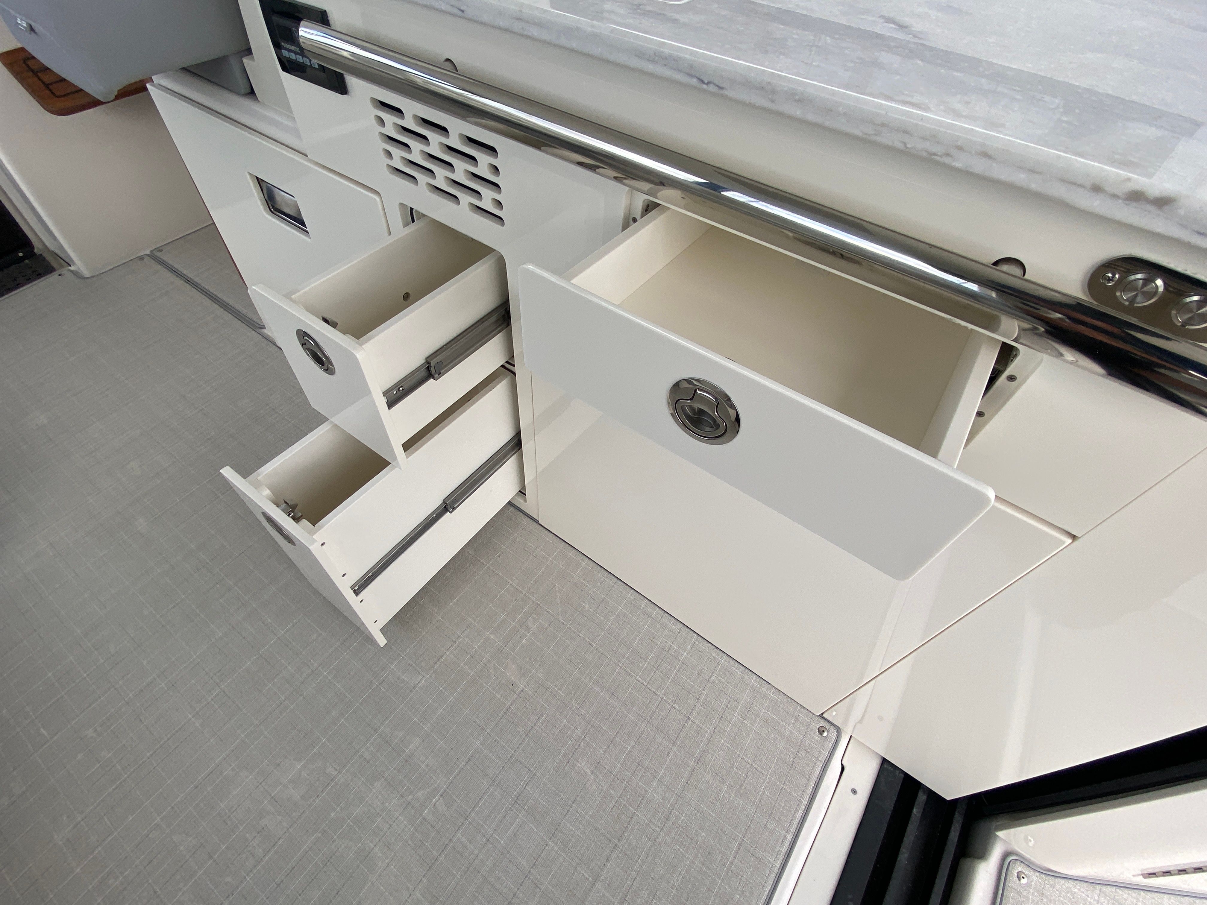 Power and precision are at the heart of the Regal 36 XO. Equipped with twin engines delivering a combined 900 horsepower, this yacht offers an exhilarating ride and responsive handling. Whether you’re cruising along the coastline or venturing into open waters, the Regal 36 XO provides smooth acceleration and impressive speed. The advanced engineering ensures optimal fuel efficiency, allowing you to enjoy longer journeys with fewer stops. The Seakeeper 3 Stabilization System further enhances your experience by minimizing roll and providing a stable, comfortable ride even in choppy conditions. This makes the Regal 36 XO not only a joy to drive but also a safe and reliable choice for all your boating adventures.