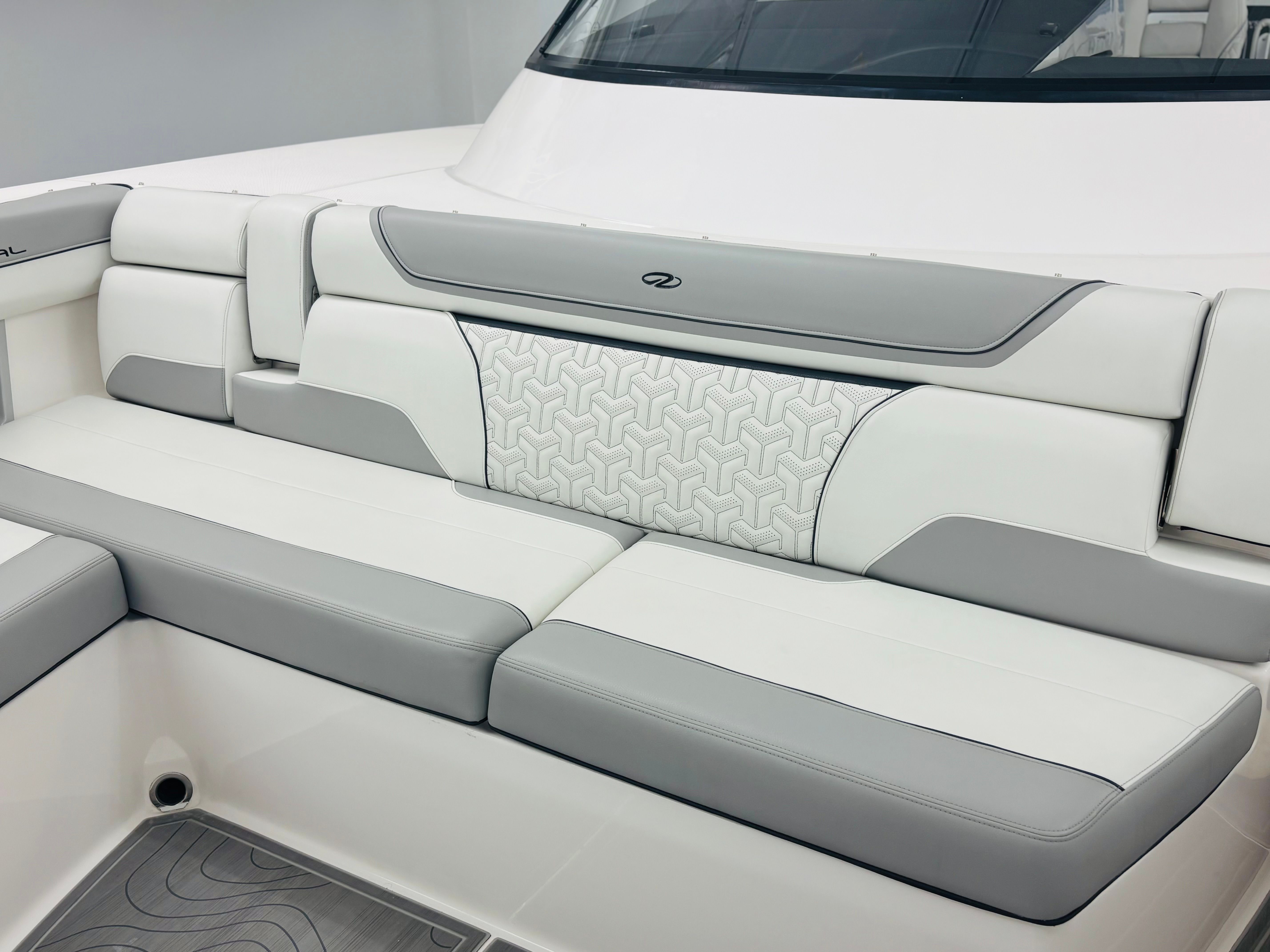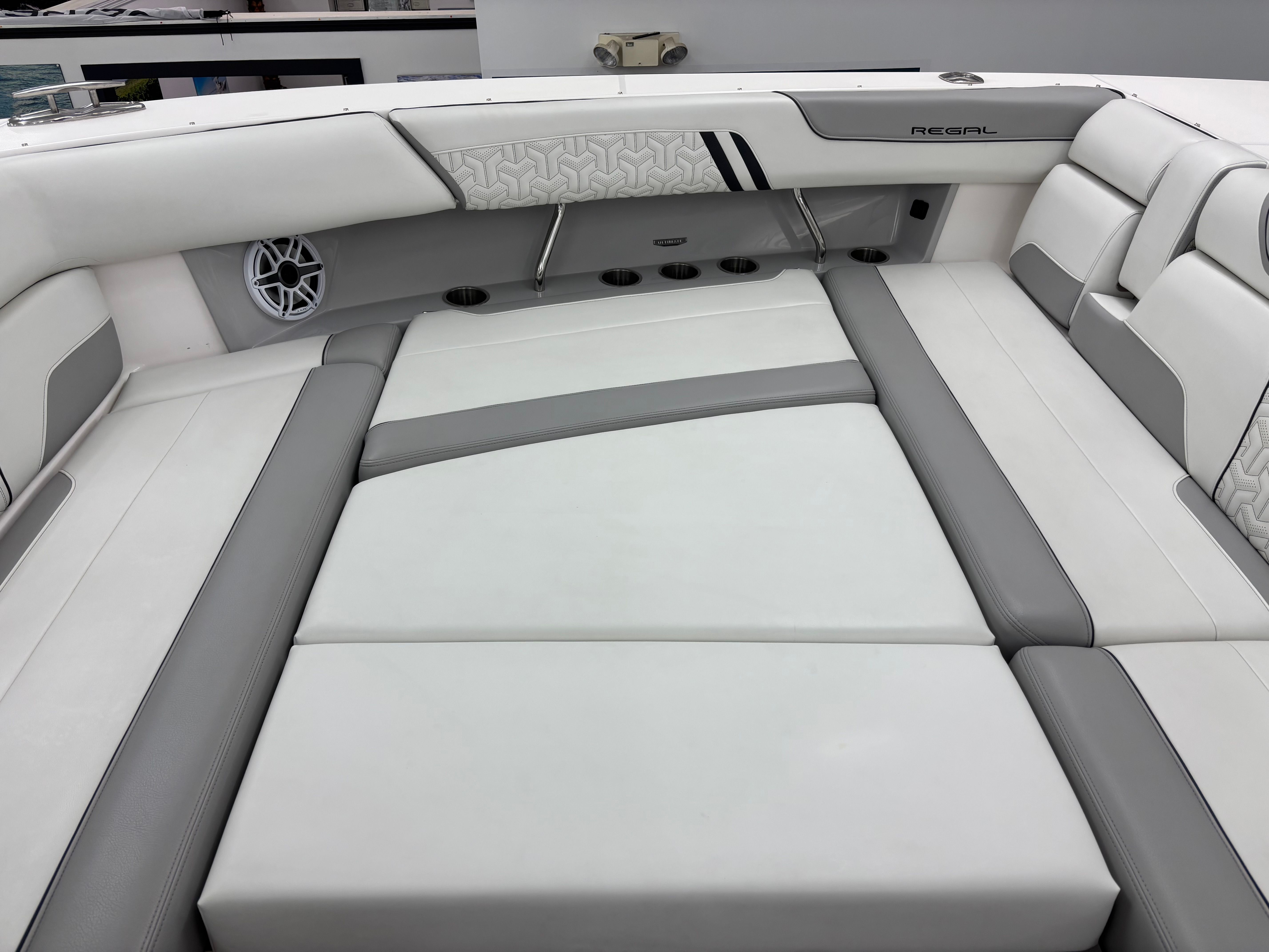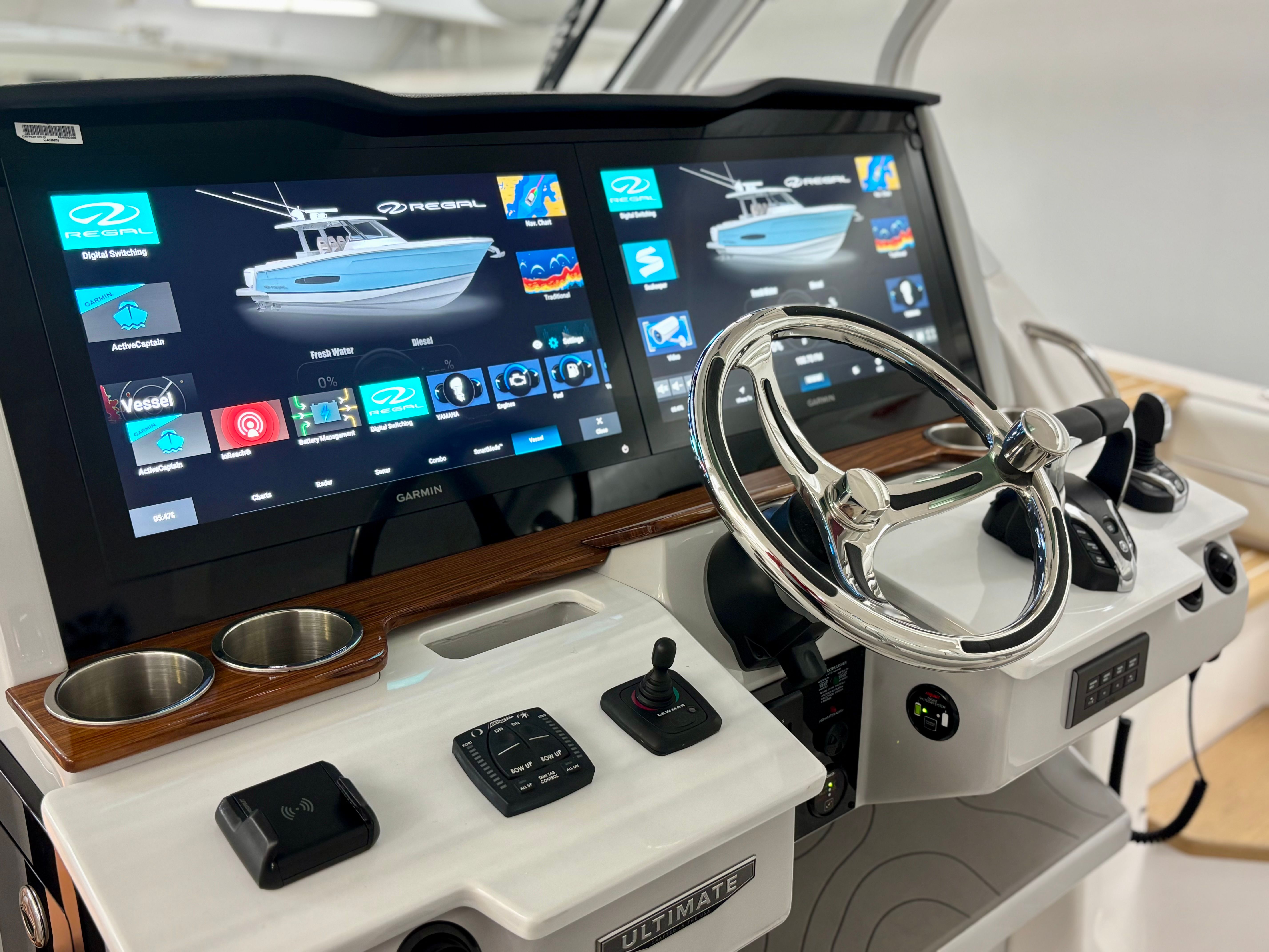 The Regal 38 SAV is loaded with special features that set it apart from other yacht boats for sale. The UltraLounge is a standout, offering versatile seating and lounging options for guests to relax in style. The dual Garmin 9222 displays, paired with the B60 transducer, provide state-of-the-art navigation and fish-finding capabilities, ensuring you are always in control and aware of your surroundings. The Captain's Orientation feature enhances the onboard experience, making it easy for both seasoned skippers and newcomers to operate the yacht with confidence. The carefully selected color palette, including Graphite, Steel Gray, Pure White, and Lunar Grey, gives the yacht a contemporary and elegant look that is sure to turn heads at any marina.