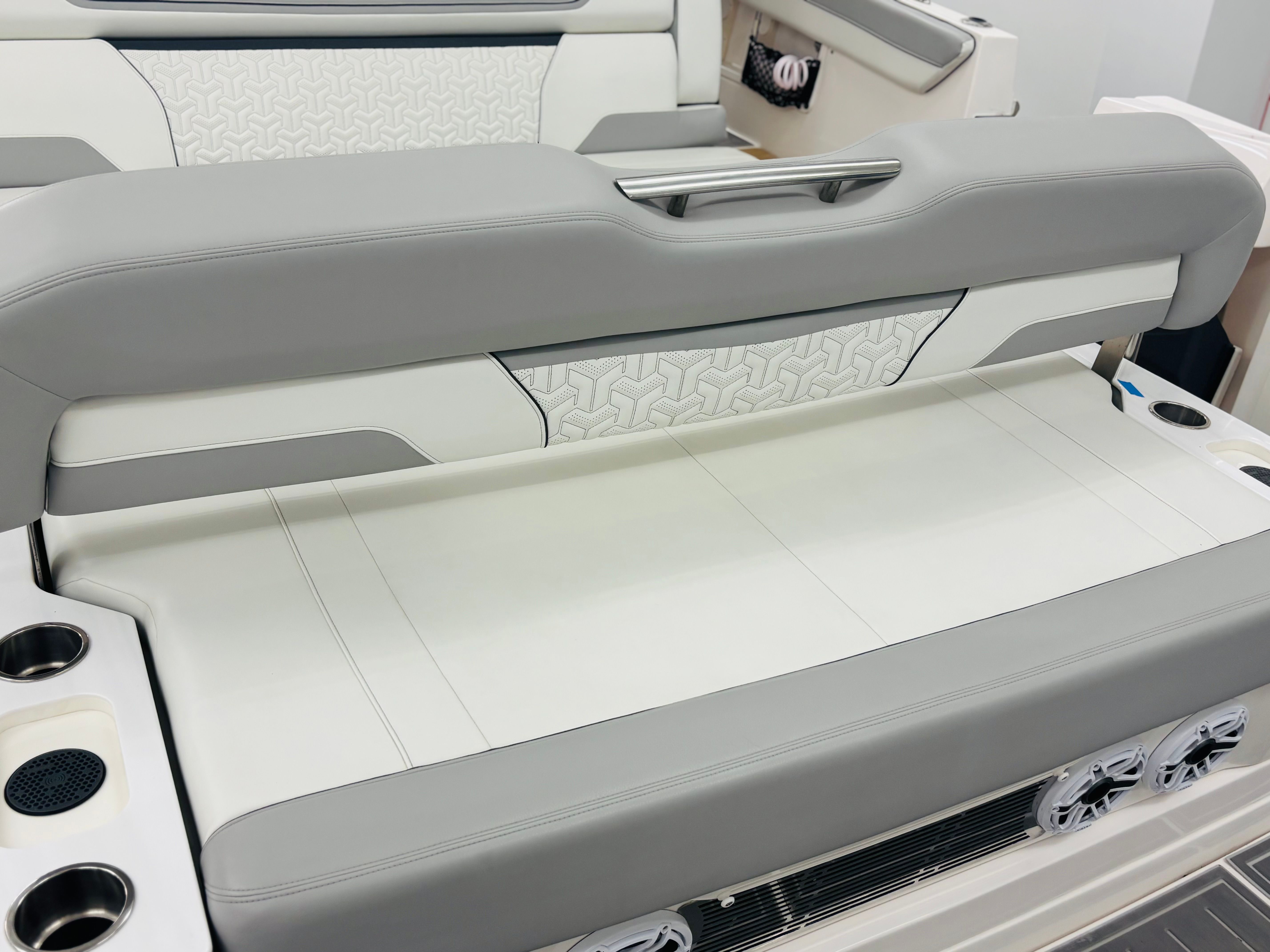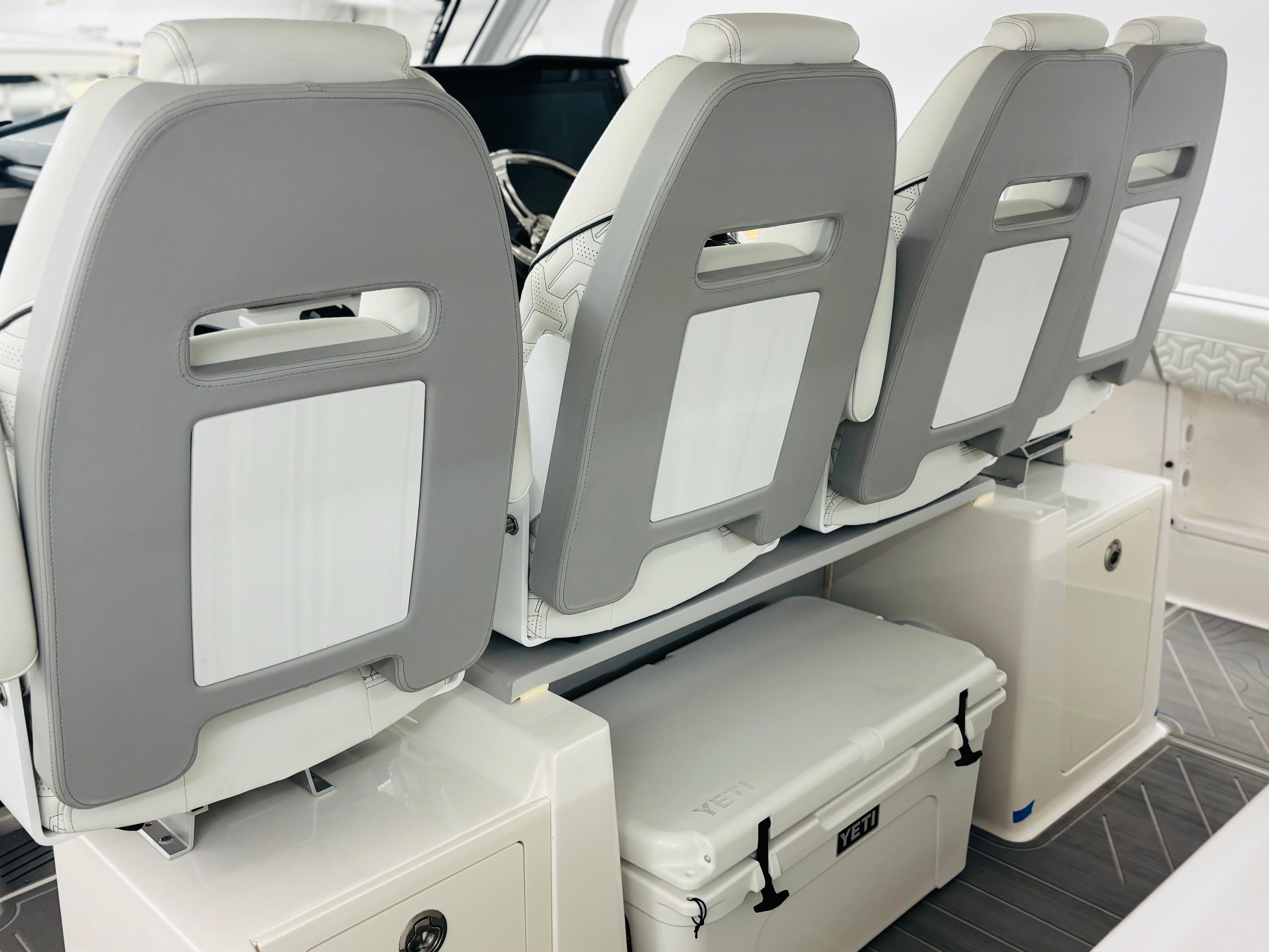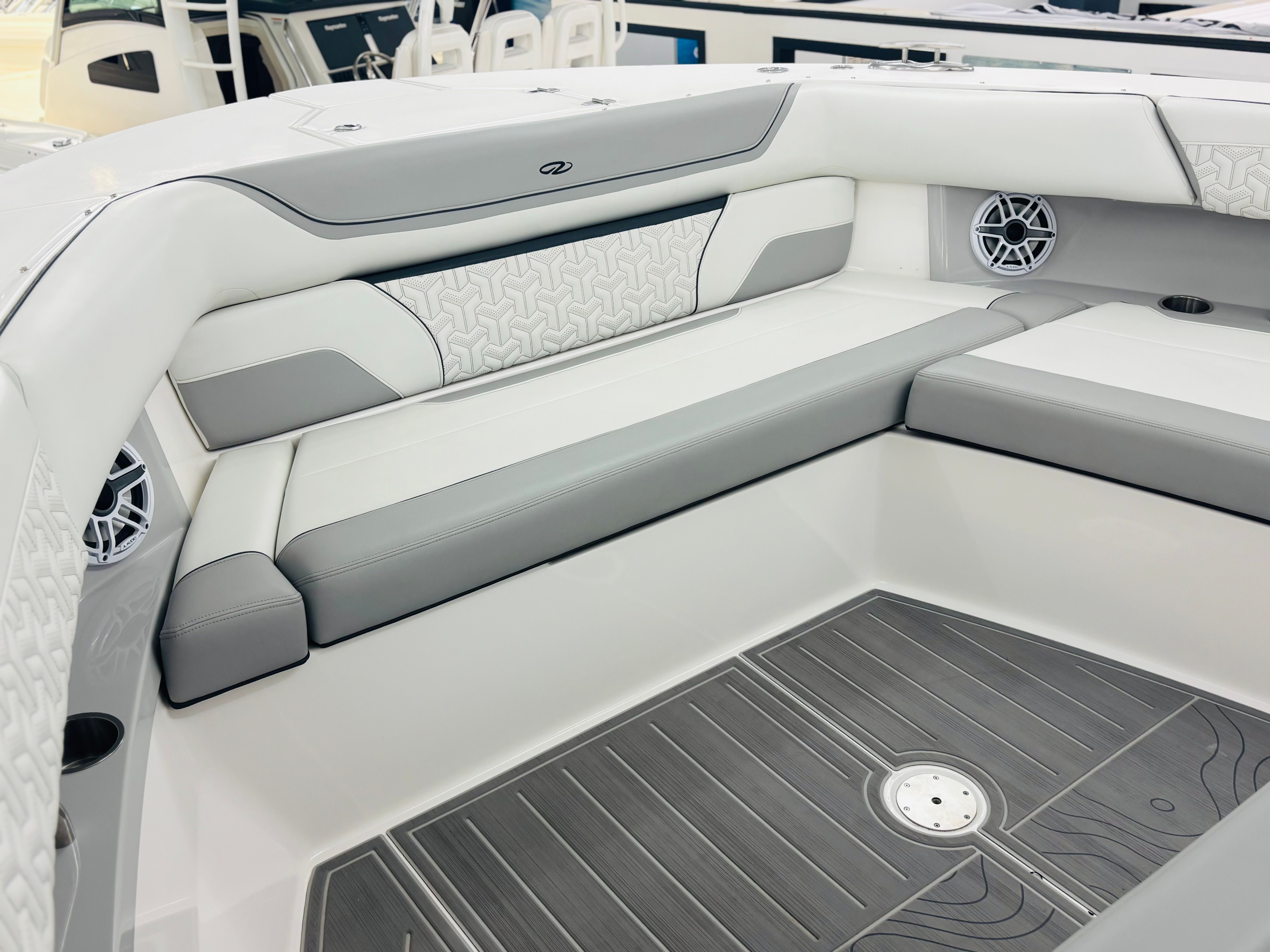 The Regal 38 SAV is loaded with special features that set it apart from other yacht boats for sale. The UltraLounge is a standout, offering versatile seating and lounging options for guests to relax in style. The dual Garmin 9222 displays, paired with the B60 transducer, provide state-of-the-art navigation and fish-finding capabilities, ensuring you are always in control and aware of your surroundings. The Captain's Orientation feature enhances the onboard experience, making it easy for both seasoned skippers and newcomers to operate the yacht with confidence. The carefully selected color palette, including Graphite, Steel Gray, Pure White, and Lunar Grey, gives the yacht a contemporary and elegant look that is sure to turn heads at any marina.