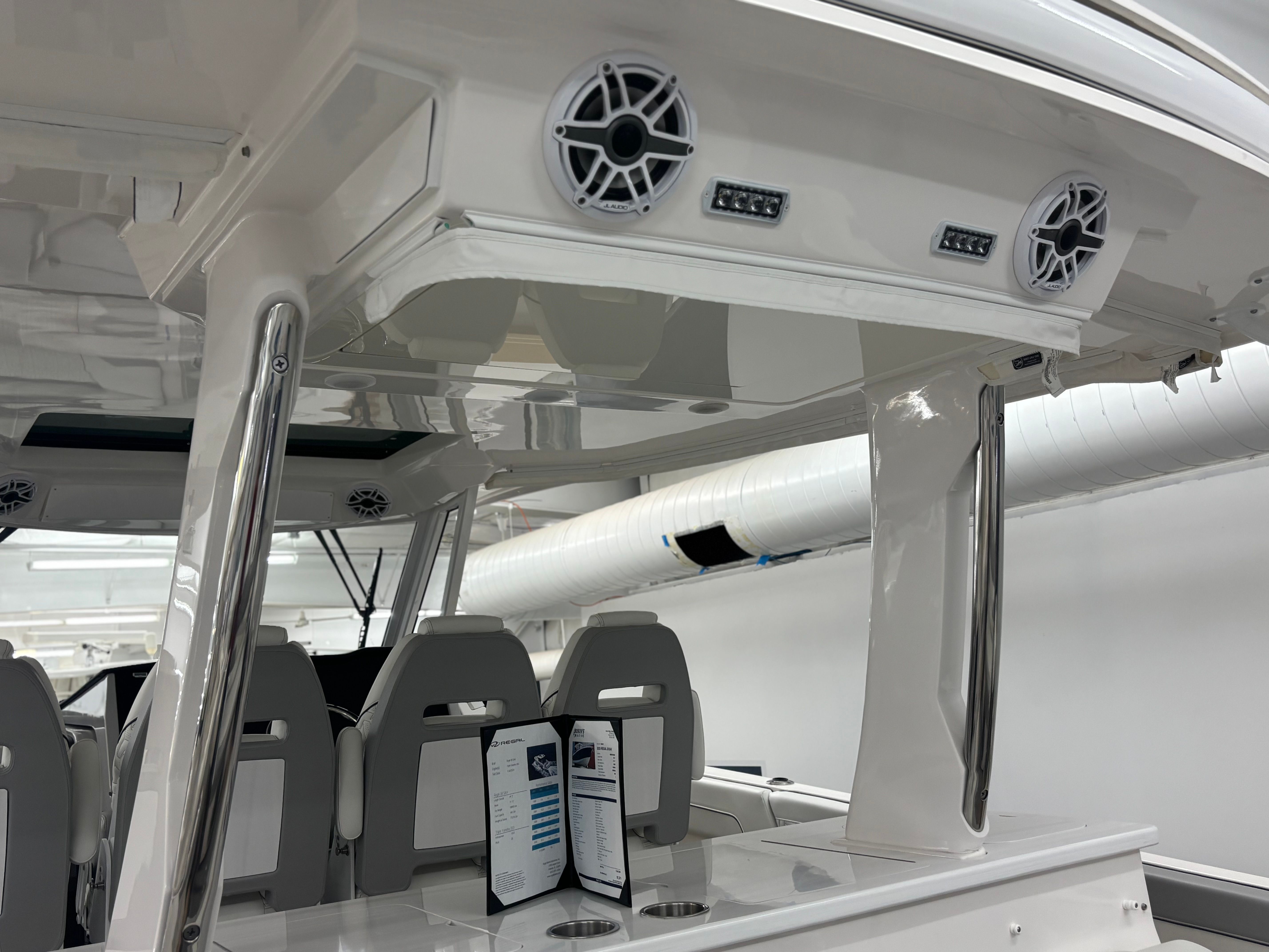 At the heart of the Regal 38 SAV is a trio of powerful Yamaha 350HP engines, delivering a combined 1,050 horsepower. These Triple Yamaha engines feature integrated steering and a striking white finish, ensuring not only robust performance but also a sophisticated appearance. The advanced engineering behind these engines provides smooth acceleration, impressive top speeds, and responsive handling, making every journey exhilarating. Whether you are cruising along the coastline or heading out for a day of adventure, the Regal 38 SAV offers the power and agility you need to navigate with confidence.