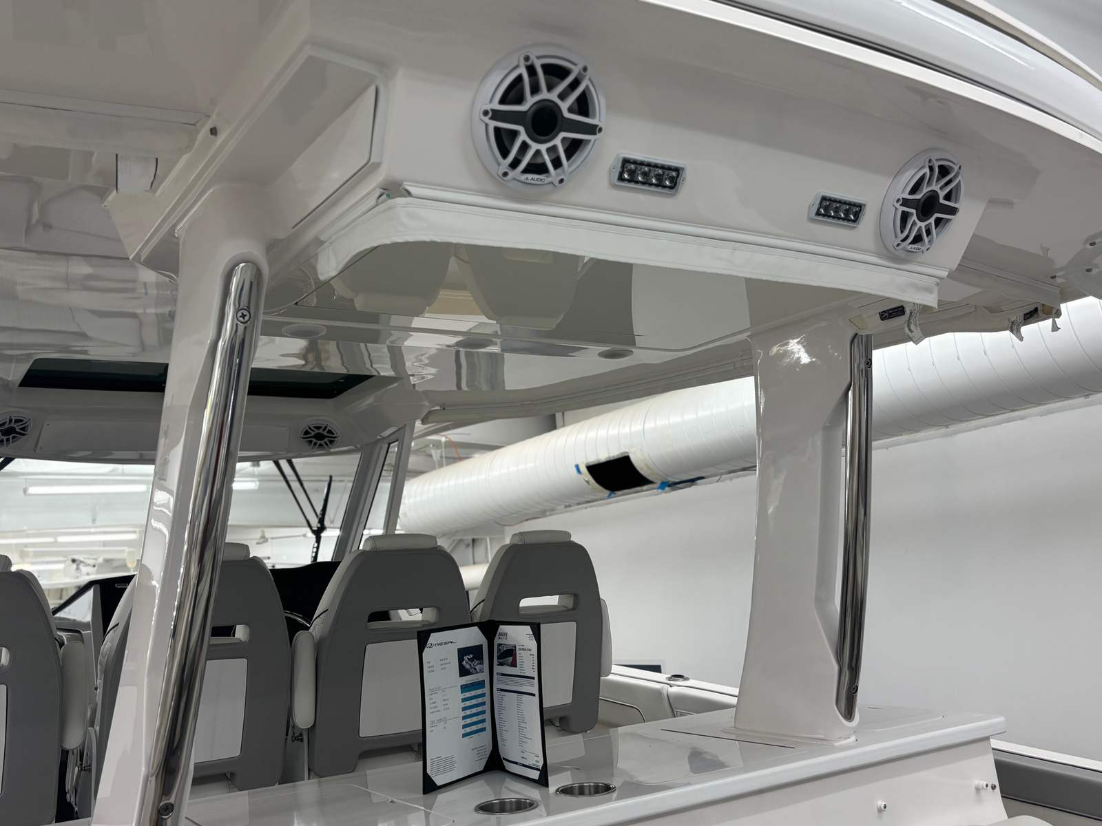 The 2025 Regal 38 SAV stands out with its impressive length of 39.25 feet, offering ample space for relaxation, entertainment, and exploration. This new yacht boasts a sleek and modern profile, highlighted by its Graphite bottom color, Steel Gray bootstripe, and a combination of Pure White, Lunar Grey, and Graphite finishes. The absence of bottom paint ensures a pristine, streamlined look that enhances both aesthetics and performance. As a new yacht, the 38 SAV is in immaculate condition, ready to deliver years of enjoyment on the water.