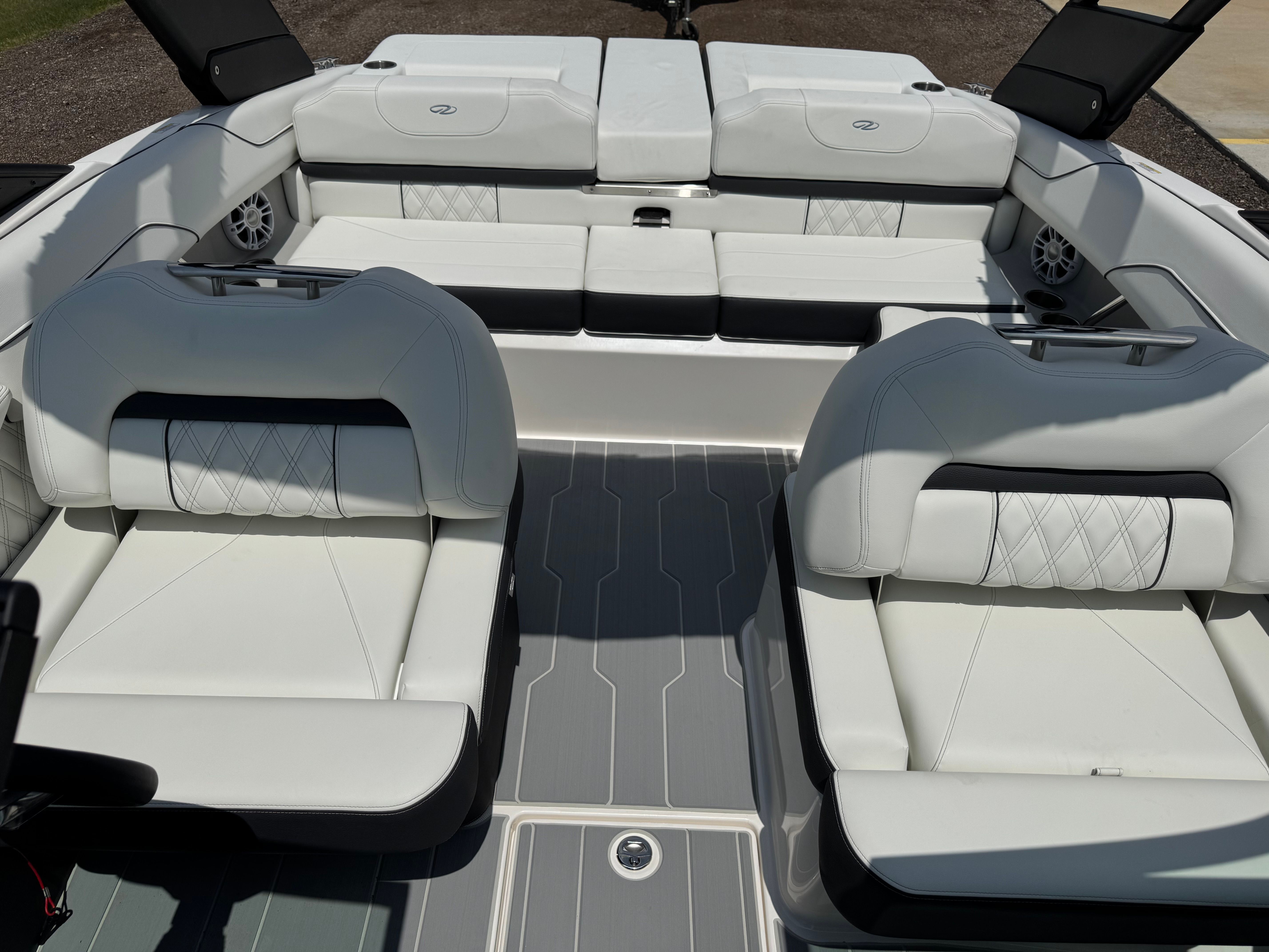 The Regal LS2 Surf is packed with premium features designed to elevate your boating experience. The striking Steel Grey hull, accented by a Black bootstripe and Graphite bottom, gives this bowrider a bold and refined look. The included travel storage cover in Black ensures your investment is protected from the elements when not in use, keeping your boat in pristine condition.Step aboard and you’ll immediately notice the SeaDek cockpit sole and SeaDek swim platform, providing a soft, non-slip surface that is both comfortable underfoot and easy to maintain. These features enhance safety and add a touch of luxury to your time on the water. The dual battery switch with tray and cables, along with a battery charger, ensures you have reliable power for all your onboard electronics and accessories, giving you peace of mind during extended outings.
