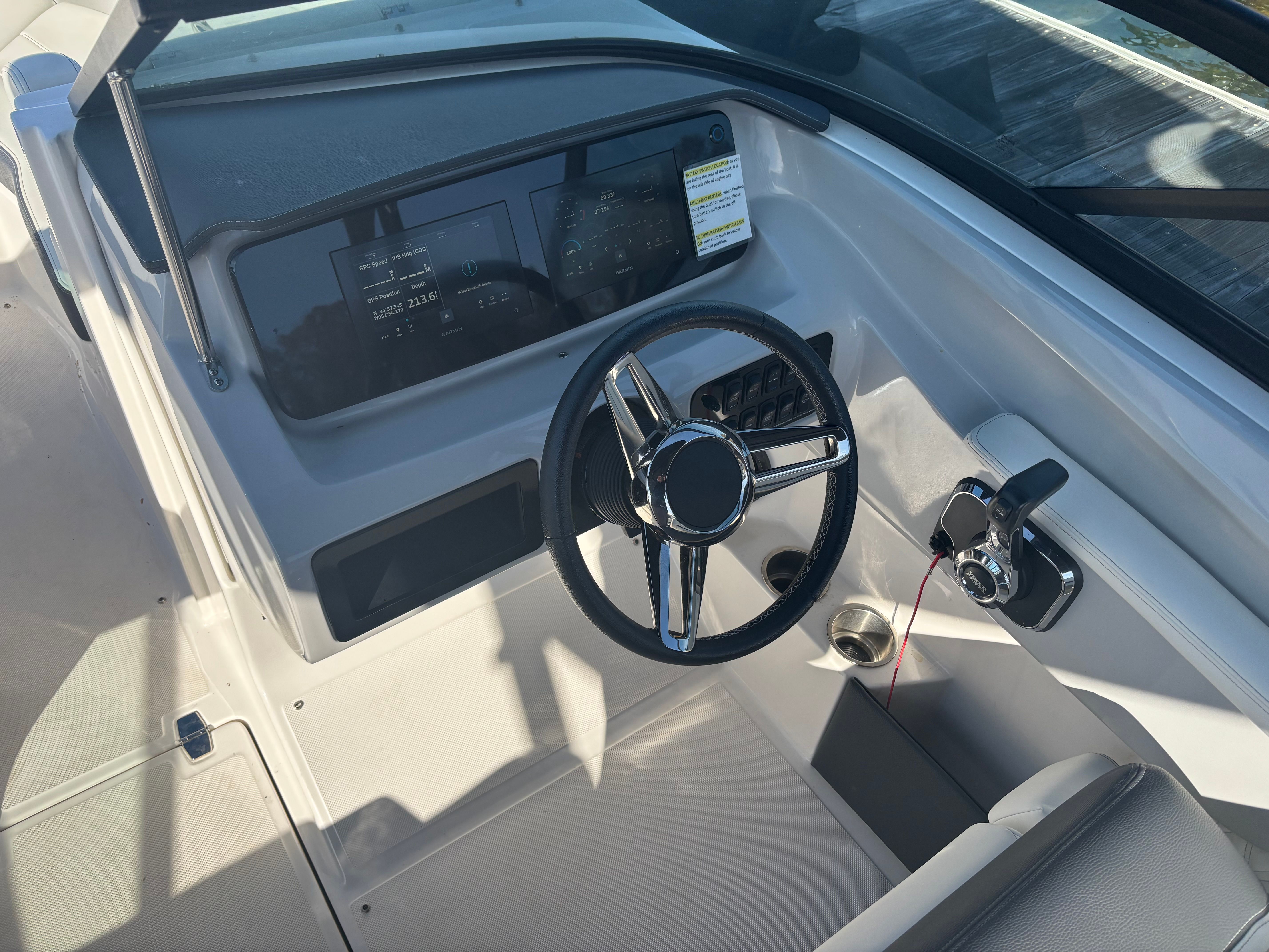 The 2024 Regal LS2 is packed with features designed to elevate your boating experience. The OneCaptain system (subscription required) brings cutting-edge technology to your fingertips, enhancing navigation and onboard management. Dual Garmin 743 displays provide clear, intuitive access to navigation and system information, ensuring you stay informed and in control at all times. The dual battery switch with tray and cables offers peace of mind, allowing you to manage your power supply efficiently during extended outings.Practical touches like black canvas, fender clips, and docking lights make every aspect of boating more convenient and enjoyable. The black canvas adds a touch of elegance while providing essential protection from the elements. Fender clips simplify the process of securing your boat, while docking lights enhance visibility and safety during nighttime arrivals or departures. Every detail of the LS2 is thoughtfully designed to maximize comfort, convenience, and style.