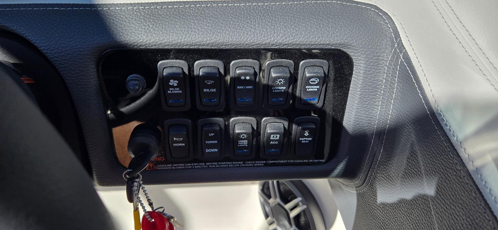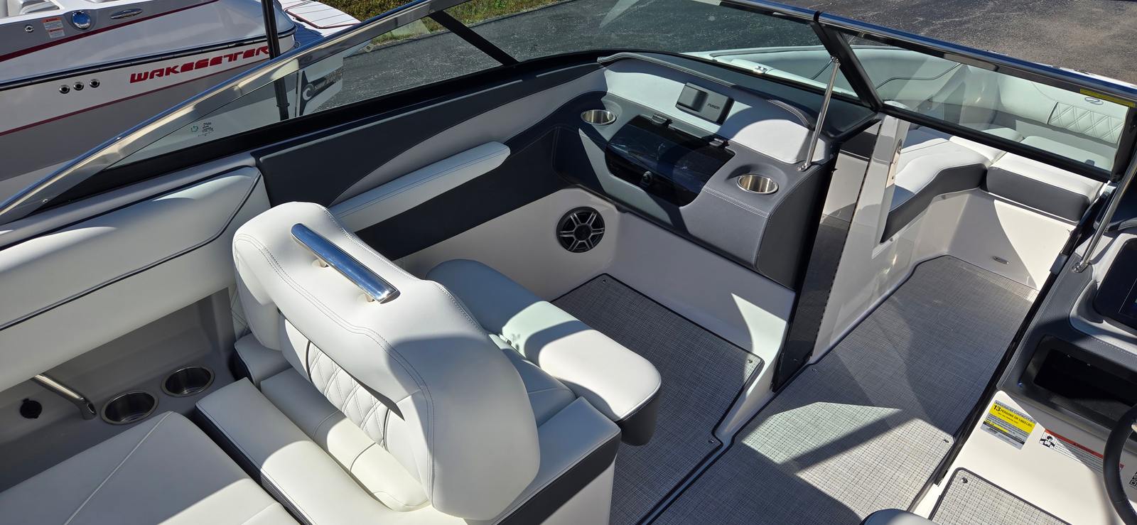 The 2026 Regal LS4 Bowrider is loaded with premium features that enhance both comfort and convenience. The Mediterranean Blue hull color, accented by a Flame Red bootstripe and Tahiti Beach White bottom, creates a striking visual impression that stands out in any marina. The Titanium interior offers plush seating and a refined atmosphere, perfect for relaxing or entertaining guests.A Travel Storage Cover in black ensures your boat stays protected when not in use, while the Mediterranean Blue canvas provides shade and style during your outings. The cockpit is fitted with a Seagrass Mat, offering a soft, non-slip surface that is both attractive and easy to maintain. The SeaDek Swim Platform extends your enjoyment to the water’s edge, providing a comfortable and safe area for swimming, sunbathing, or gearing up for water sports.For added peace of mind, the LS4 is equipped with a Dual Battery Switch, complete with tray and cables, ensuring reliable power management and easy maintenance. Every detail of this bowrider is designed to enhance your boating experience, from the stylish finishes to the practical amenities.