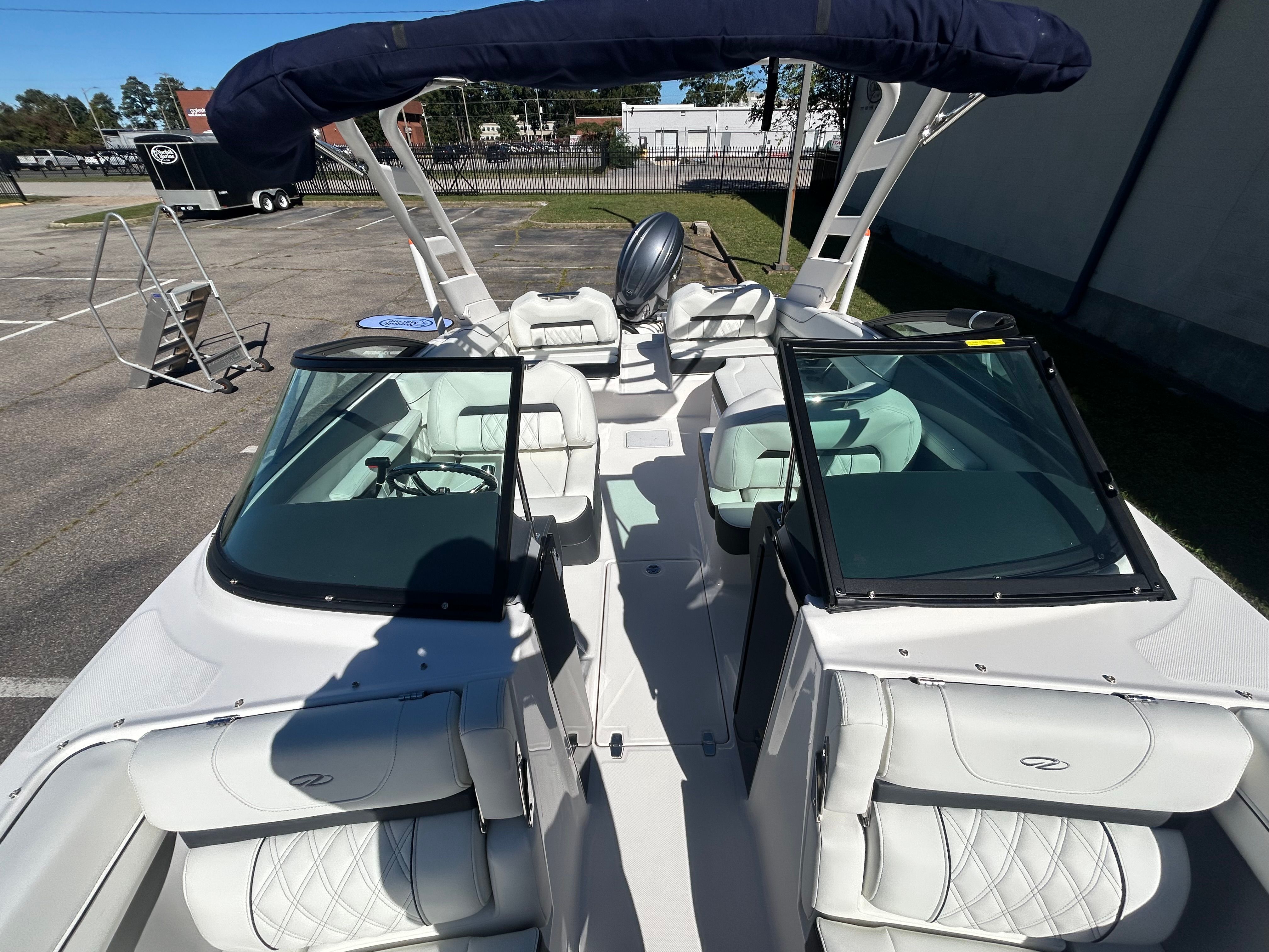 The Regal LX2 Bowrider is packed with features designed to enhance your boating experience. The Mediterranean Blue bow and cockpit covers provide protection from the elements, keeping your boat in pristine condition while adding a stylish touch. The dual battery switch with tray and cables ensures reliable power management, giving you peace of mind during extended outings. The stainless steel upgrade package adds durability and a polished look to key components, while the bow walk-thru doors offer convenient access and improved safety for passengers moving between the bow and cockpit areas.The hull’s Mediterranean Blue color, paired with the Tahiti Beach White bottom, not only looks stunning but also reflects Regal’s commitment to quality and attention to detail. The Titanium accents and Mediterranean Blue canvas further enhance the boat’s aesthetic appeal, creating a cohesive and luxurious atmosphere onboard.