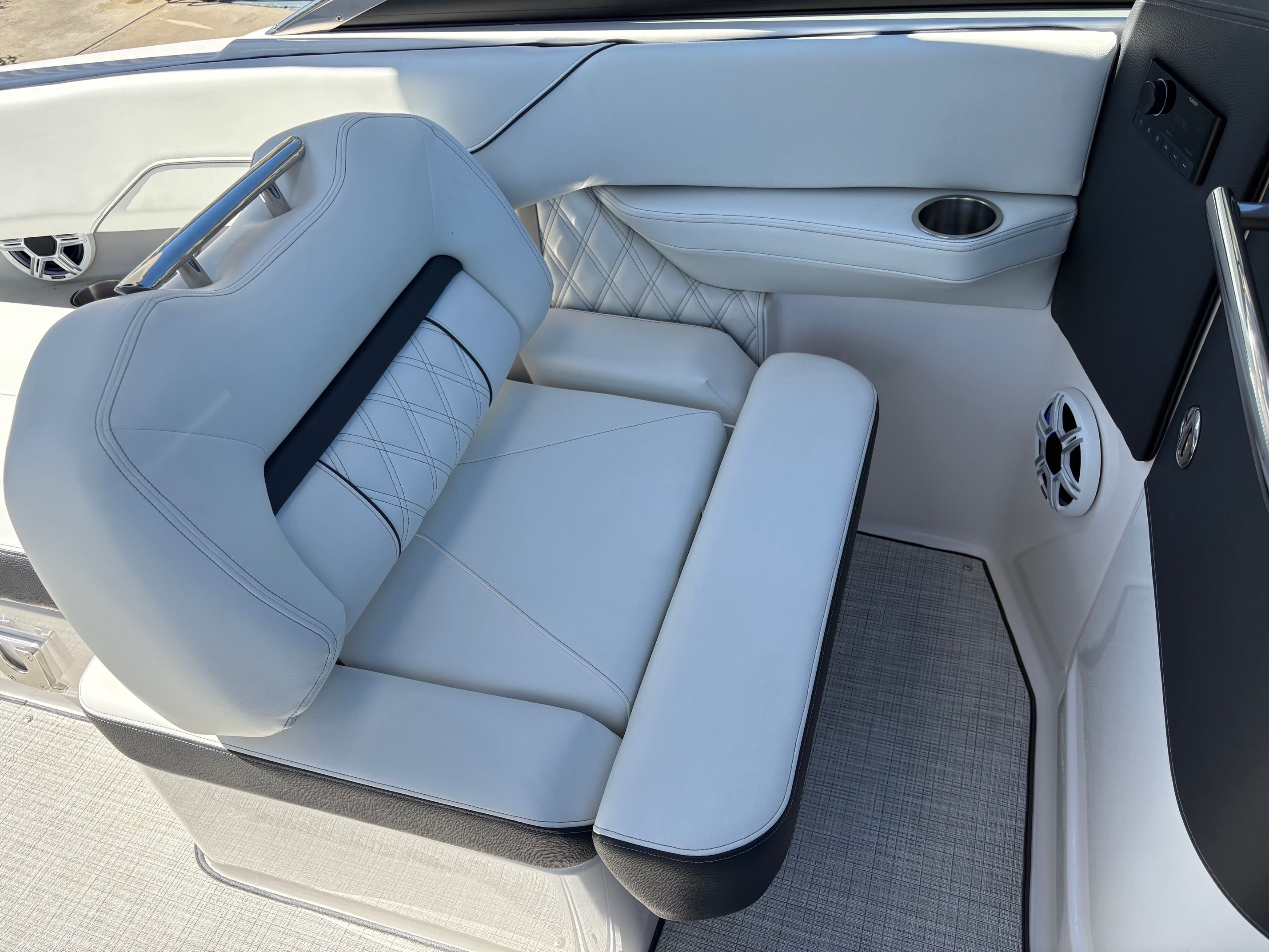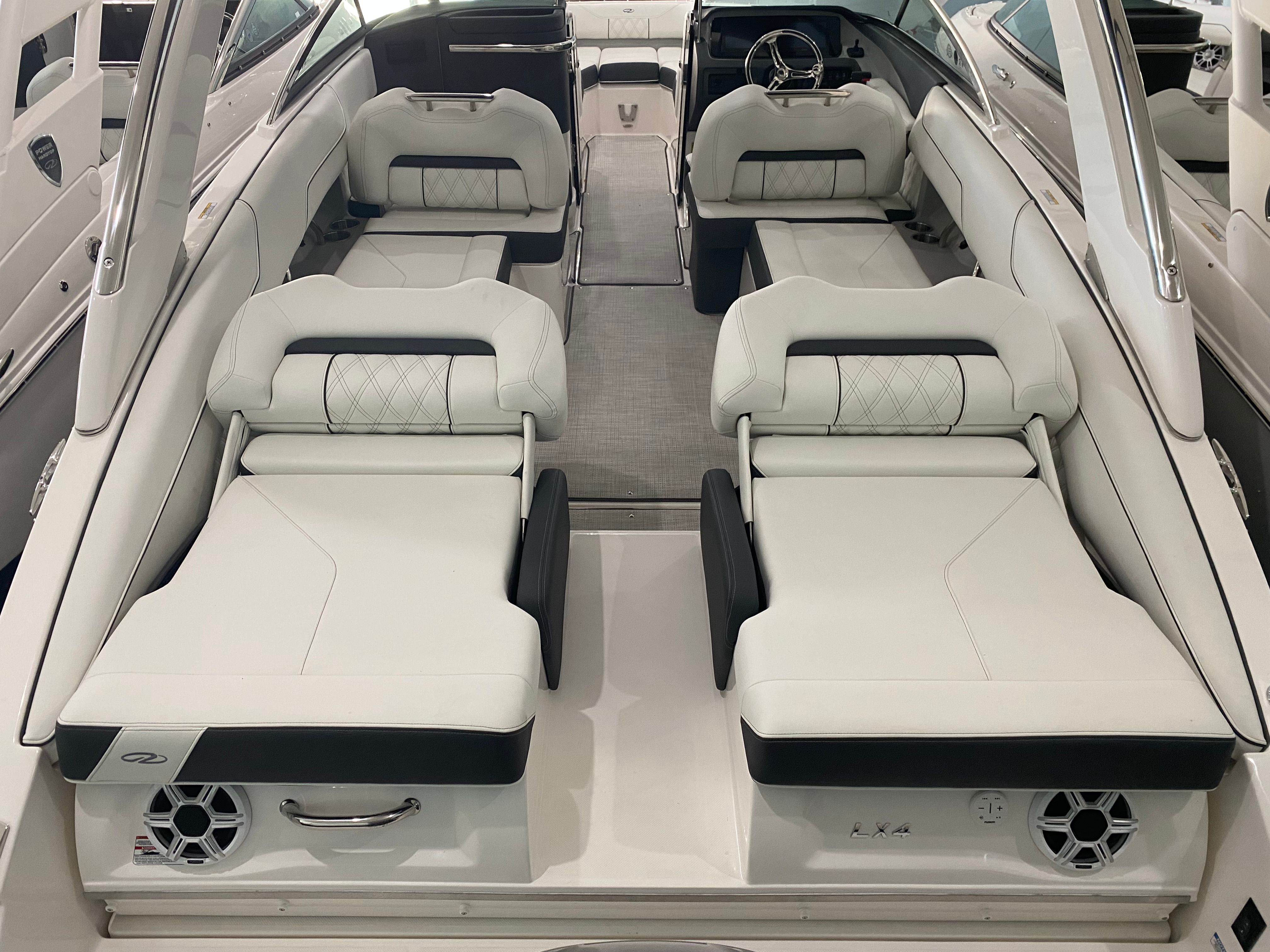 The Regal LX4 Bowrider is as practical as it is stylish. Its manageable length makes docking and storage a breeze, whether you’re keeping it at a marina or trailering it to your favorite launch site. The efficient Yamaha F250XB engine helps keep operating costs down, while the dual battery switch ensures you have plenty of power for extended trips.The bow and cockpit covers make it easy to protect your boat from the elements, reducing maintenance and preserving its showroom shine. The Seagrass Mat is not only comfortable but also easy to clean, making post-adventure cleanup quick and hassle-free. Every feature of the LX4 is designed to make ownership simple and enjoyable, so you can focus on what matters most—having fun on the water.