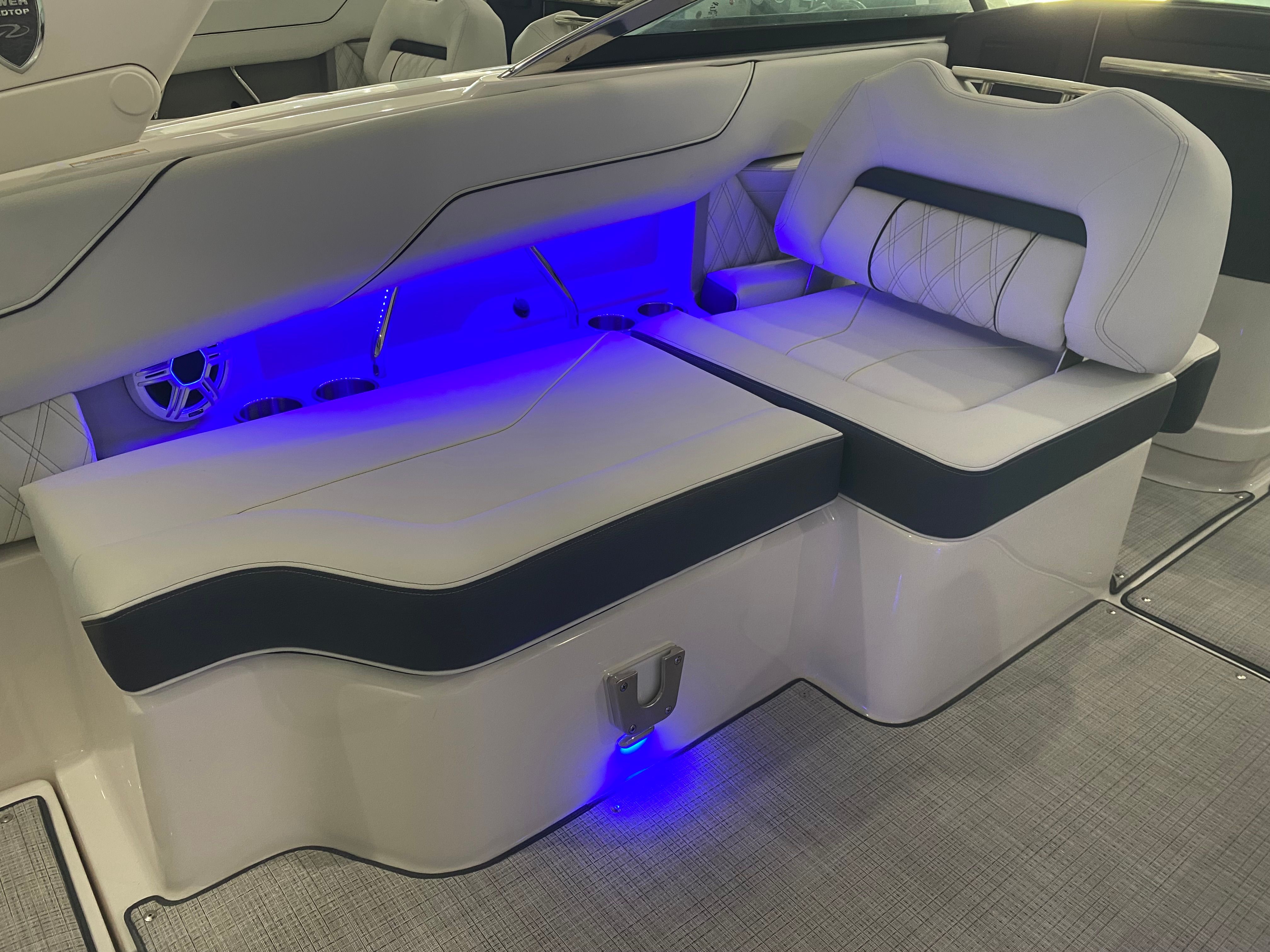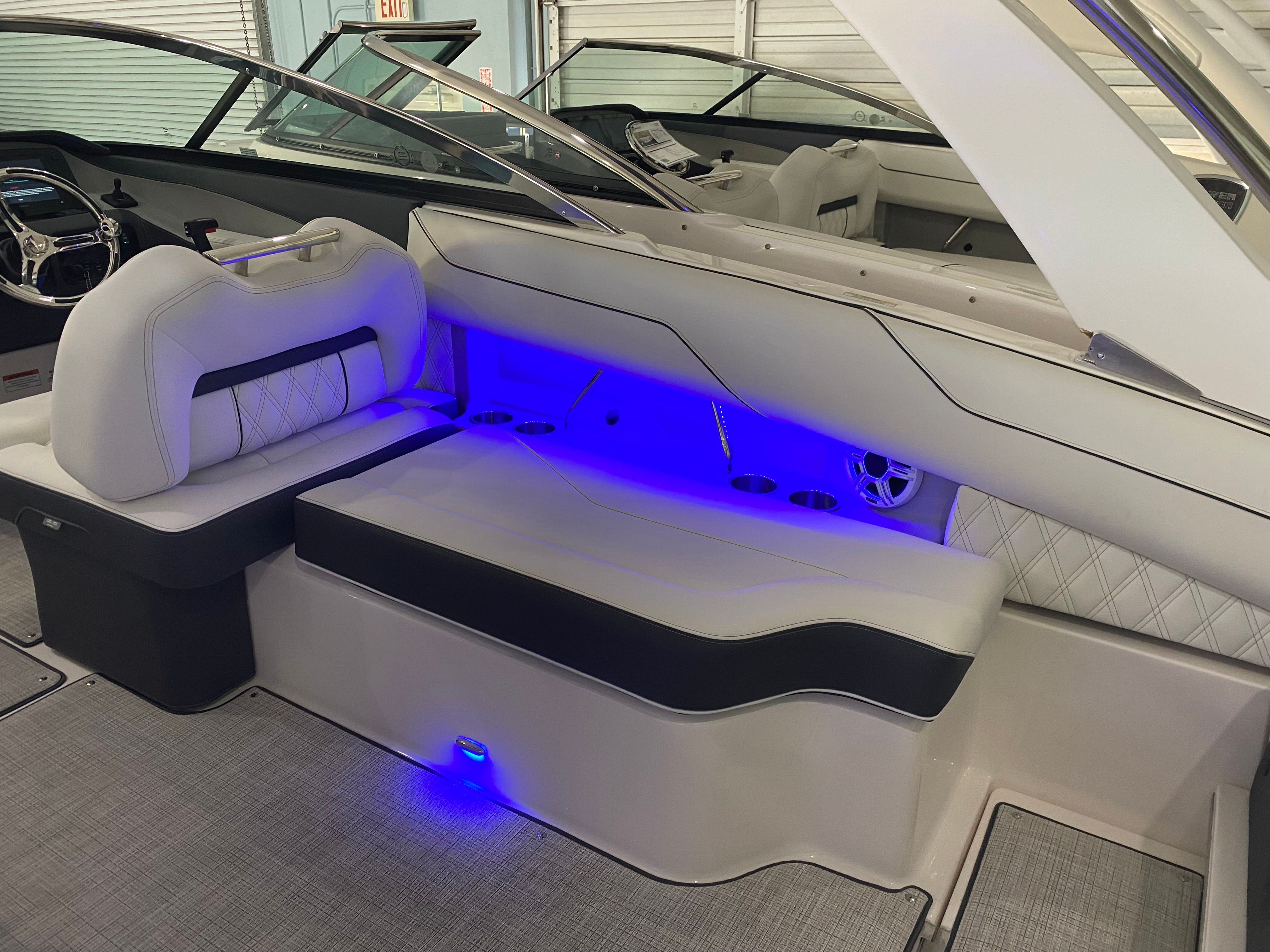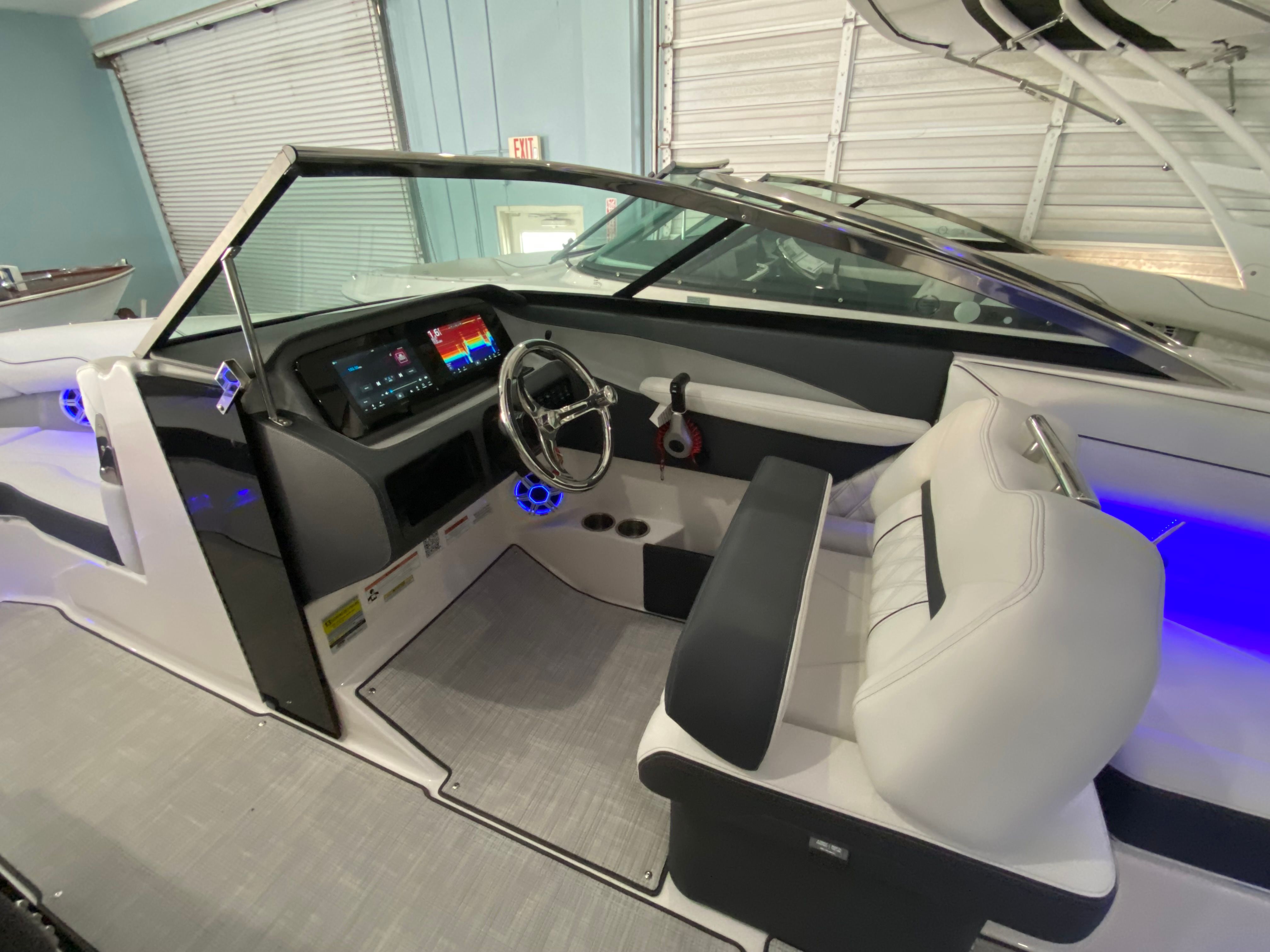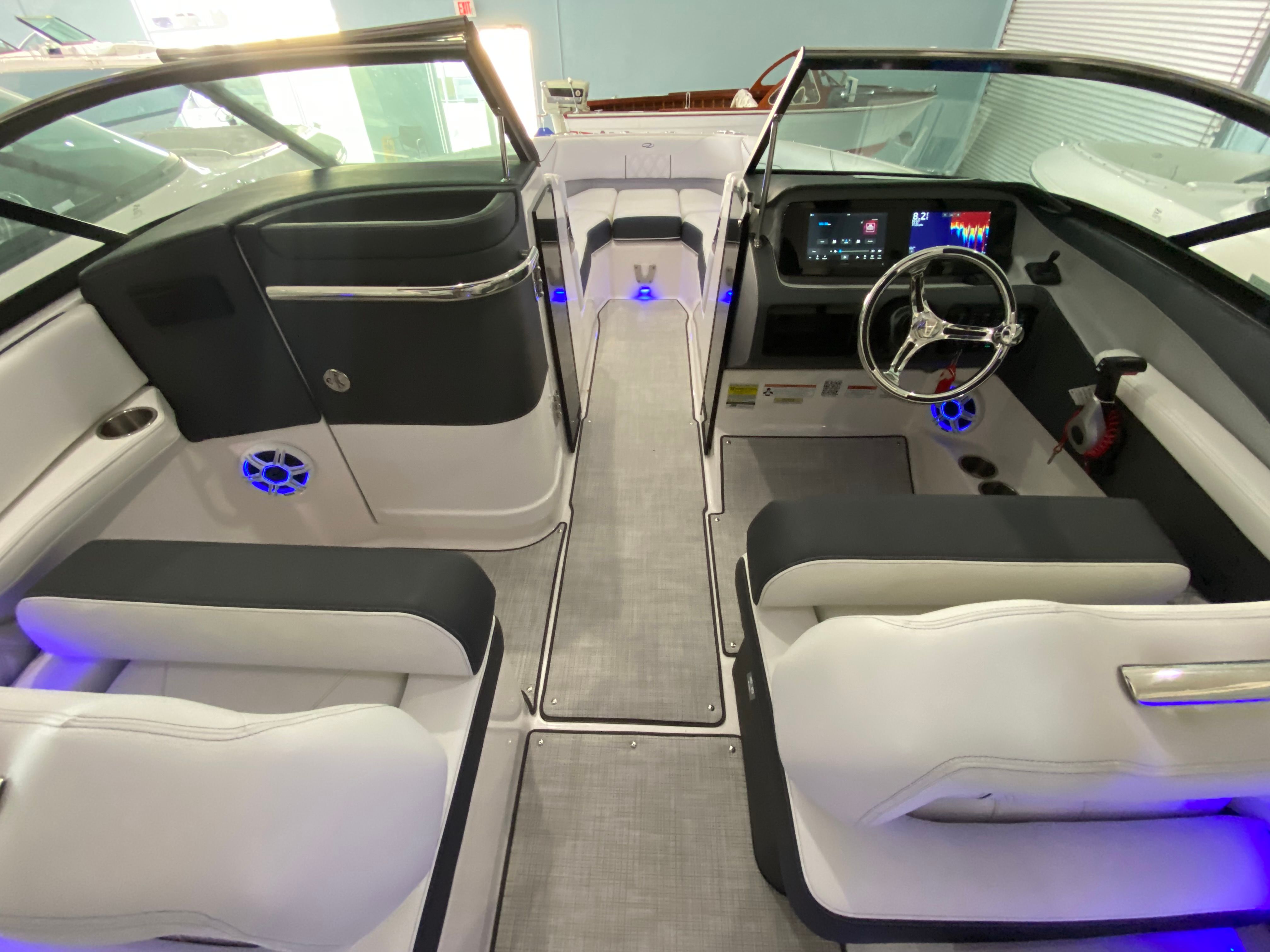 The Regal LX4 Bowrider is packed with features designed to enhance your boating experience. The boat’s Mediterranean Blue canvas adds a touch of elegance and protection, while the Bow Sunshade System—manual in operation—provides welcome relief from the midday sun, allowing you and your guests to relax in comfort. Bow and cockpit covers help keep your boat looking pristine, protecting it from the elements when not in use.Step into the cockpit and you’ll find a luxurious Seagrass Mat underfoot, offering both style and comfort. The dual battery switch with tray and cables ensures reliable power management, giving you peace of mind during extended outings. Every detail, from the color-coordinated accents to the ergonomic seating, has been carefully considered to create a welcoming and functional environment.