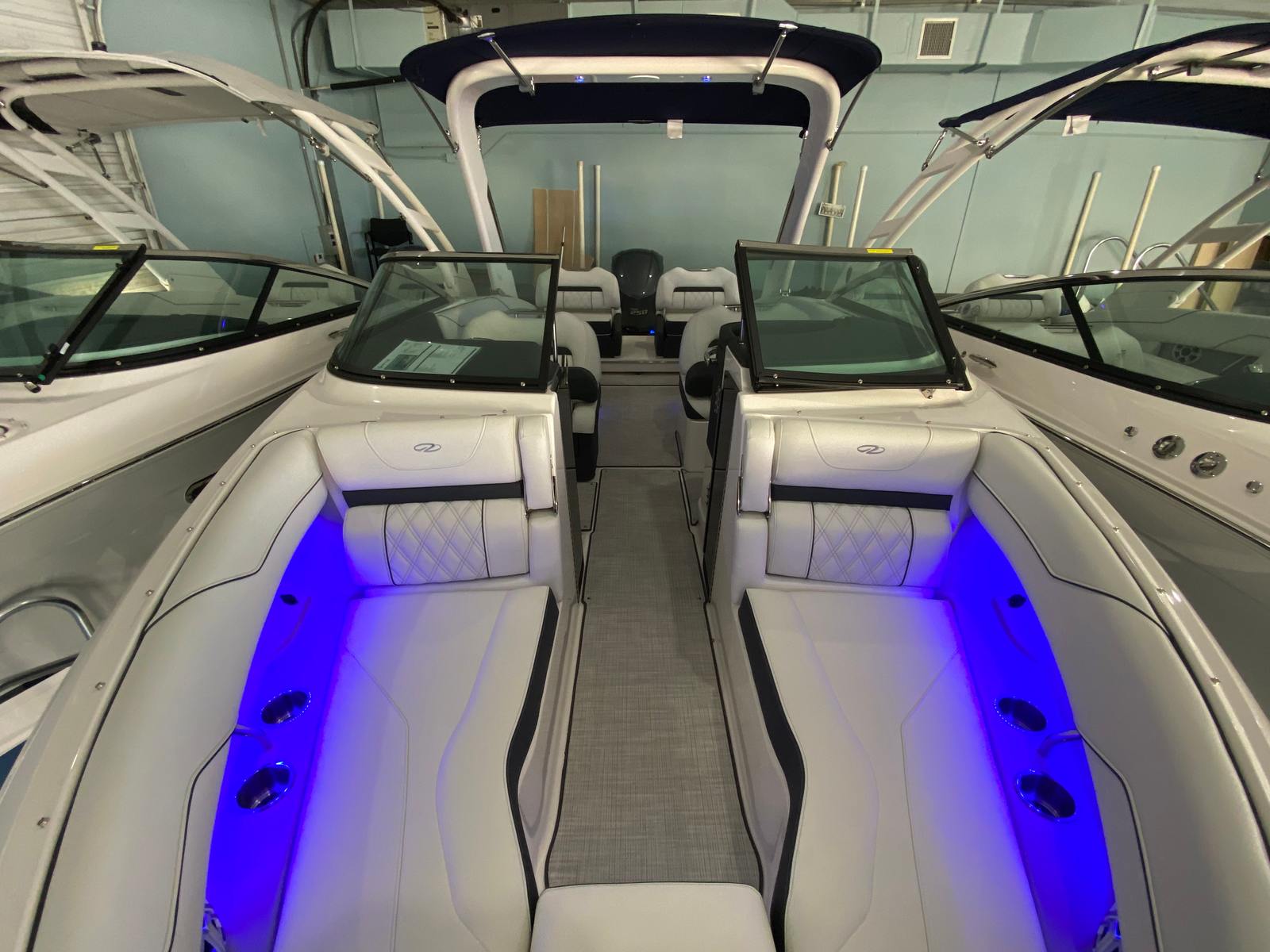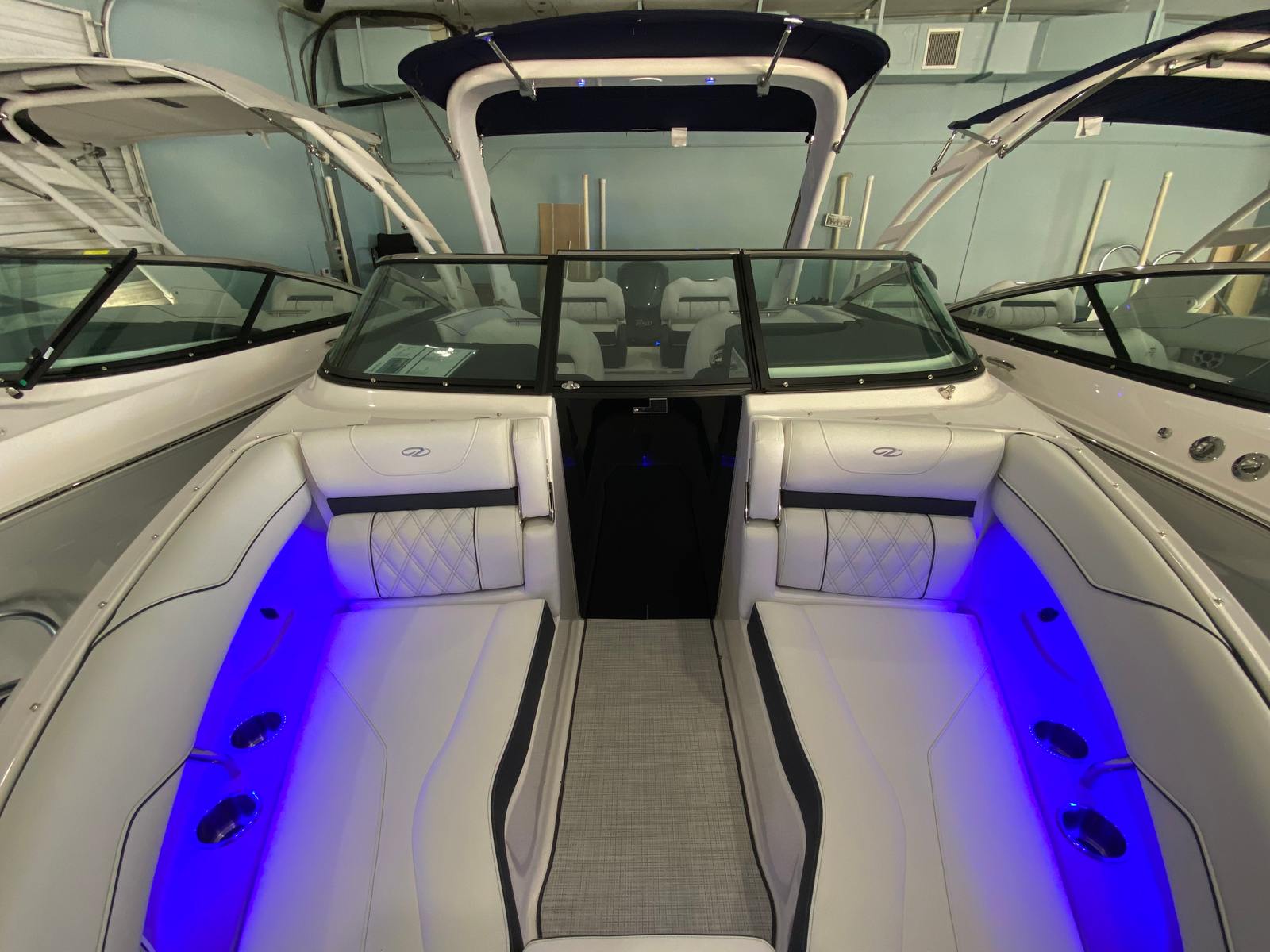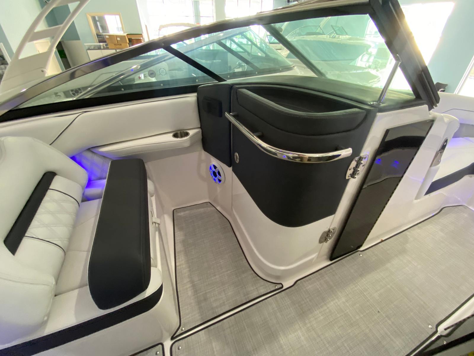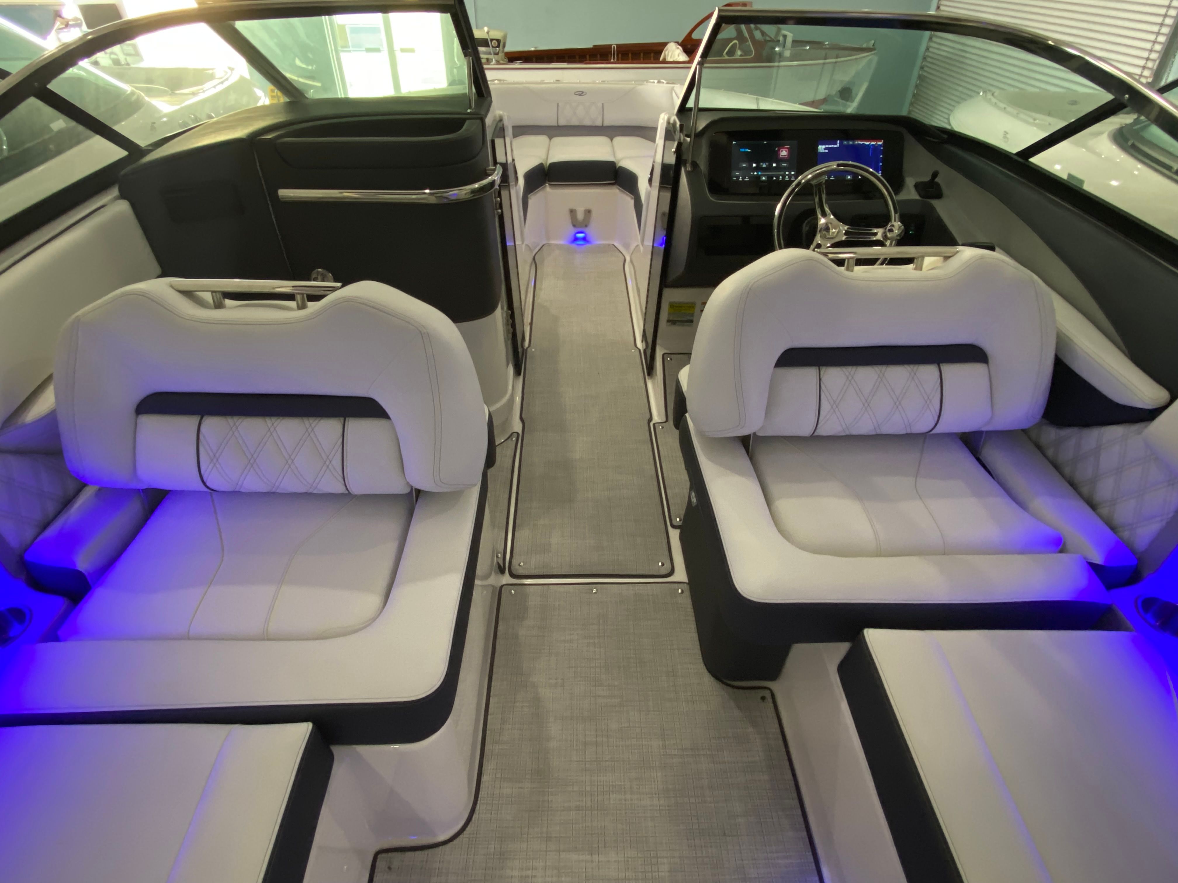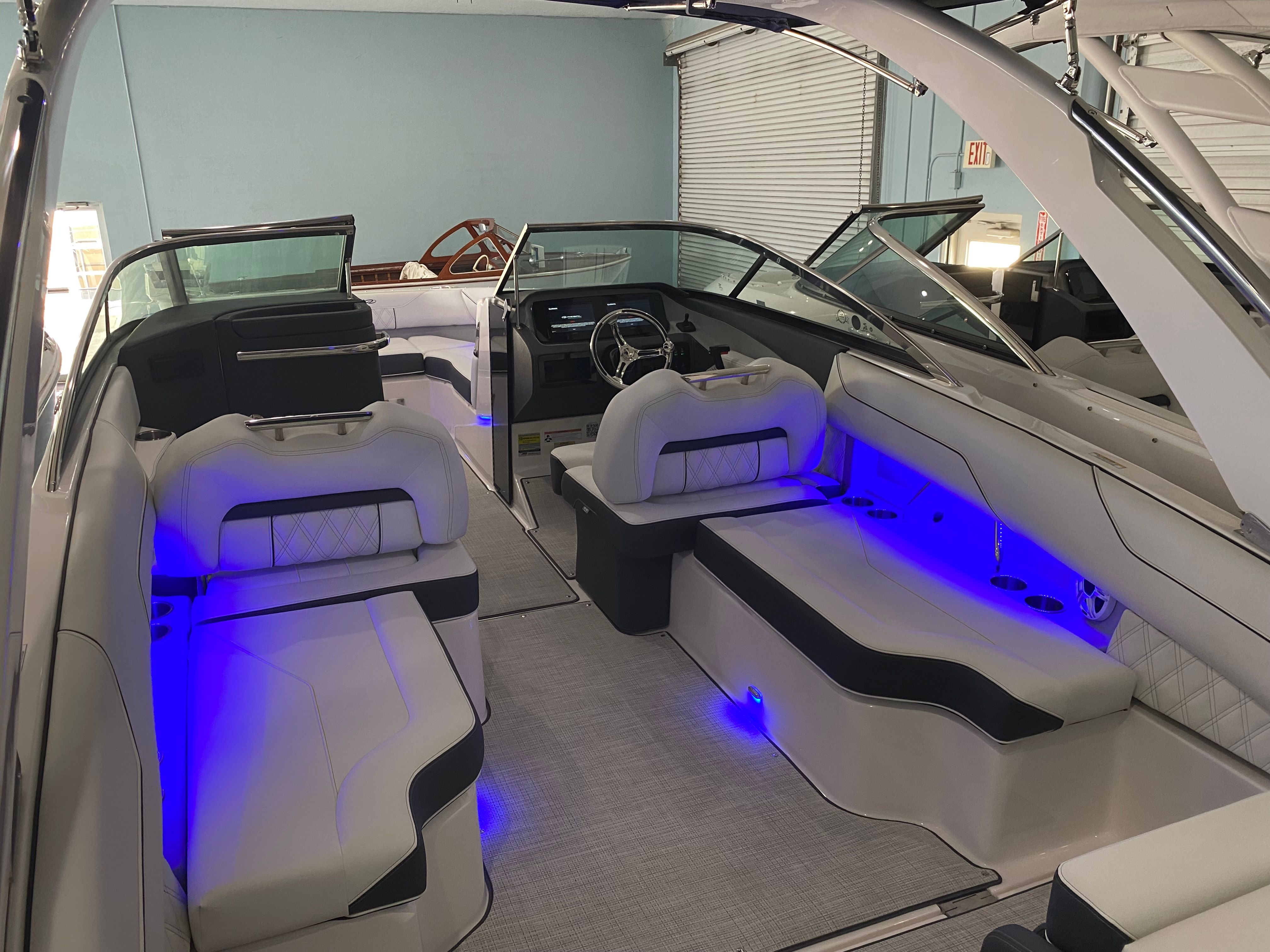 The Regal LX4 Bowrider is packed with features designed to enhance your boating experience. The boat’s Mediterranean Blue canvas adds a touch of elegance and protection, while the Bow Sunshade System—manual in operation—provides welcome relief from the midday sun, allowing you and your guests to relax in comfort. Bow and cockpit covers help keep your boat looking pristine, protecting it from the elements when not in use.Step into the cockpit and you’ll find a luxurious Seagrass Mat underfoot, offering both style and comfort. The dual battery switch with tray and cables ensures reliable power management, giving you peace of mind during extended outings. Every detail, from the color-coordinated accents to the ergonomic seating, has been carefully considered to create a welcoming and functional environment.