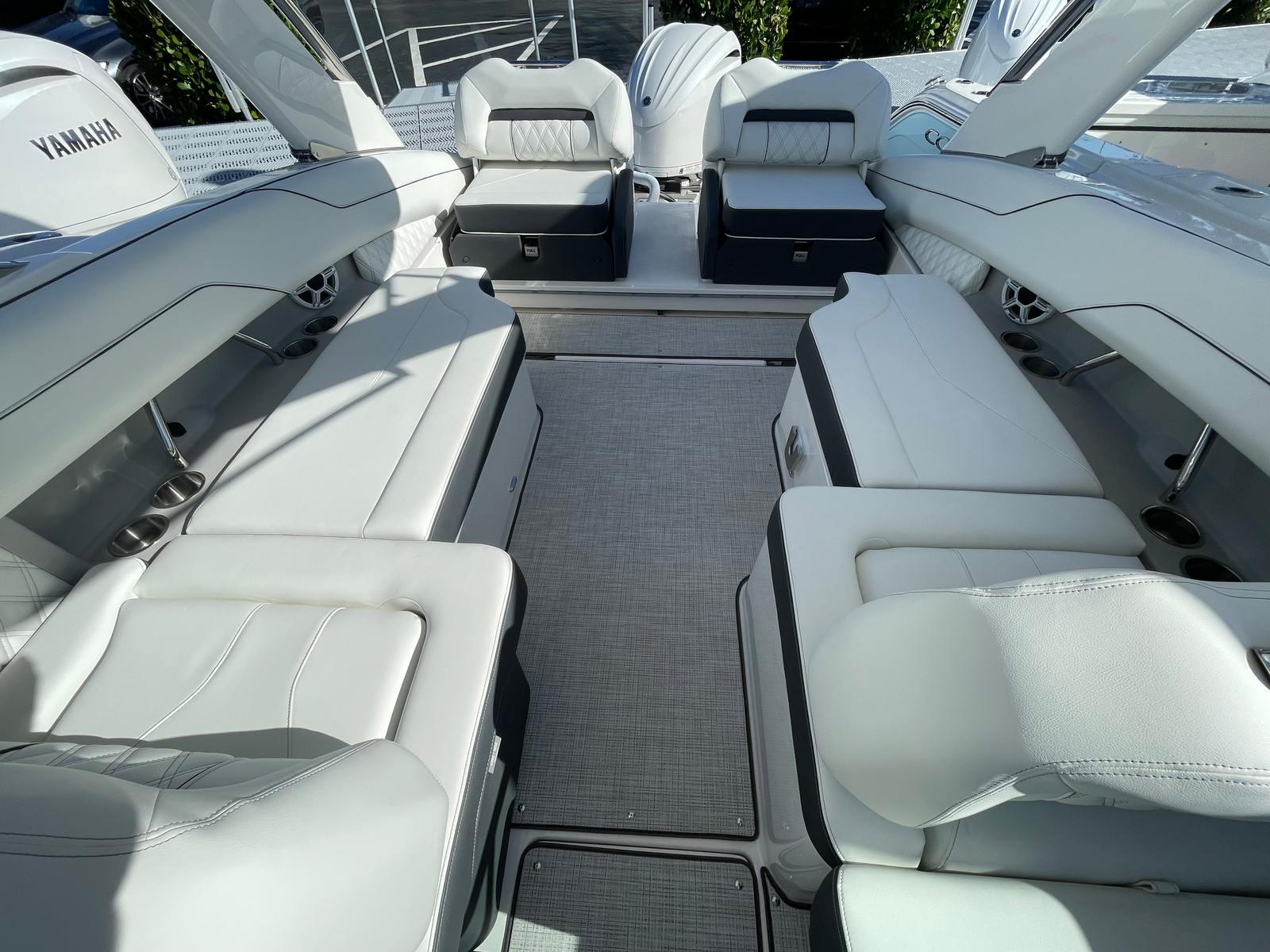 At the heart of the Regal LX4 is a powerful Yamaha V6 300HP engine, delivering exhilarating acceleration and smooth cruising. With 300 horsepower at your command, this Bowrider glides effortlessly across the water, whether you’re towing water toys, exploring new coves, or simply enjoying a leisurely cruise. The single-engine configuration ensures easy maintenance and reliable performance, while the advanced engineering of the Yamaha V6 guarantees fuel efficiency and quiet operation. Whether you’re a seasoned boater or new to the sport, the Regal LX4’s responsive handling and impressive power make every trip a thrill.