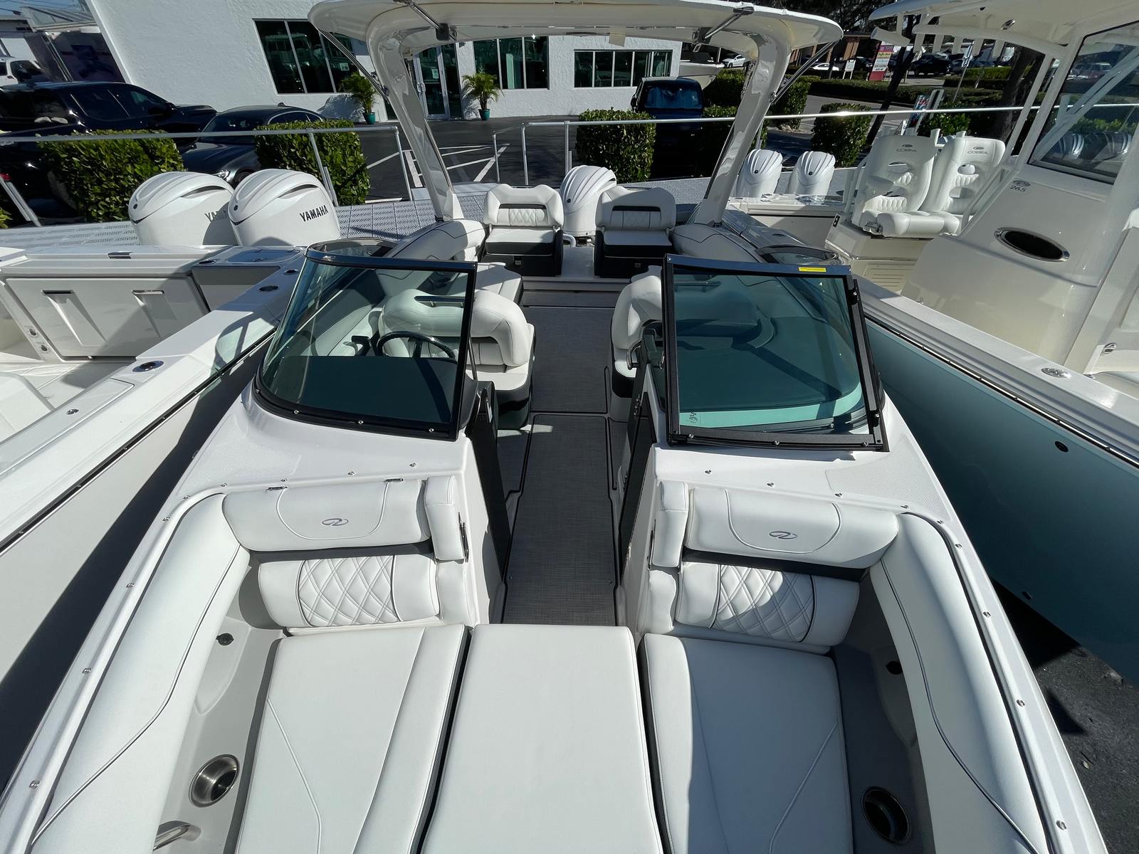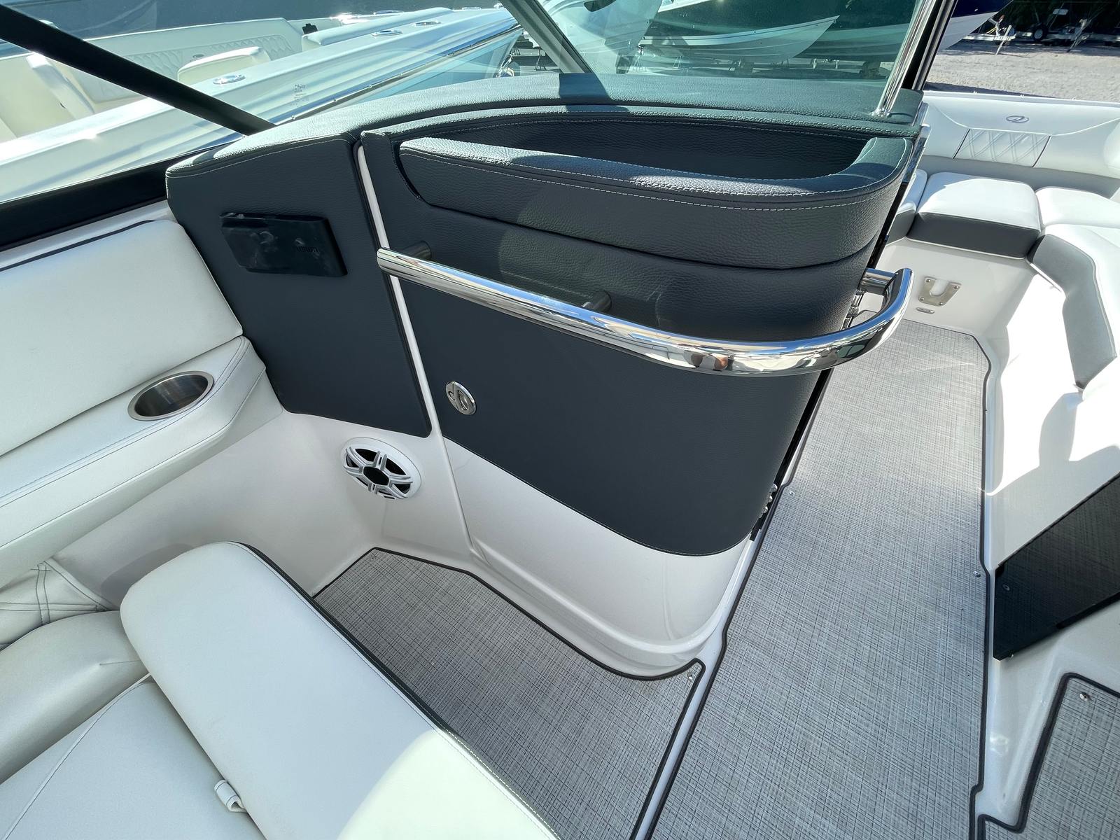 Step aboard the Regal LX4 and discover a host of premium features designed to enhance your boating experience. The Bow & Cockpit Covers provide protection from the elements, keeping your boat looking pristine and ready for action. The White Stamoid Upgrade Bimini Top offers shade and shelter, perfect for sunny days or unexpected showers. The Steel Grey canvas adds a modern touch, while the Cockpit Seagrass Mat delivers comfort and style underfoot. The dual battery switch with tray and cables ensures reliable power management, so you can enjoy longer days on the water without worry.Every detail of the Regal LX4 has been thoughtfully crafted to maximize comfort and convenience. The spacious bow area invites relaxation, while the open cockpit layout encourages socializing and fun. The Titanium interior color scheme creates a contemporary atmosphere, making every moment onboard feel special.