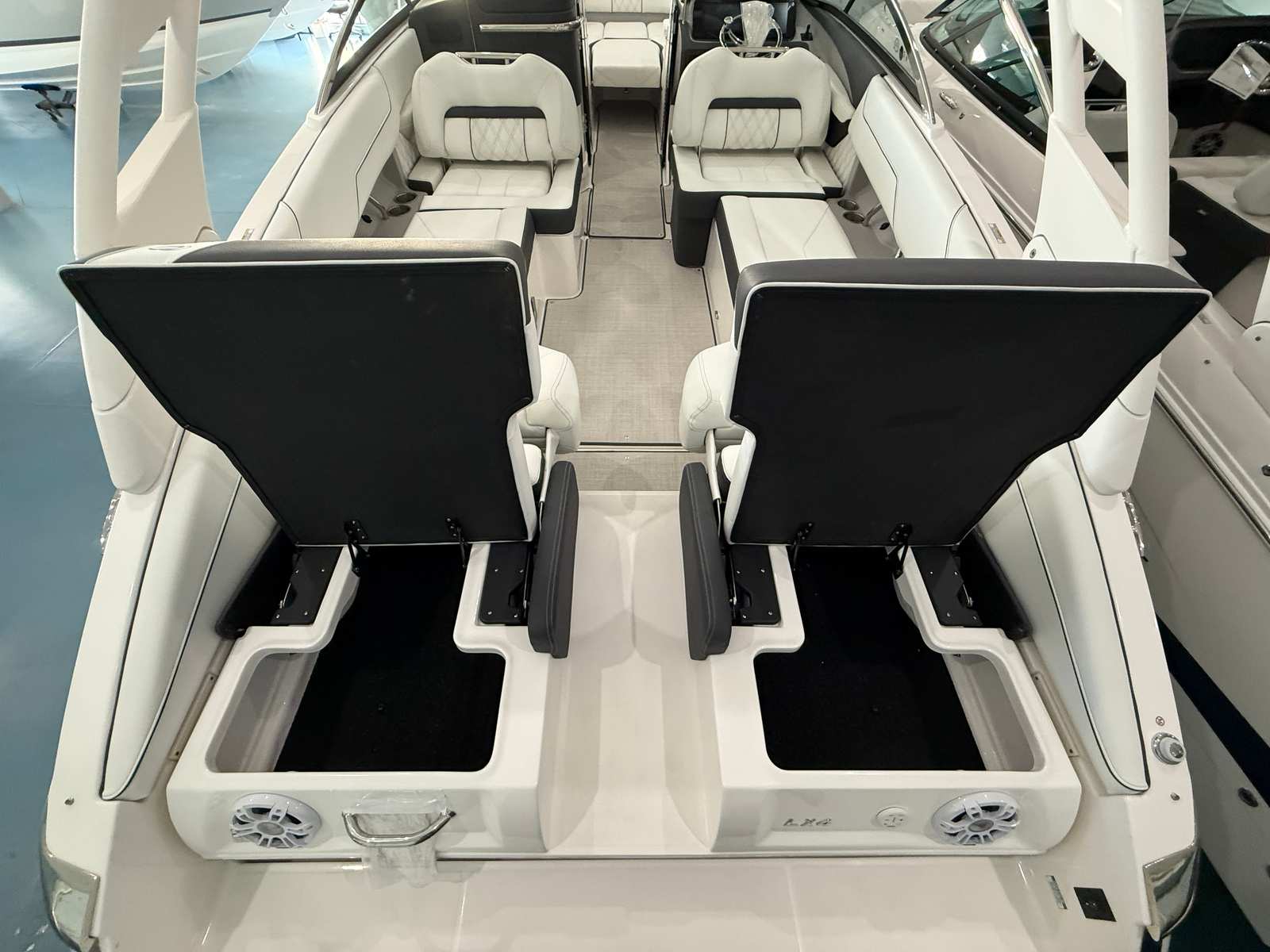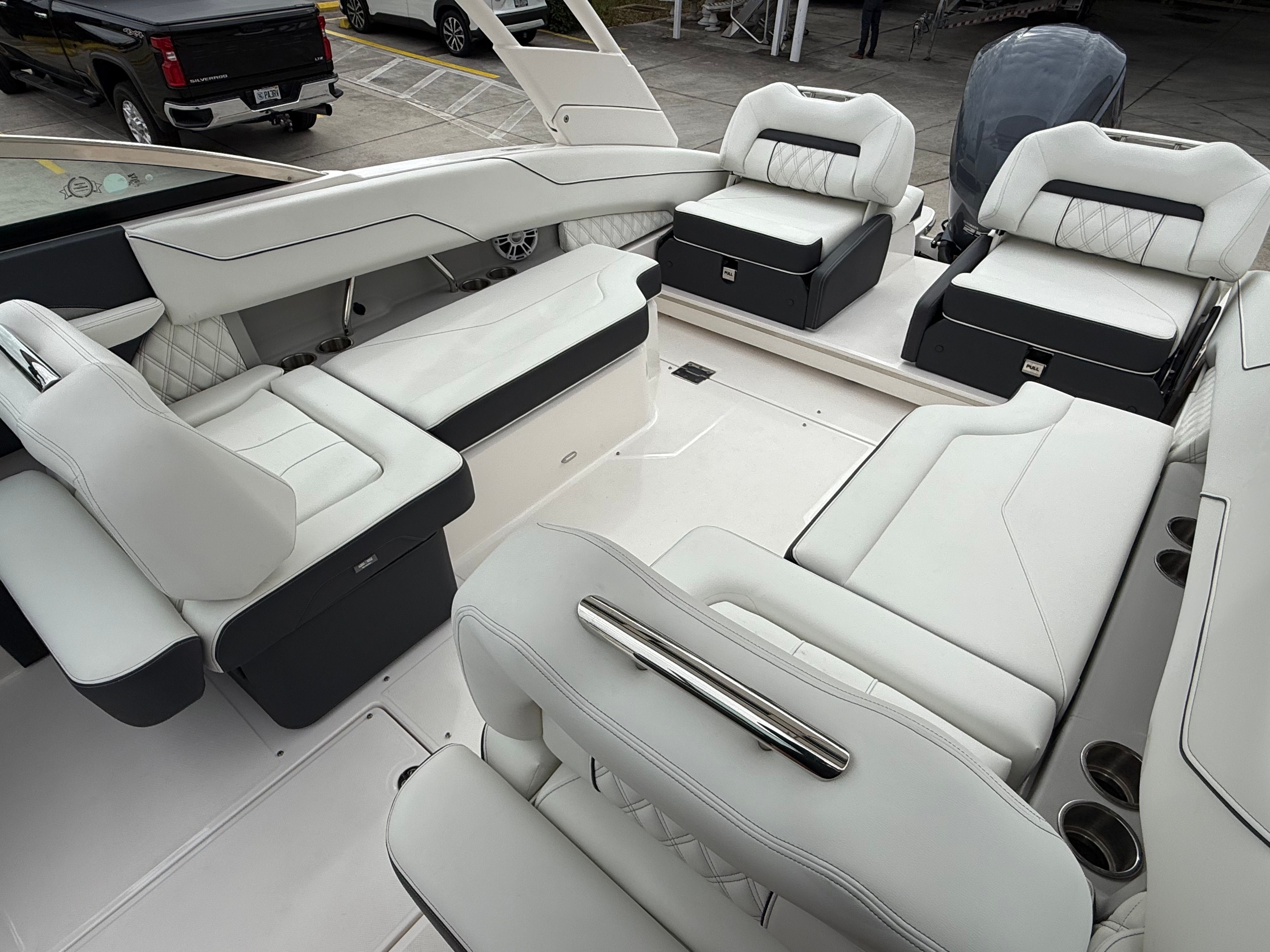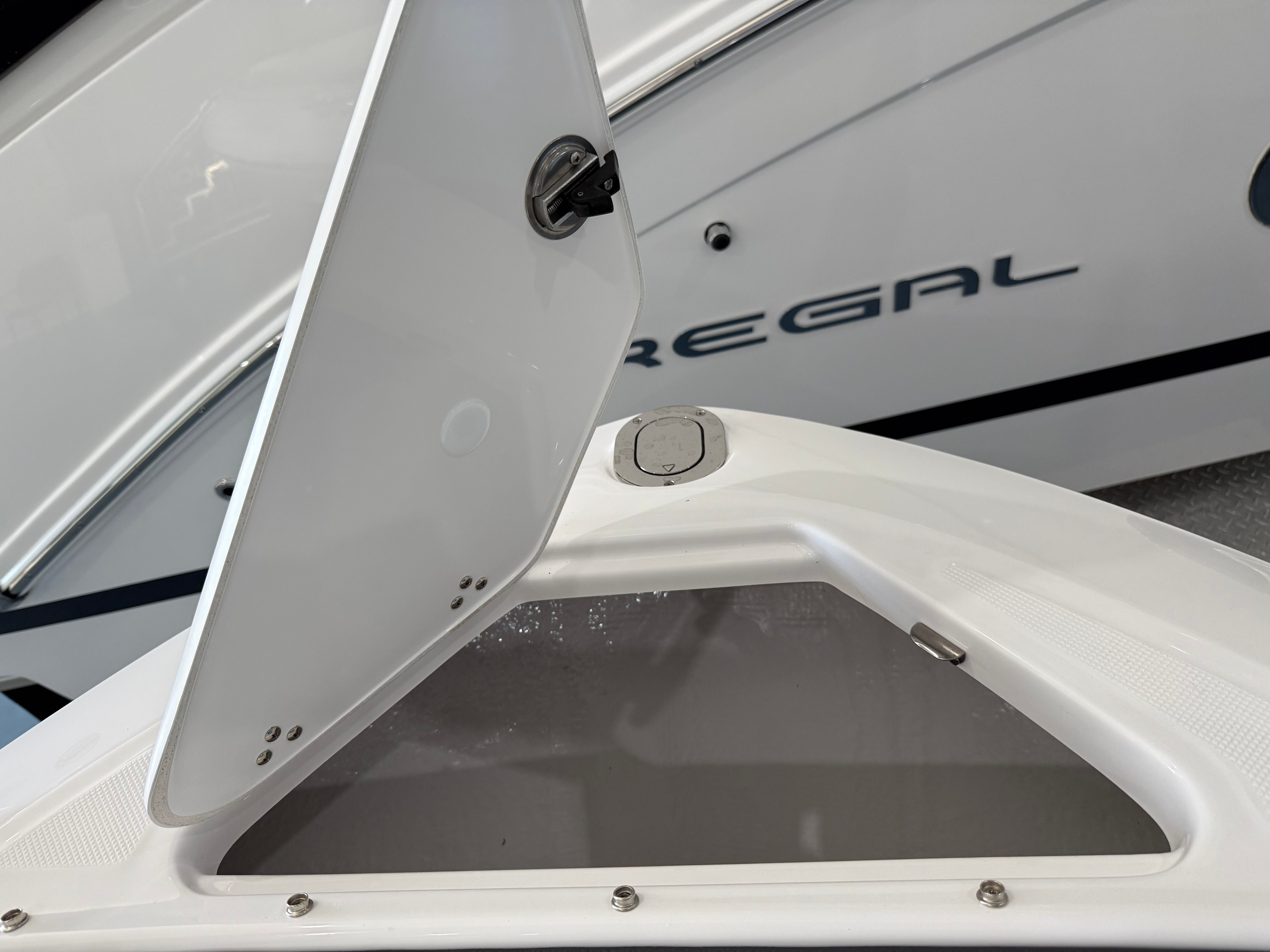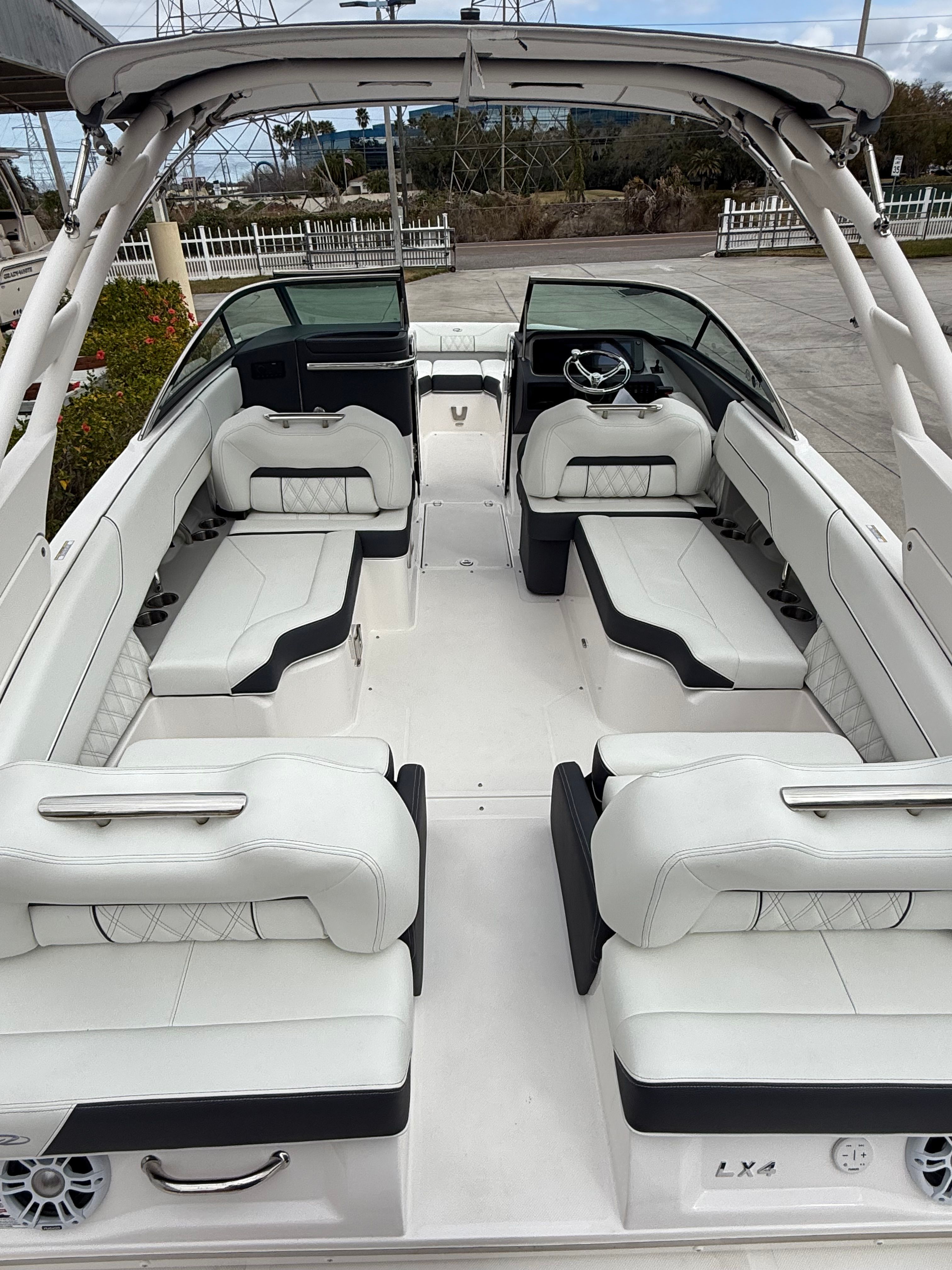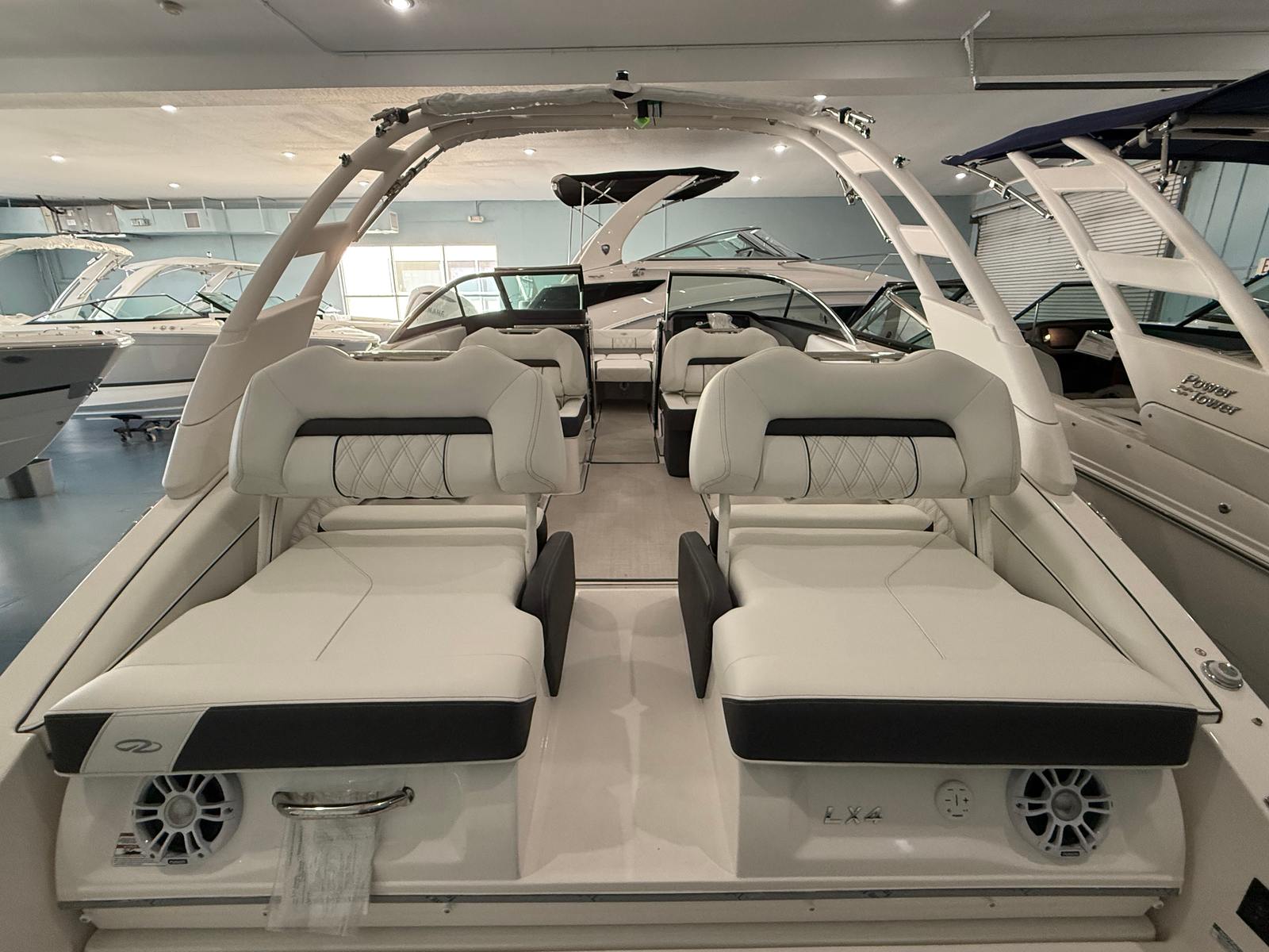 The Regal LX4 is as practical as it is stylish. The Bow Walk-Thru Doors make boarding and disembarking a breeze, while the PowerTower S2 offers convenient storage for watersports equipment. The Dual Battery Switch provides peace of mind by ensuring you always have backup power when you need it most. Docking is simplified with the integrated Docking Lights, allowing for safe and stress-free maneuvering in any lighting conditions.Fuel efficiency is enhanced by the advanced hull design, allowing you to spend more time on the water and less time at the fuel dock. The thoughtful layout includes plenty of storage compartments, making it easy to stow away life jackets, towels, and other essentials. Whether you’re planning a day trip or a weekend getaway, the LX4 is equipped to handle all your boating needs with ease.