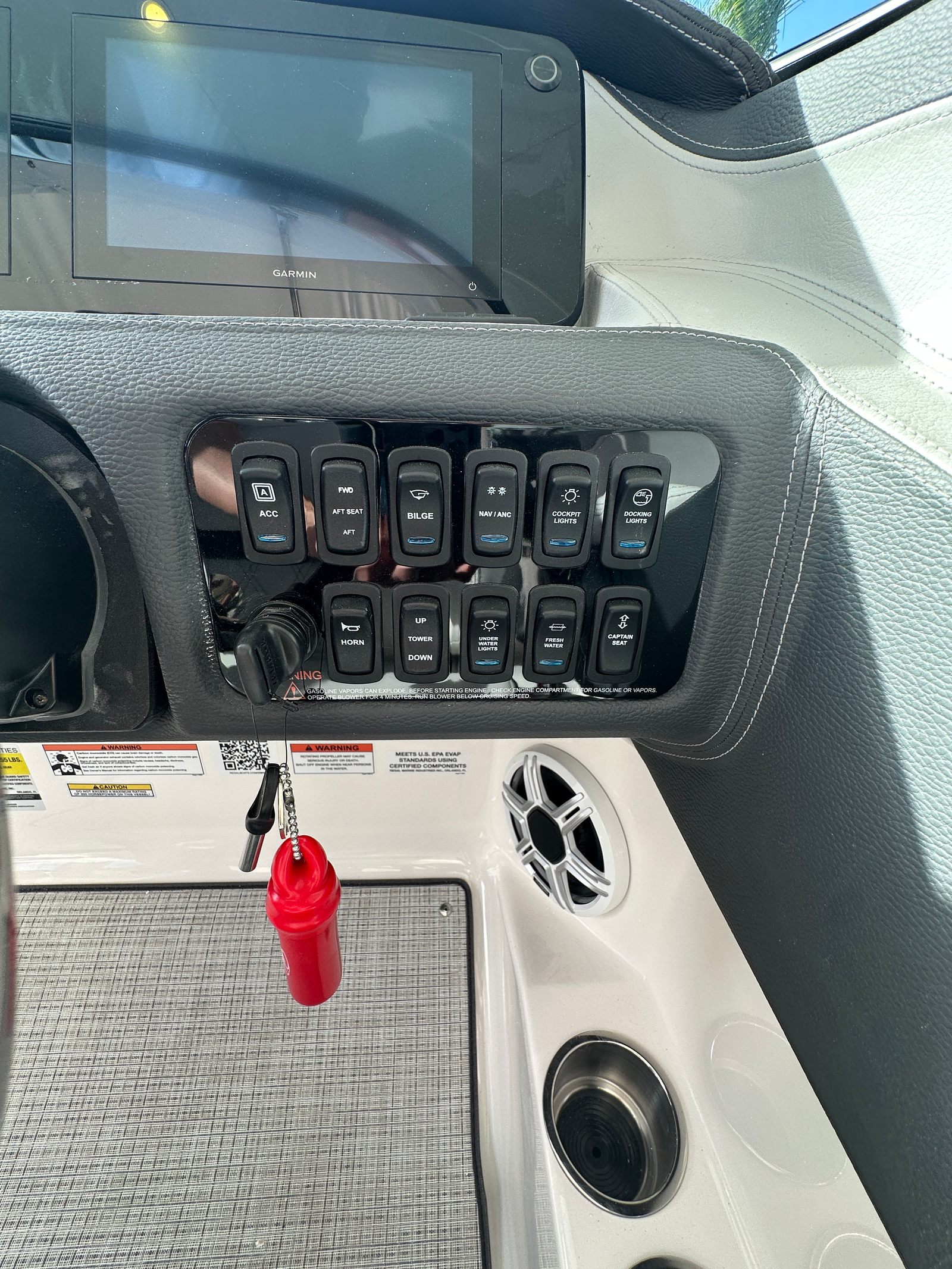The Regal LX4 Bowrider is packed with premium features designed to enhance comfort, convenience, and fun. The Bow & Cockpit Covers provide essential protection from the elements, keeping your boat in pristine condition. The White Stamoid Upgrade Bimini Top and Mediterranean Blue canvas offer stylish shade options, perfect for sunny days on the water. The Cockpit Seagrass Mat adds a layer of comfort and sophistication underfoot, while the Dual Battery Switch with tray and cables ensures reliable power management for all your onboard electronics. Every detail, from the vibrant hull colors to the thoughtfully designed interior, reflects Regal’s dedication to superior craftsmanship and user-friendly design.