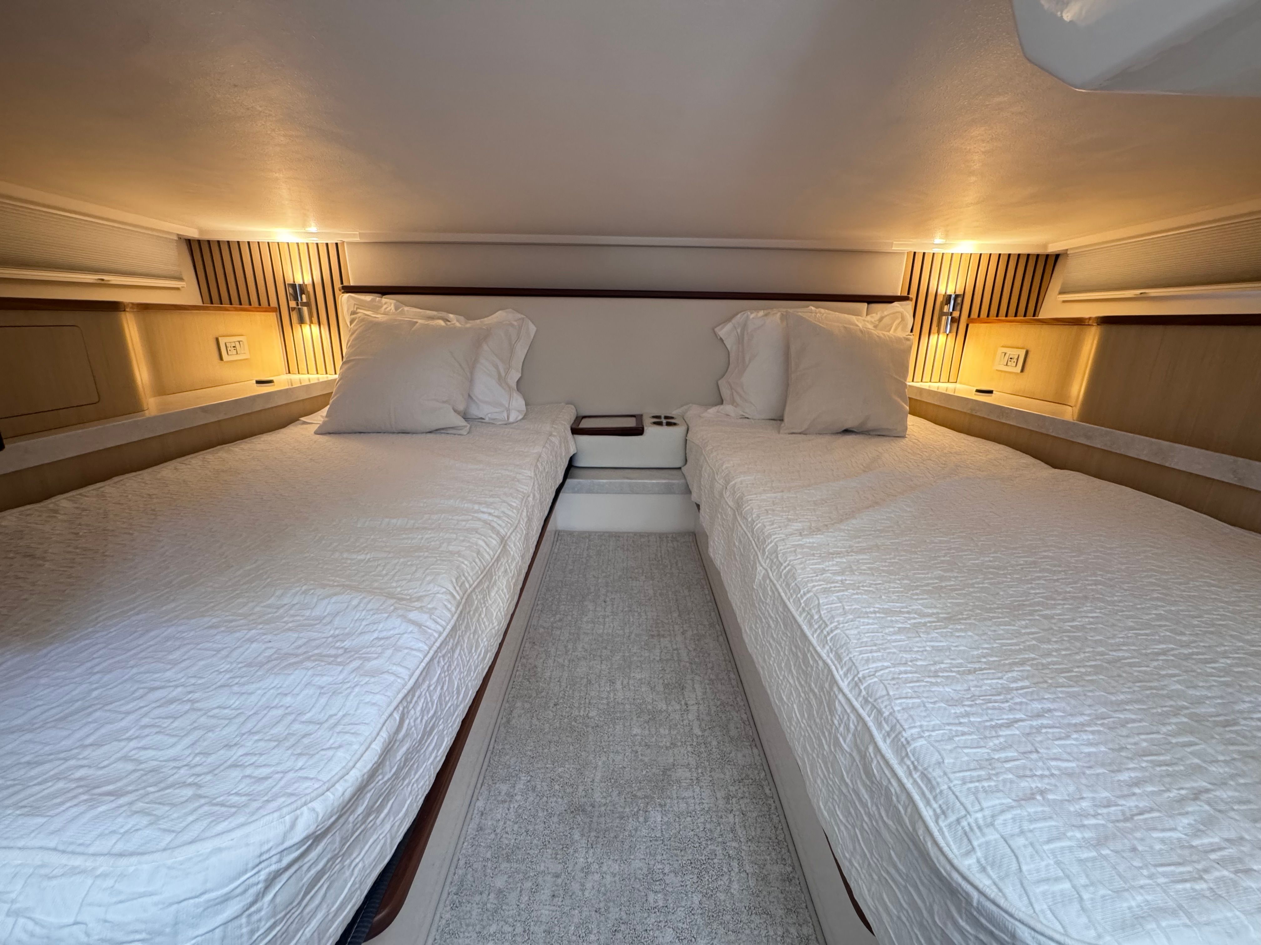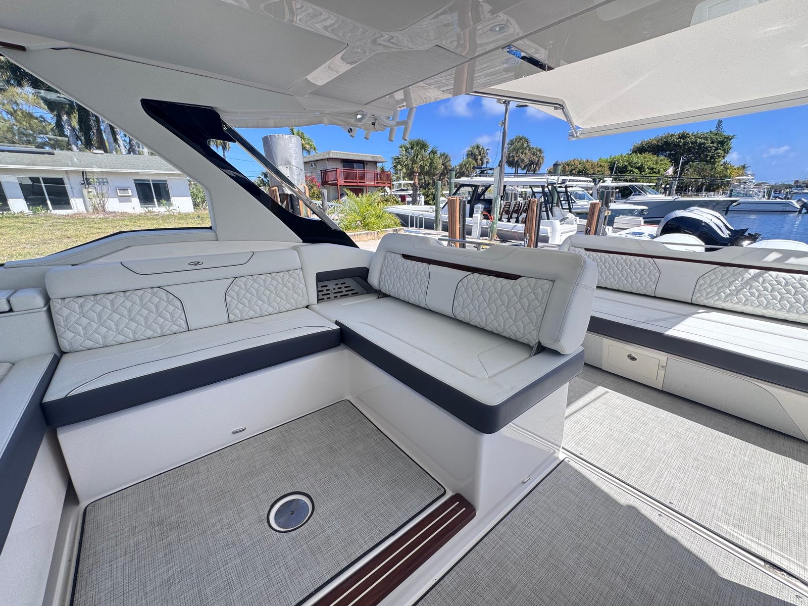 The Regal LX43 is designed with practicality in mind, making ownership as enjoyable as it is effortless. Its generous length offers ample storage for all your gear, ensuring that everything you need for a day on the water is always within reach. The yacht’s thoughtful layout makes docking and maneuvering a breeze, even in busy marinas or tight spaces. The efficient design of the twin Mercury 600 Verado engines not only delivers impressive power but also helps optimize fuel usage, allowing you to spend more time enjoying the water and less time refueling.Whether you are planning a weekend getaway, a day of water sports, or a relaxing cruise with loved ones, the LX43 adapts to your needs with ease. Its versatile design makes it the perfect companion for a wide range of activities, from entertaining guests to exploring hidden coves and scenic coastlines.