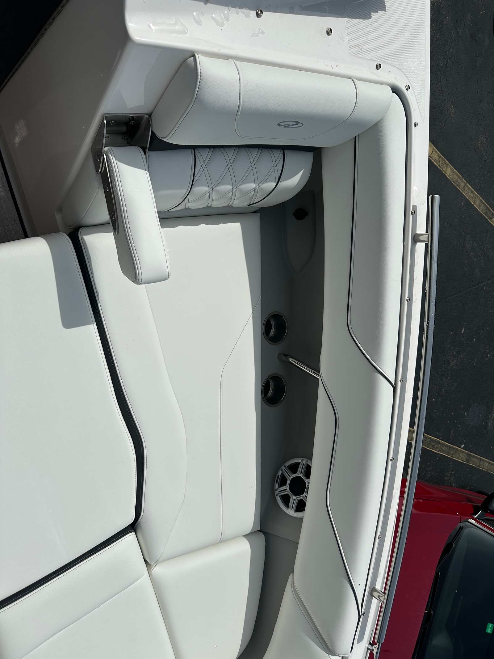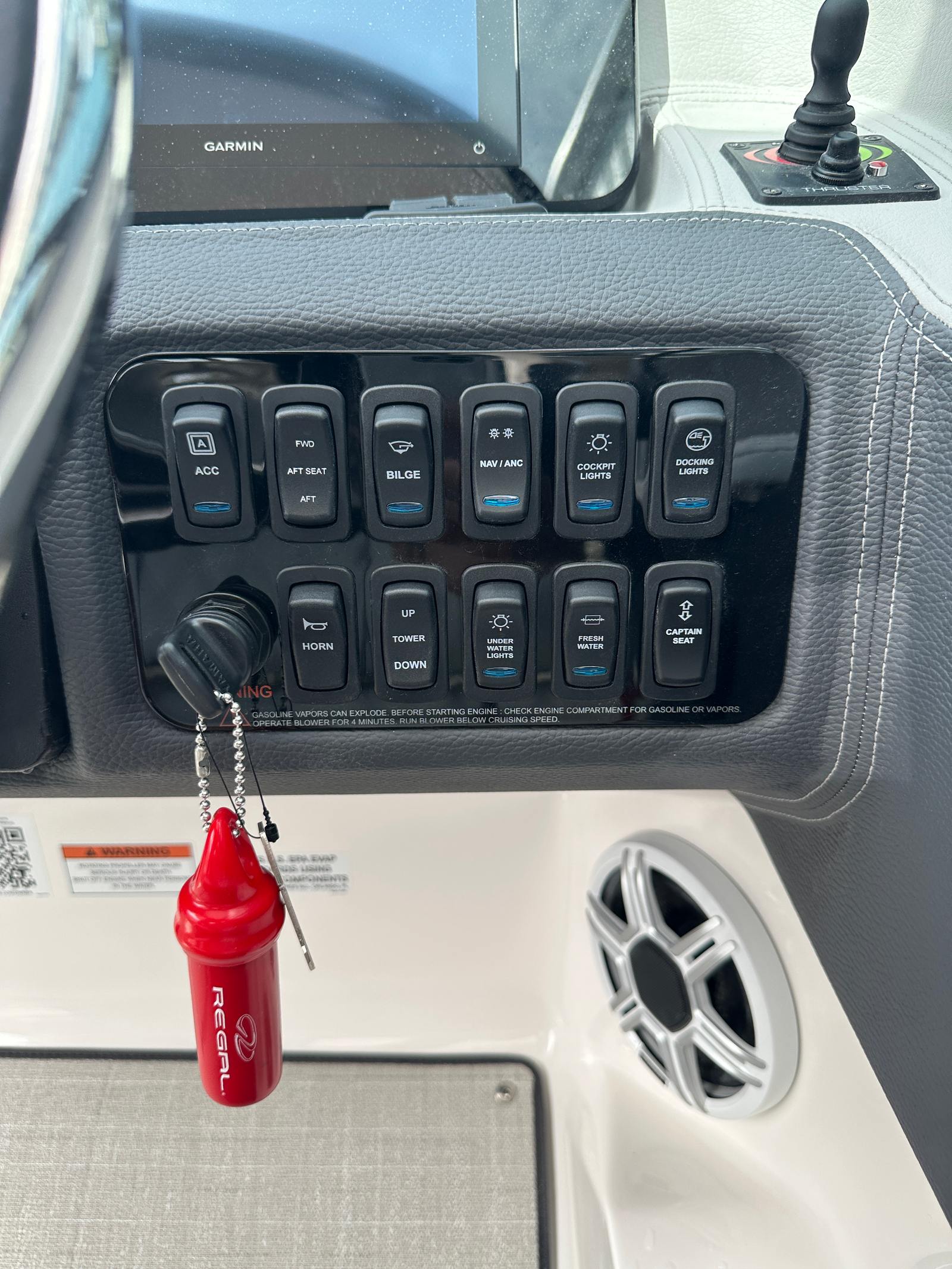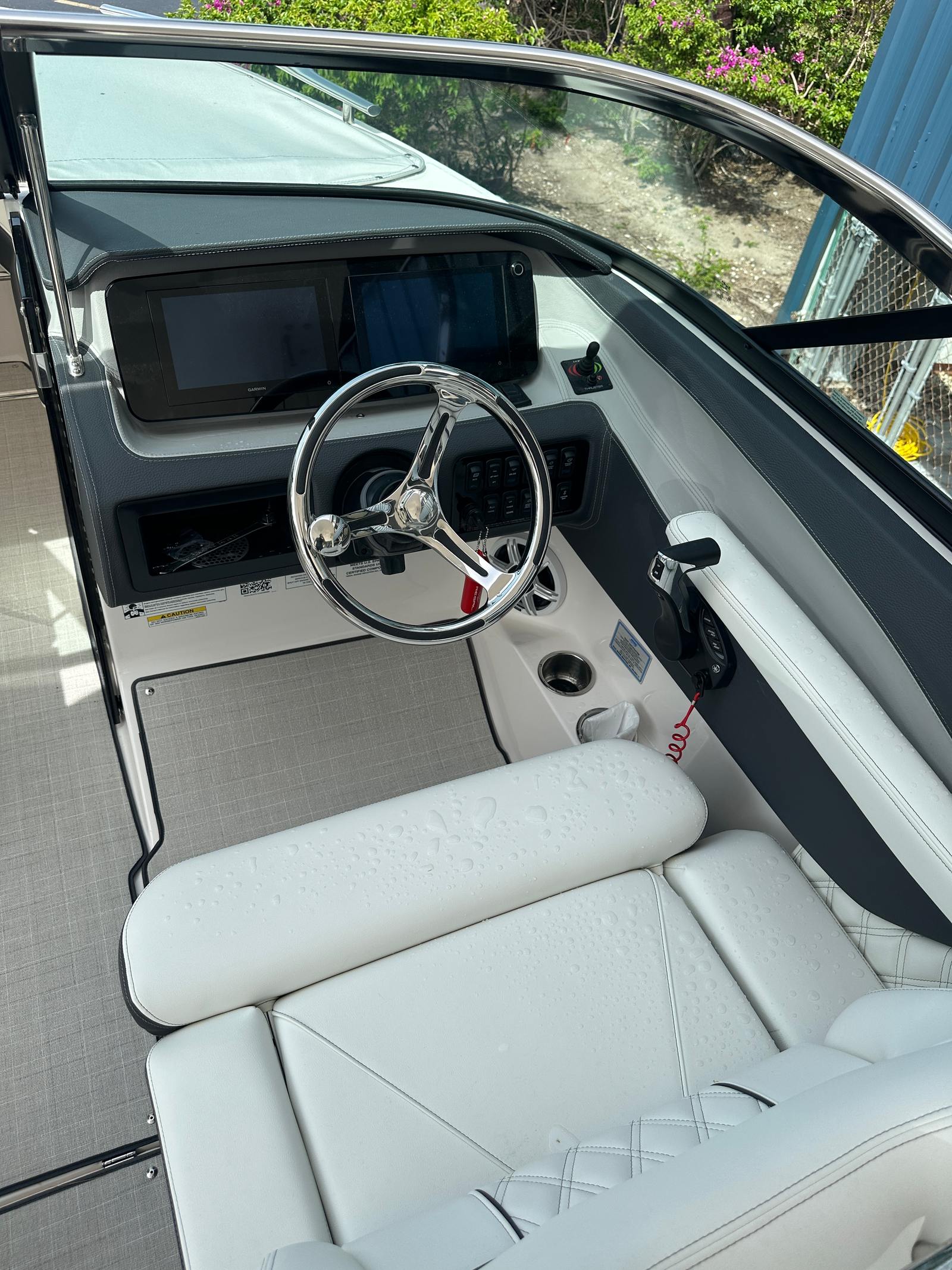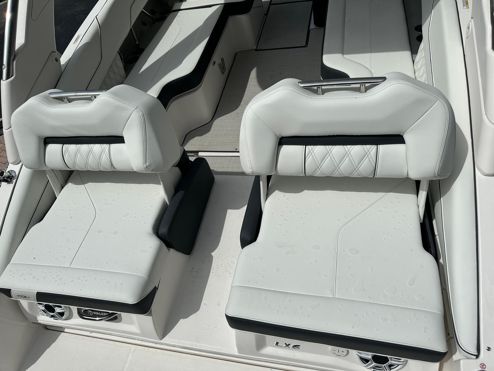 The Regal LX6 is as practical as it is stylish. Its 26.25-foot length provides ample storage for all your gear, from water toys to picnic supplies, ensuring you are always prepared for a day of fun. The bow thruster makes docking and maneuvering in tight spaces a breeze, reducing stress and making every outing more enjoyable. The dual battery switch with tray and cables offers reliable power management, so you can confidently use onboard electronics and accessories without worry.The protective bow and cockpit covers help shield your investment from the elements, preserving the boat’s appearance and extending its lifespan. The Steel Grey canvas is both durable and attractive, while the Seagrass mat in the cockpit is easy to clean and maintain. These practical features make the Regal LX6 an excellent choice for boaters who value convenience, reliability, and ease of ownership.