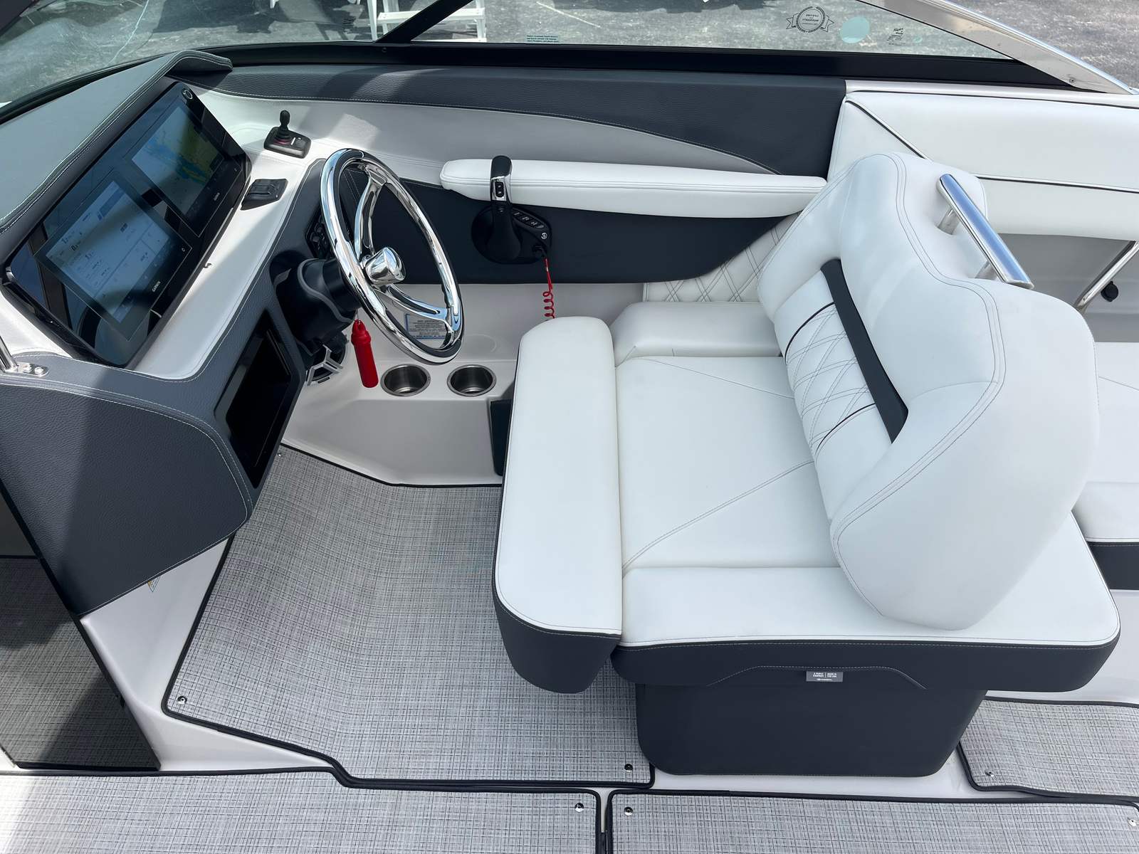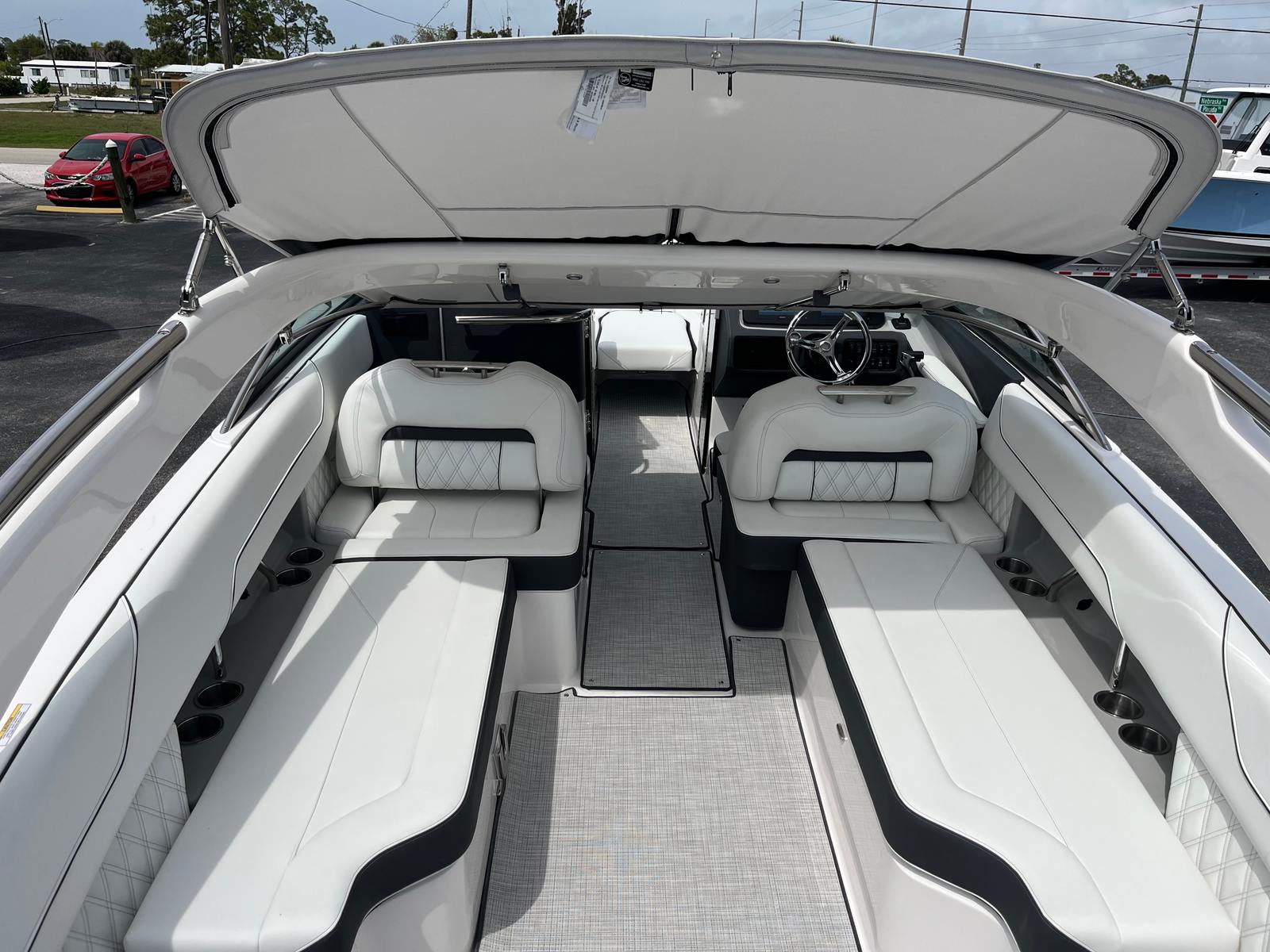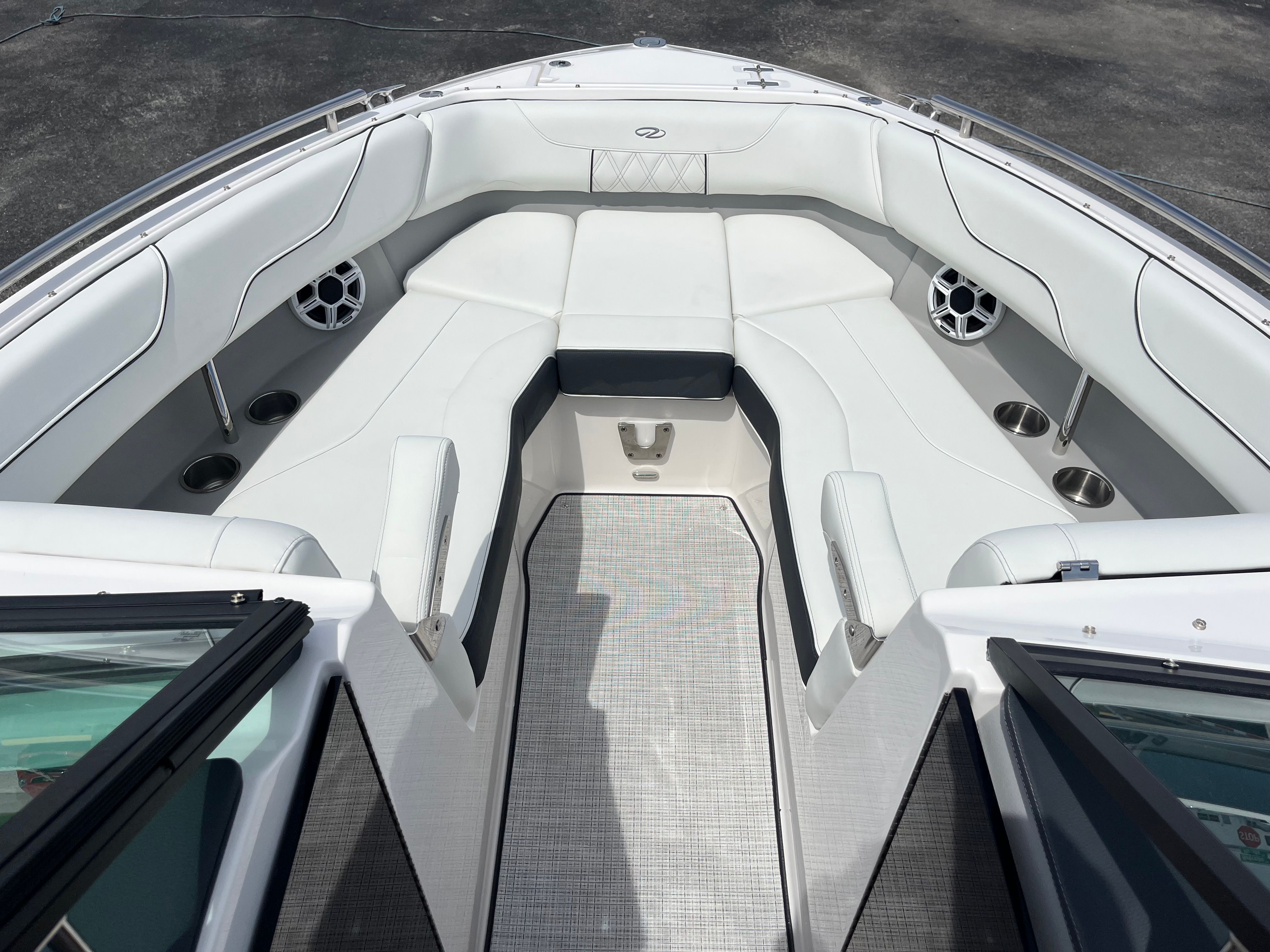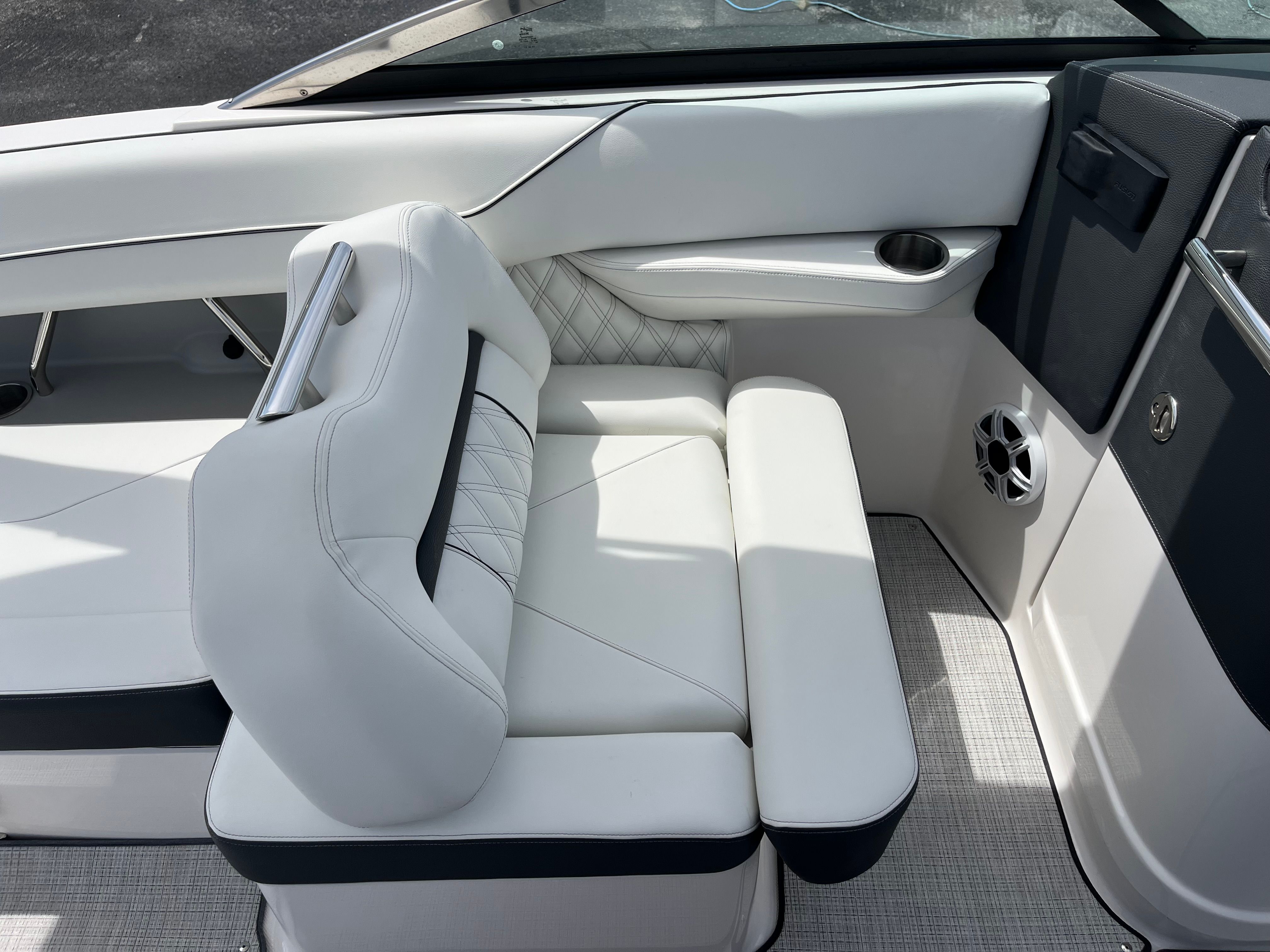 Practicality is at the core of the Regal LX6’s design. The dual battery system and charger ensure that you have dependable power for extended outings, while the bow thruster simplifies docking, even in challenging conditions. The trim tabs allow you to adjust the boat’s attitude for a smoother ride, improving fuel efficiency and comfort. The bow and cockpit covers protect your investment from sun and weather, reducing maintenance and preserving the boat’s appearance.The transom shower and pressure water package add a touch of luxury, making it easy to rinse off after swimming or clean up before heading home. The cockpit seagrass mat is not only stylish but also easy to clean, ensuring your boat stays looking its best with minimal effort. Every feature is designed to make ownership enjoyable and hassle-free, so you can spend more time on the water and less time worrying about upkeep.