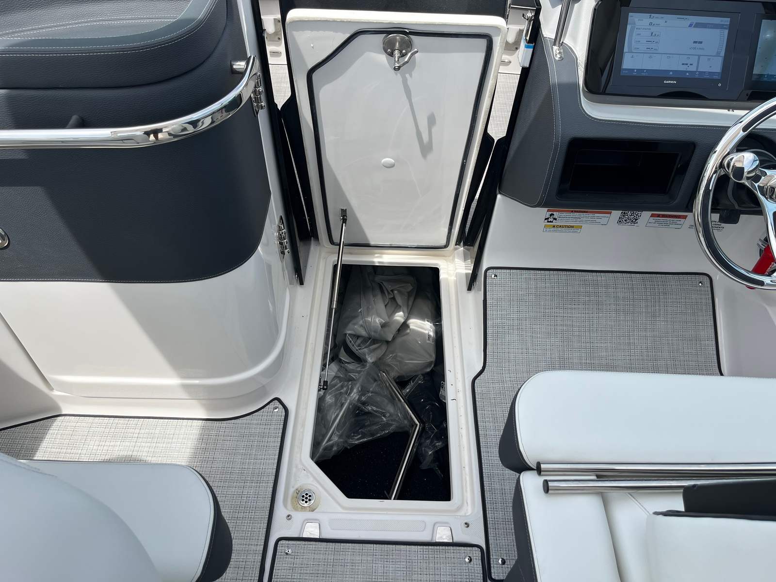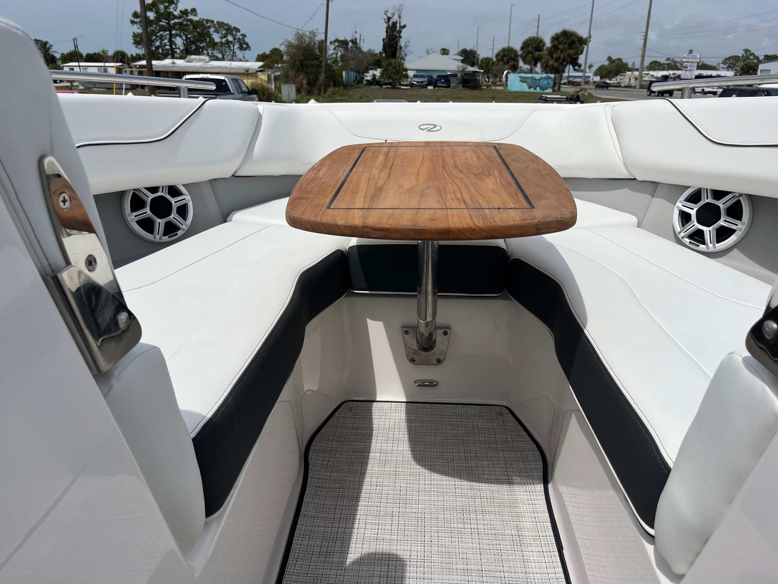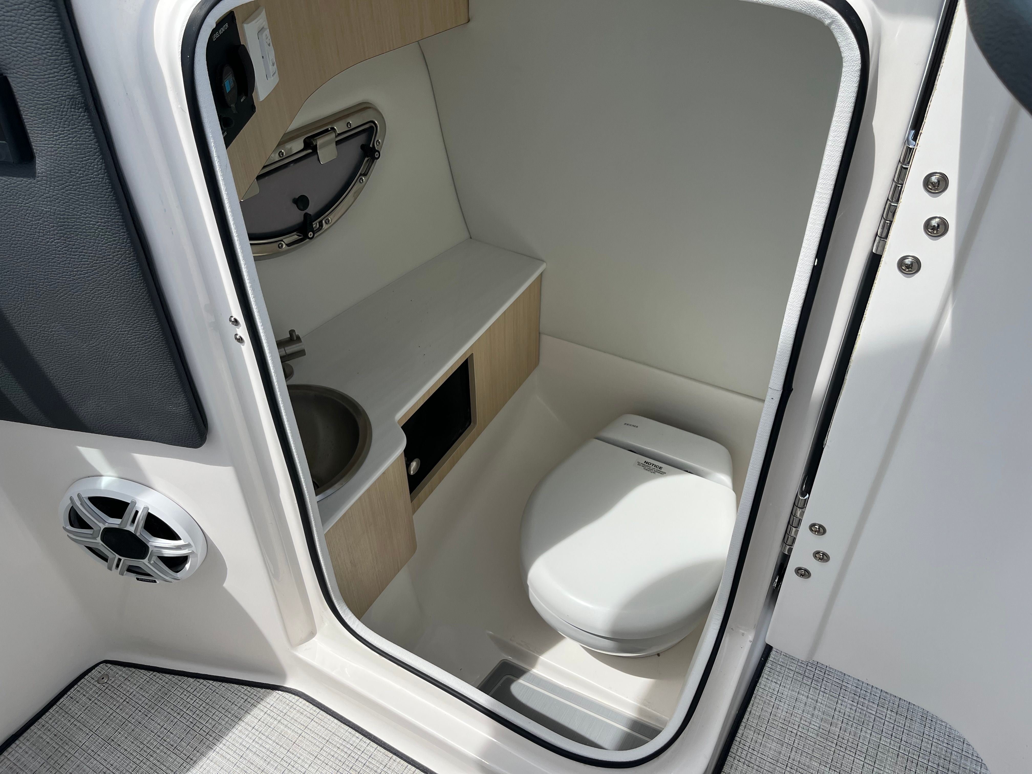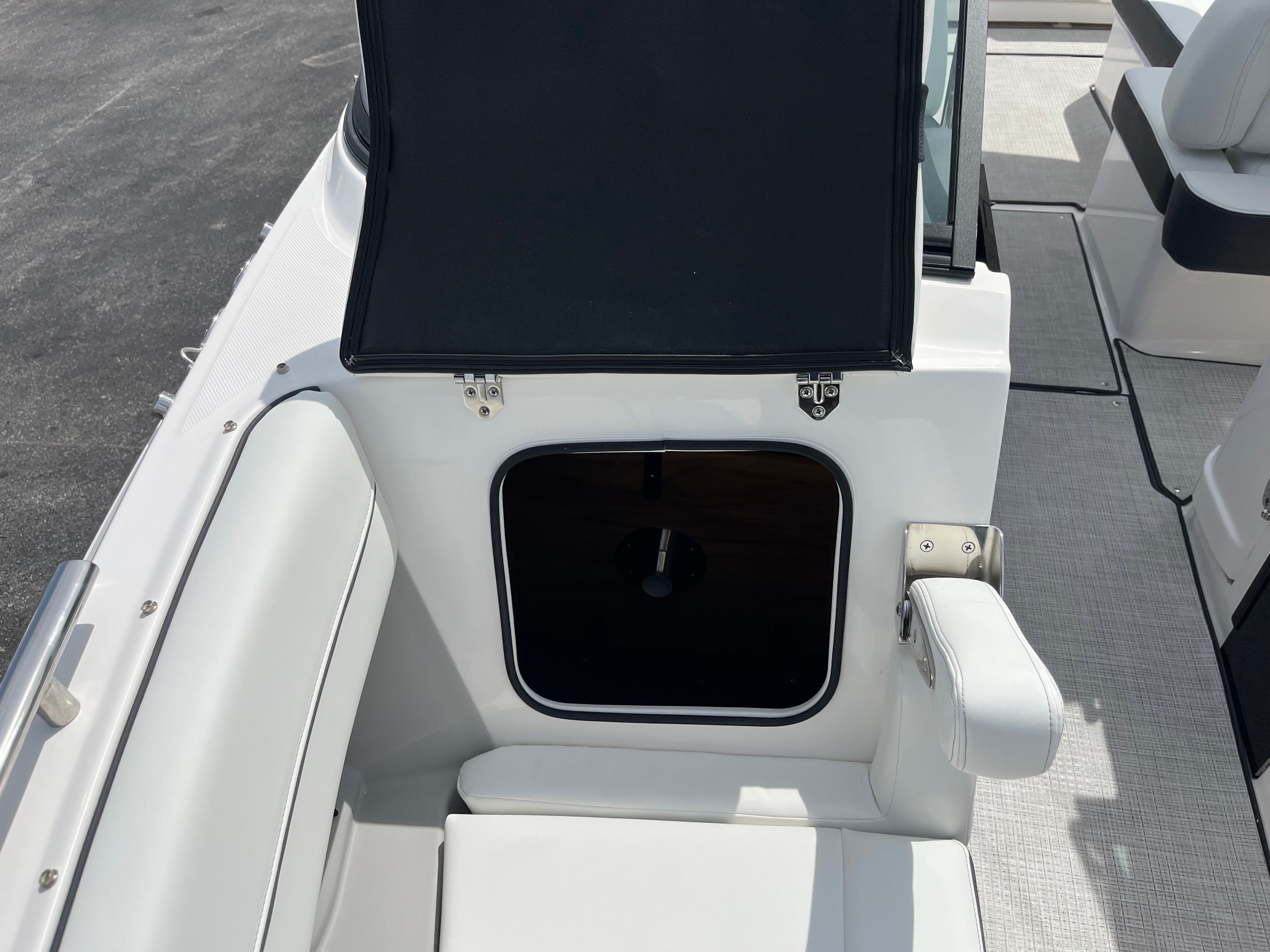 Practicality is at the core of the Regal LX6’s design. The dual battery system and charger ensure that you have dependable power for extended outings, while the bow thruster simplifies docking, even in challenging conditions. The trim tabs allow you to adjust the boat’s attitude for a smoother ride, improving fuel efficiency and comfort. The bow and cockpit covers protect your investment from sun and weather, reducing maintenance and preserving the boat’s appearance.The transom shower and pressure water package add a touch of luxury, making it easy to rinse off after swimming or clean up before heading home. The cockpit seagrass mat is not only stylish but also easy to clean, ensuring your boat stays looking its best with minimal effort. Every feature is designed to make ownership enjoyable and hassle-free, so you can spend more time on the water and less time worrying about upkeep.