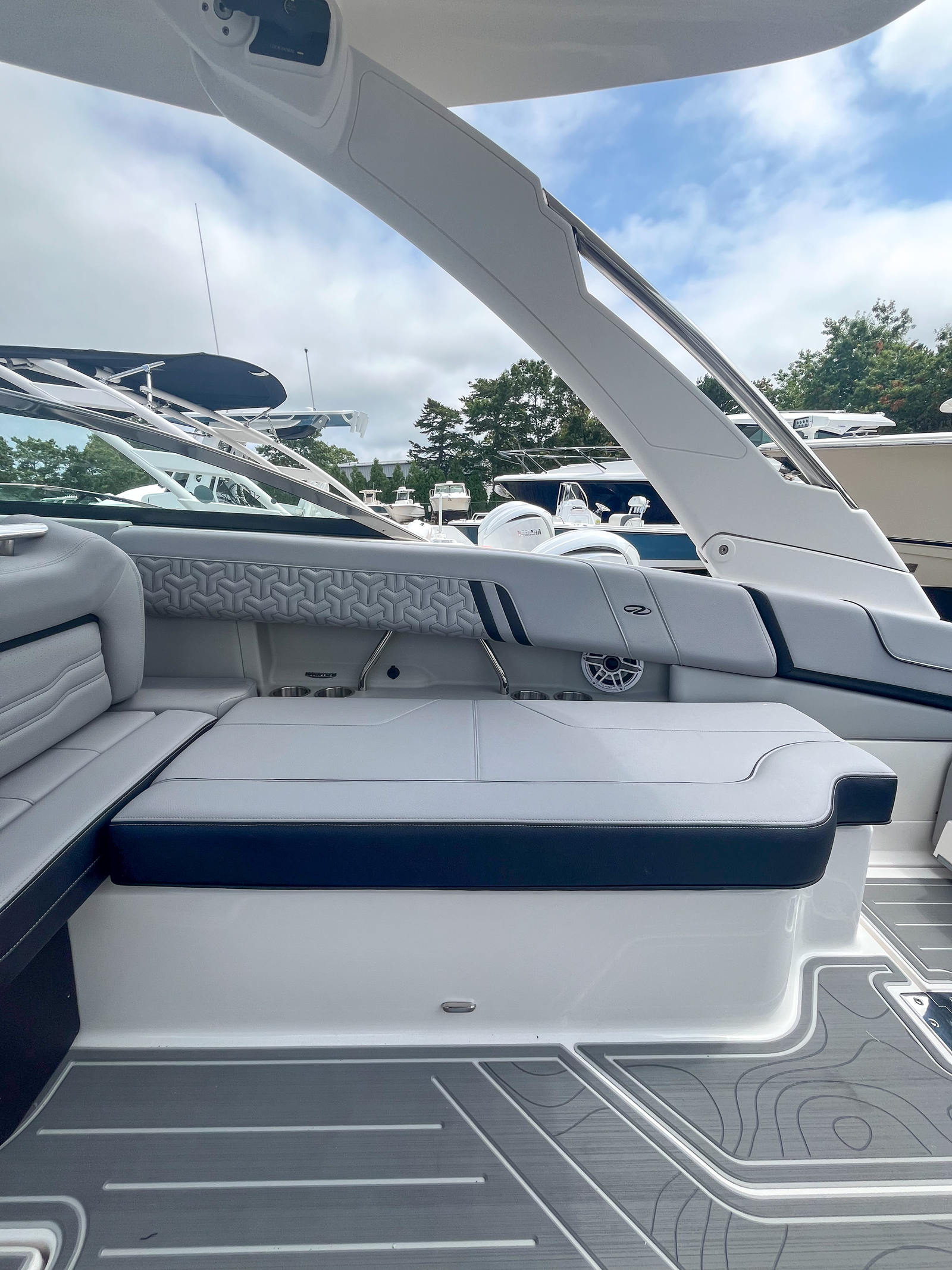 Powering the Regal LX9 are two high-performance engines, delivering a combined 500 horsepower for exhilarating speed and smooth handling. This twin-engine setup ensures rapid acceleration, agile maneuverability, and the confidence to tackle a variety of water conditions. Whether you’re cruising along the coastline, enjoying watersports, or exploring hidden coves, the LX9’s powerful propulsion system provides a thrilling ride every time. The advanced engineering behind Regal’s hull design further enhances stability and efficiency, making this Bowrider boat for sale a leader in its class.