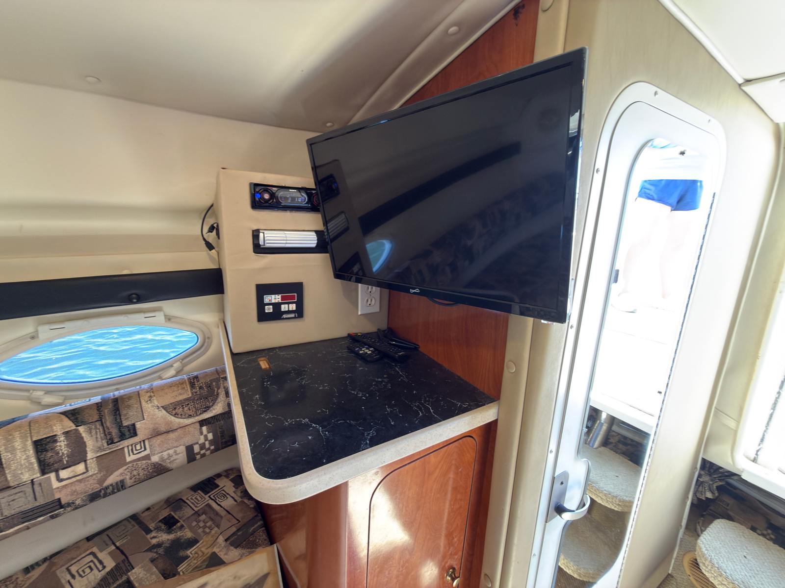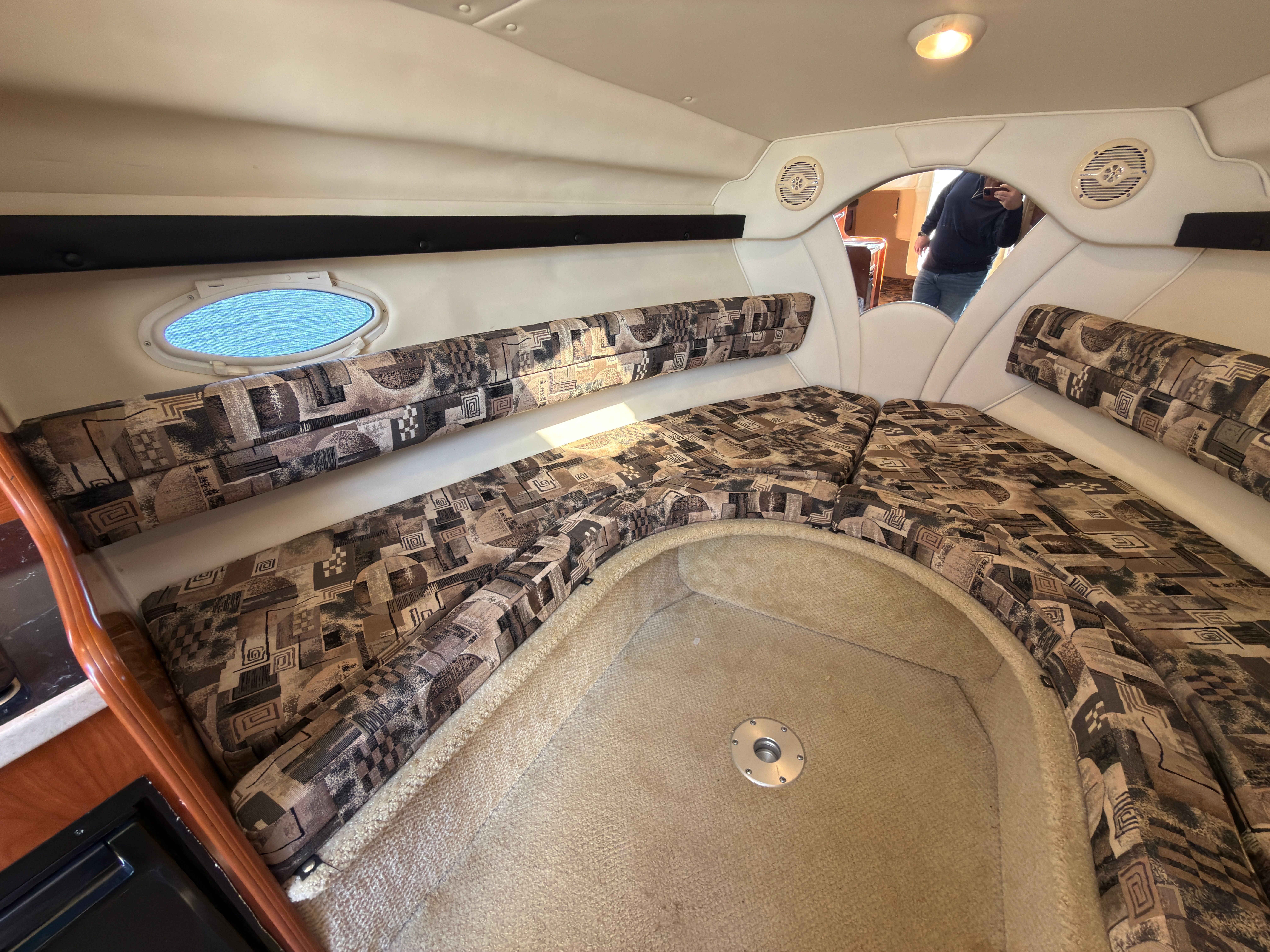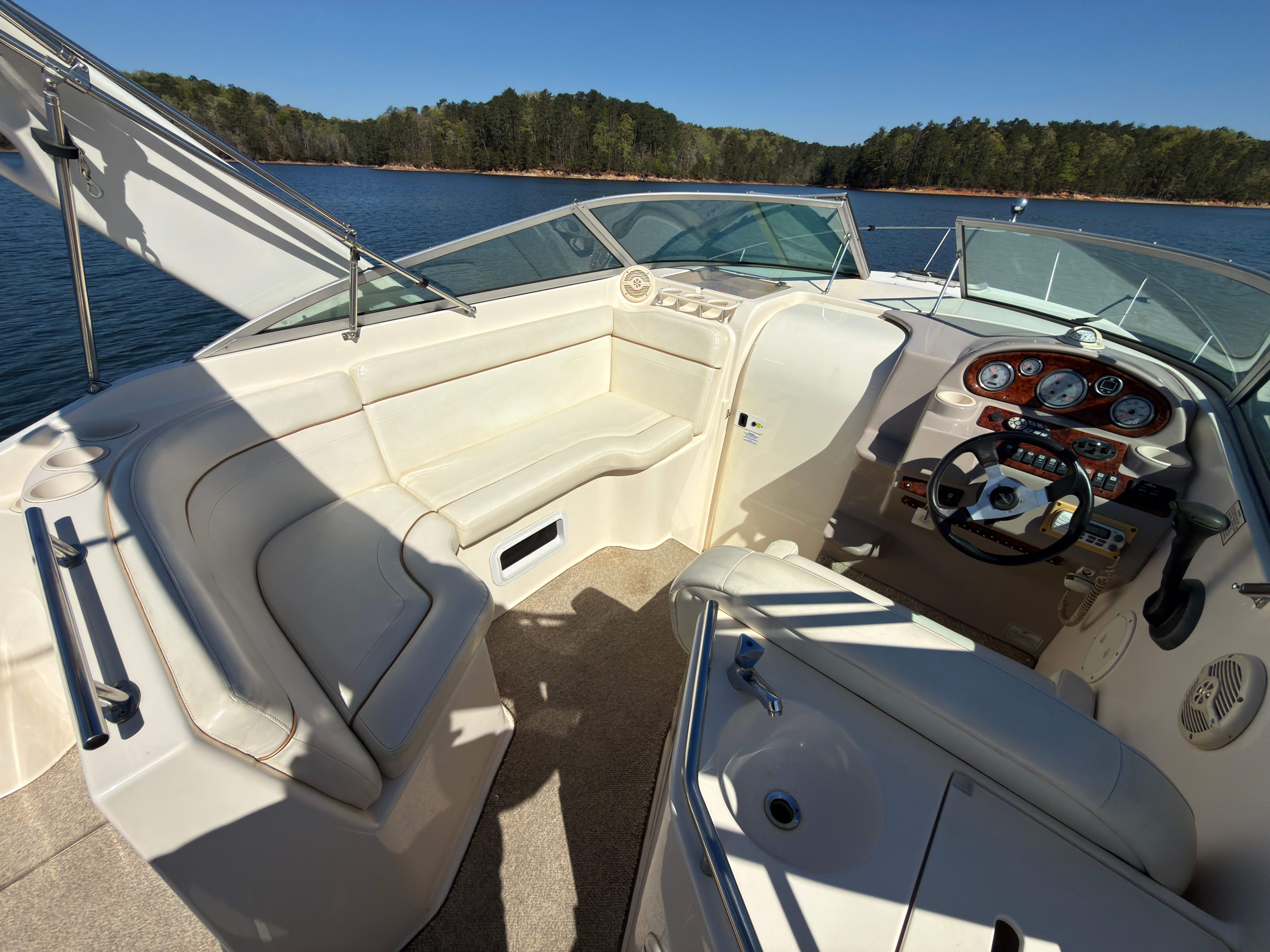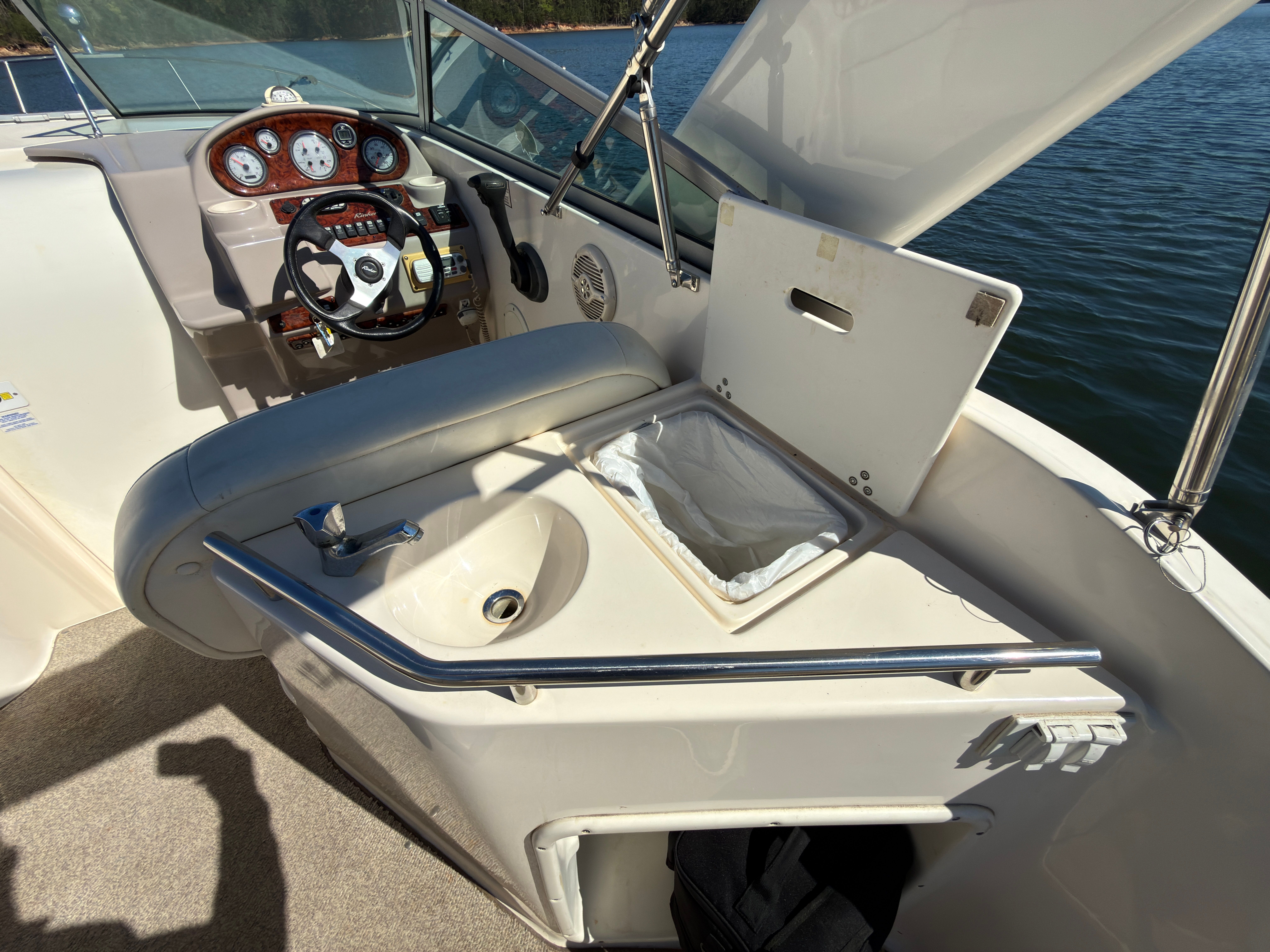The Rinker Fiesta Vee 270 is designed with practicality in mind, making ownership both enjoyable and convenient. Its manageable length of just under 28 feet makes docking and maneuvering a breeze, even for those new to boating. The efficient single-engine setup helps keep fuel costs in check, allowing you to spend more time on the water and less time at the pump. Ample storage throughout the boat ensures you can bring along all your essentials, from water sports gear to picnic supplies. The durable construction and proven reliability of this Rinker boat for sale mean you can focus on making memories instead of worrying about maintenance.