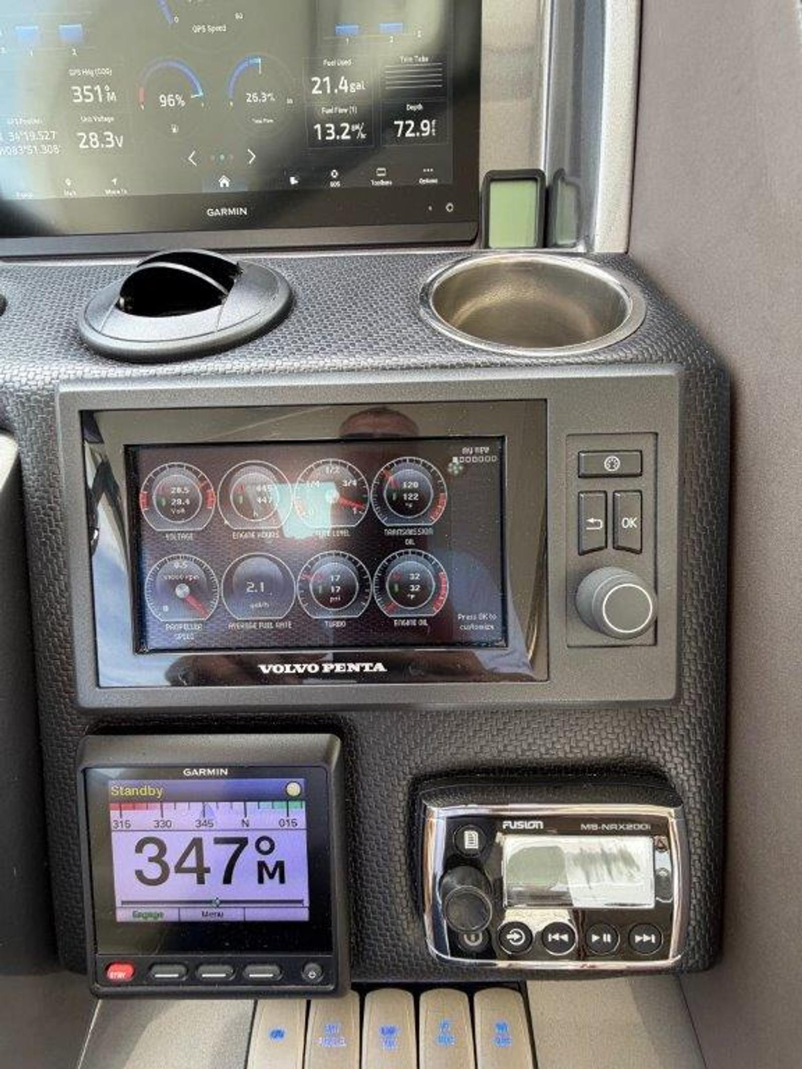▪ Twin Garmin displays, autopilot, sounder, and radar