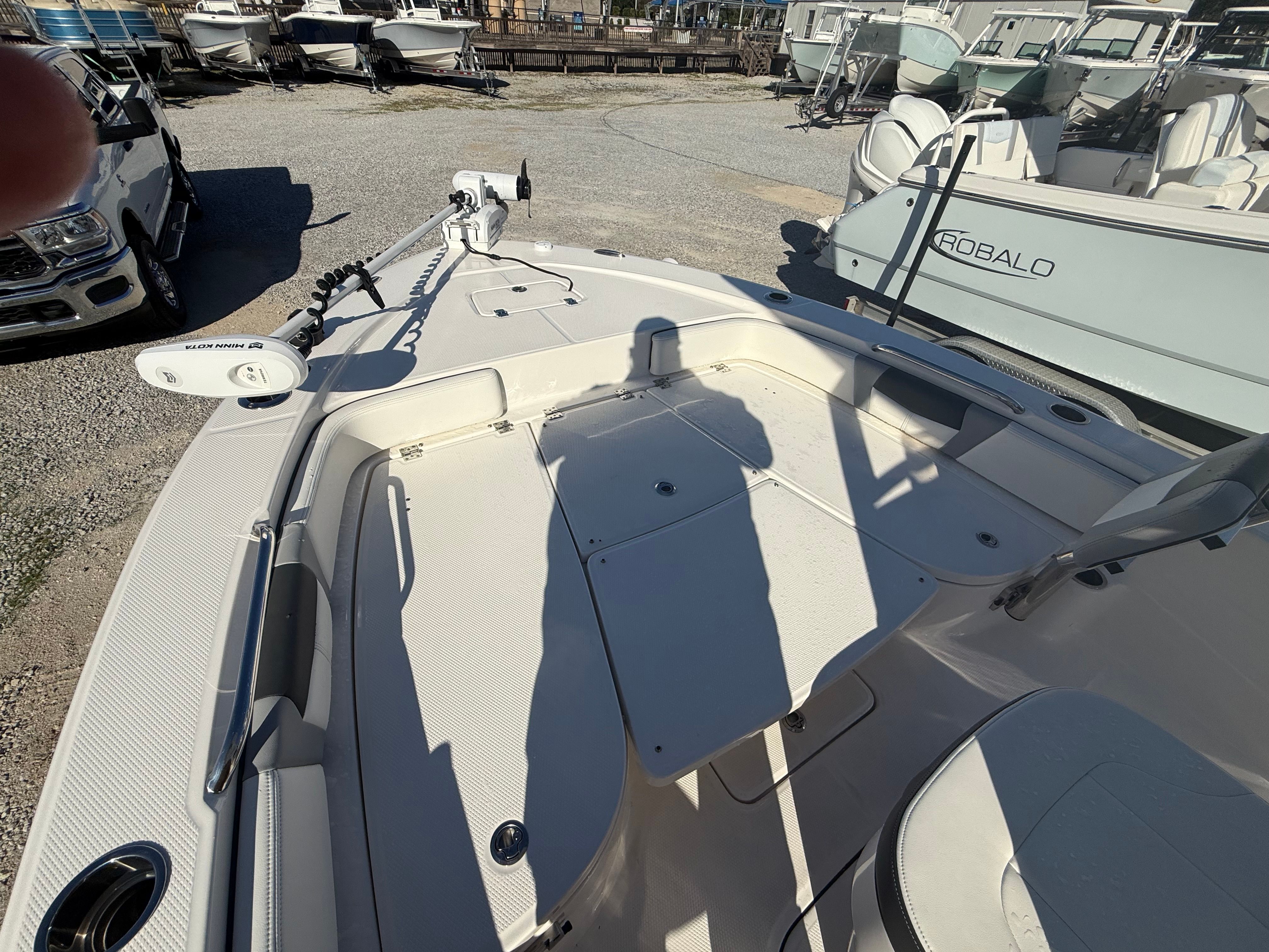 The 2024 Robalo 226 Cayman is thoughtfully designed with features that enhance both functionality and comfort. Its 22.5-foot length provides ample space for passengers and gear, making it ideal for group outings or solo excursions. The hull design is optimized for stability and smooth handling, ensuring a comfortable ride even when conditions are less than ideal.Special features of the Robalo 226 Cayman include a spacious deck layout that allows for easy movement and casting, as well as ample storage compartments to keep your gear organized and secure. The boat’s ergonomic helm station is designed for intuitive control, giving you confidence at the wheel. The seating arrangements are crafted for comfort, allowing you and your guests to relax and enjoy the journey.