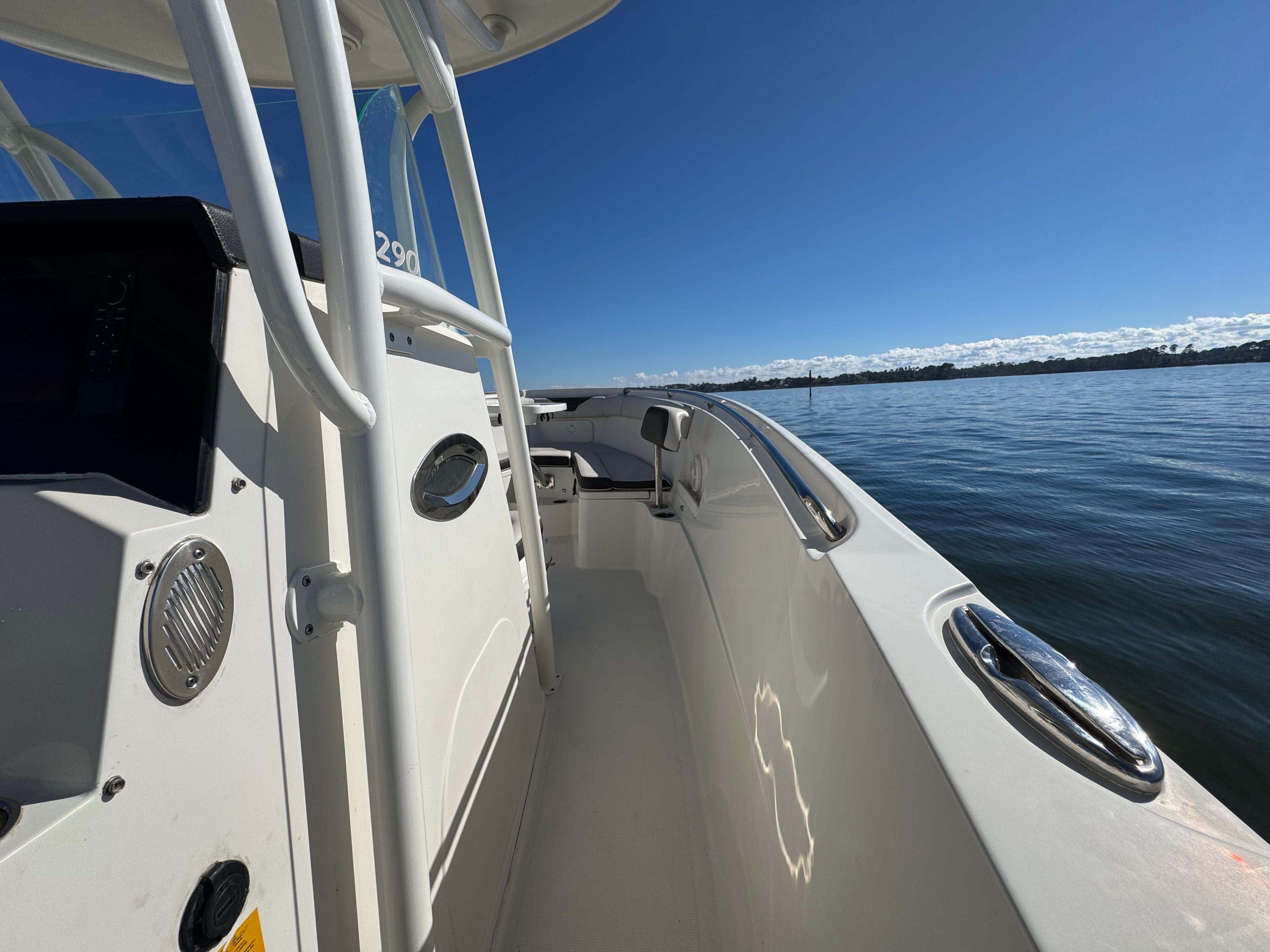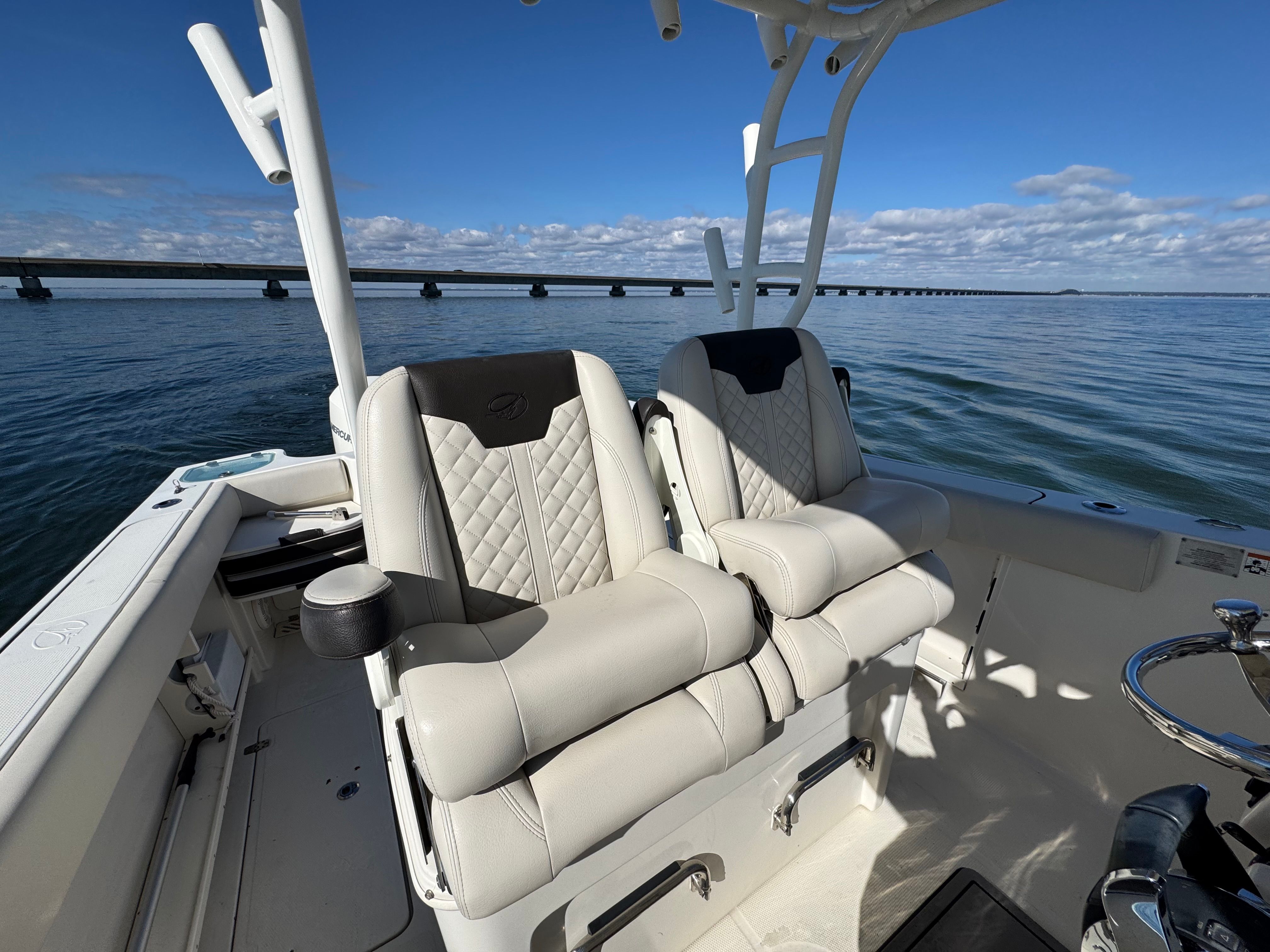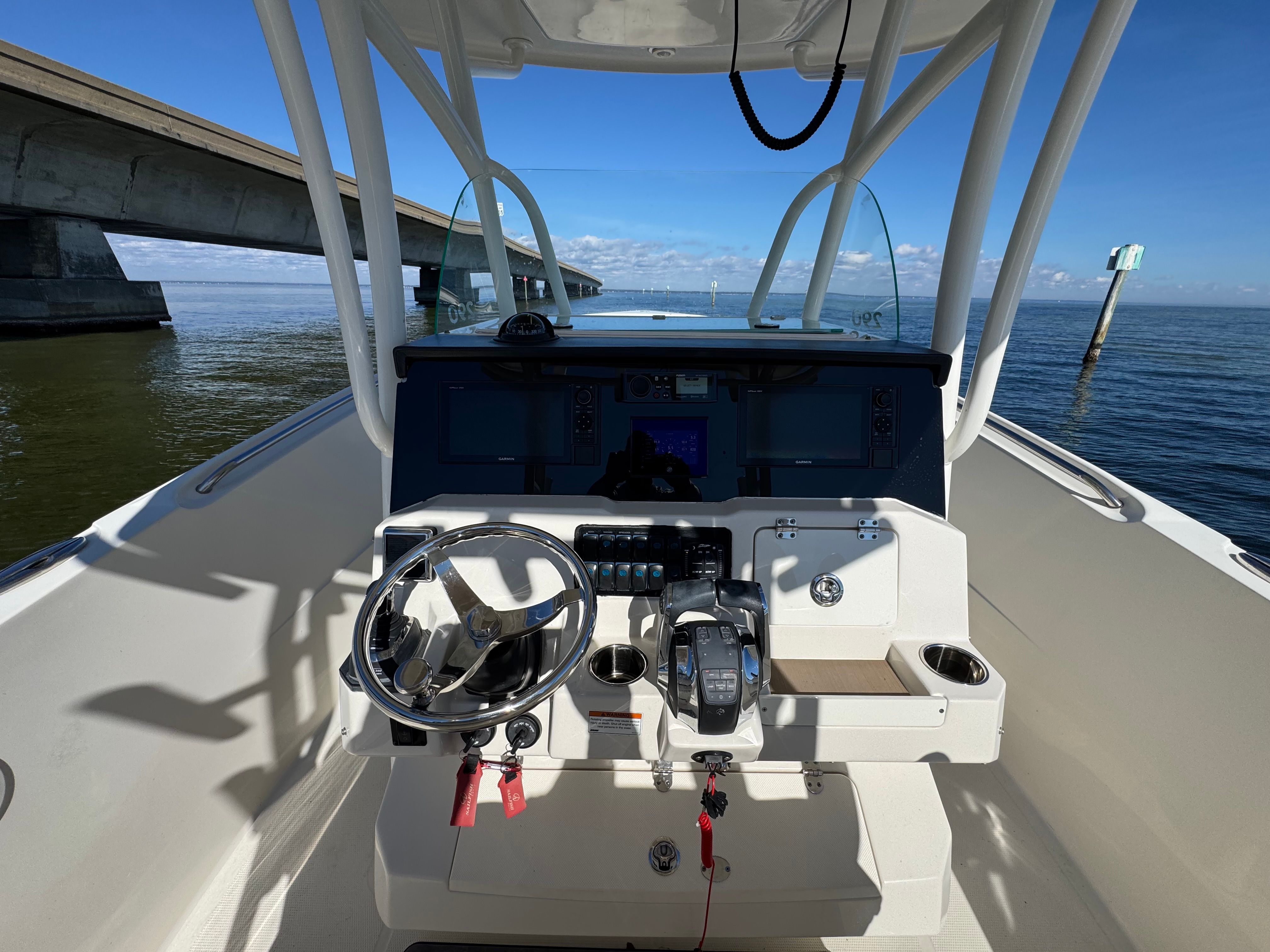 One owner beautiful Sailfish 290CC with only 105 hrs on her Twin white Mercury Verado 300's! Engines have 5 yr extended warranty, 100hr service just performed, this one is truly turnkey and ready to go.