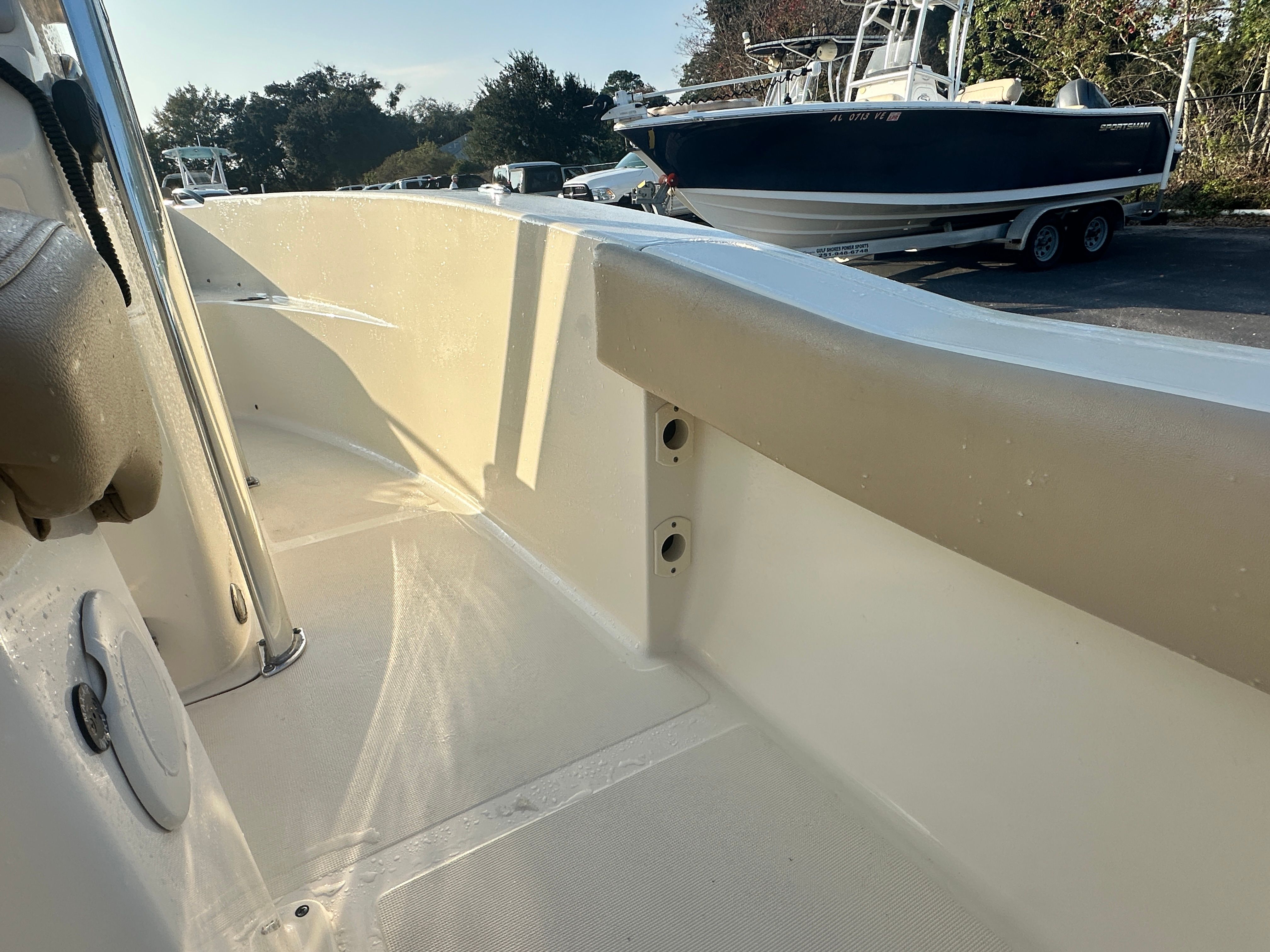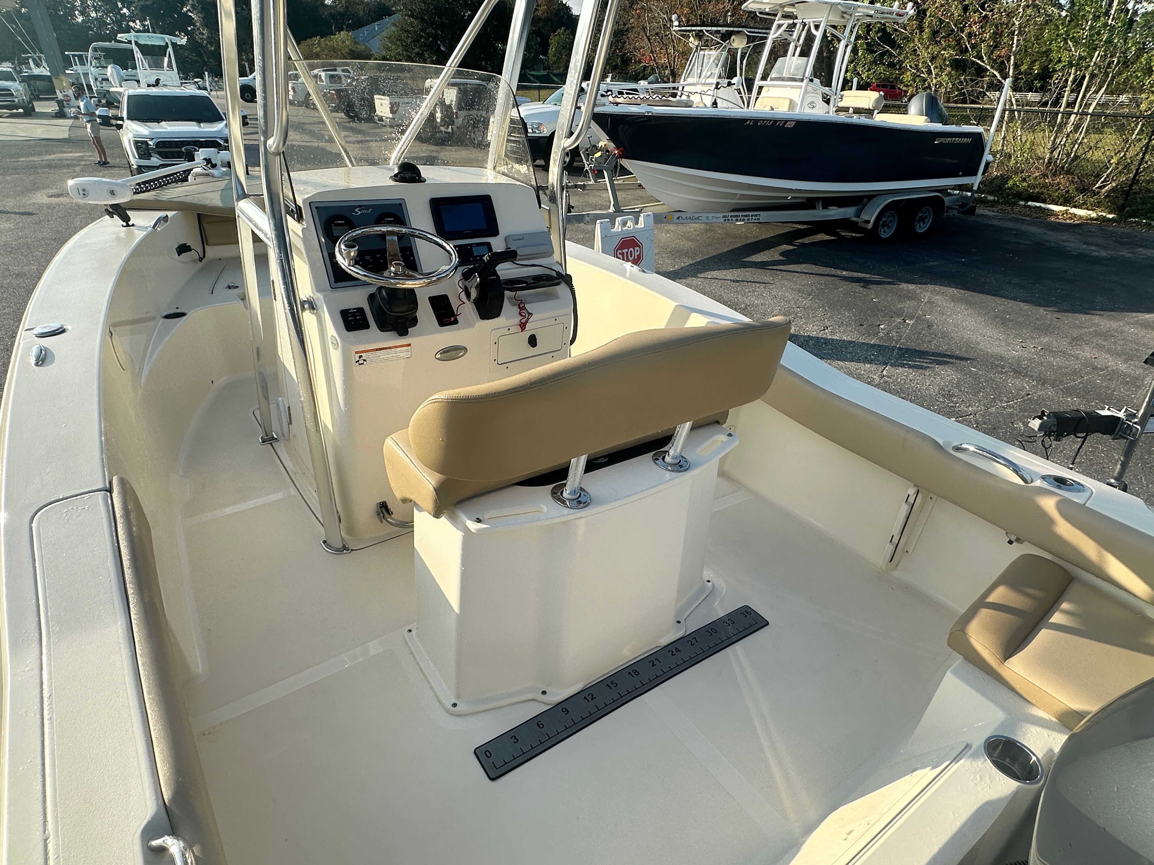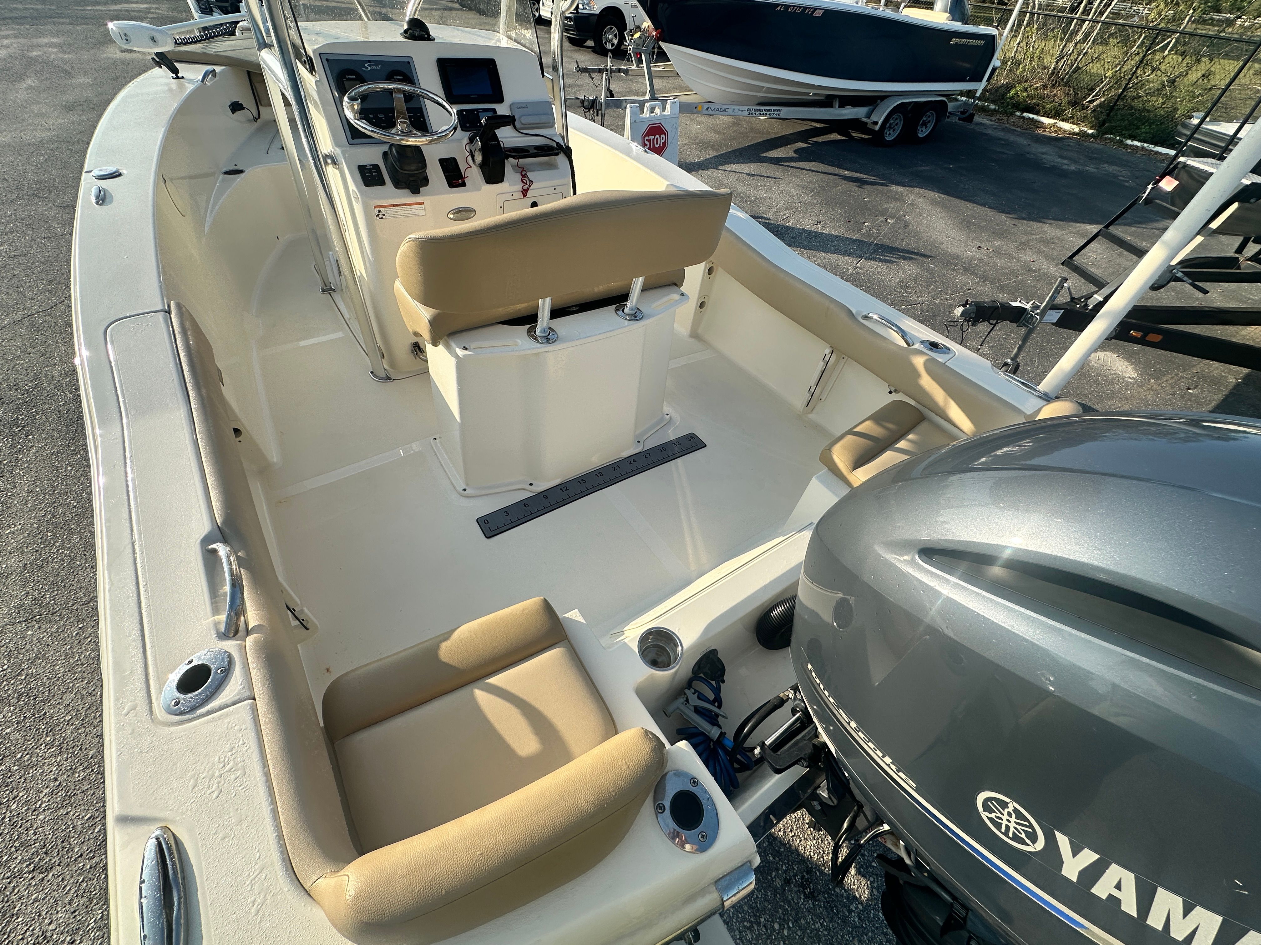 This Scout 195 Sportfish shines in a variety of scenarios. For fishing enthusiasts, the open deck and center console layout provide the perfect setup for casting, trolling, and landing your next big catch. Families will appreciate the comfortable seating and spacious design, making it easy to bring everyone along for a day of swimming, exploring, or simply relaxing on the water. The boat’s sleek profile and reliable performance also make it a great choice for those who enjoy water sports or leisurely cruises along the shoreline. No matter how you like to spend your time on the water, this Scout boat for sale is ready to deliver.