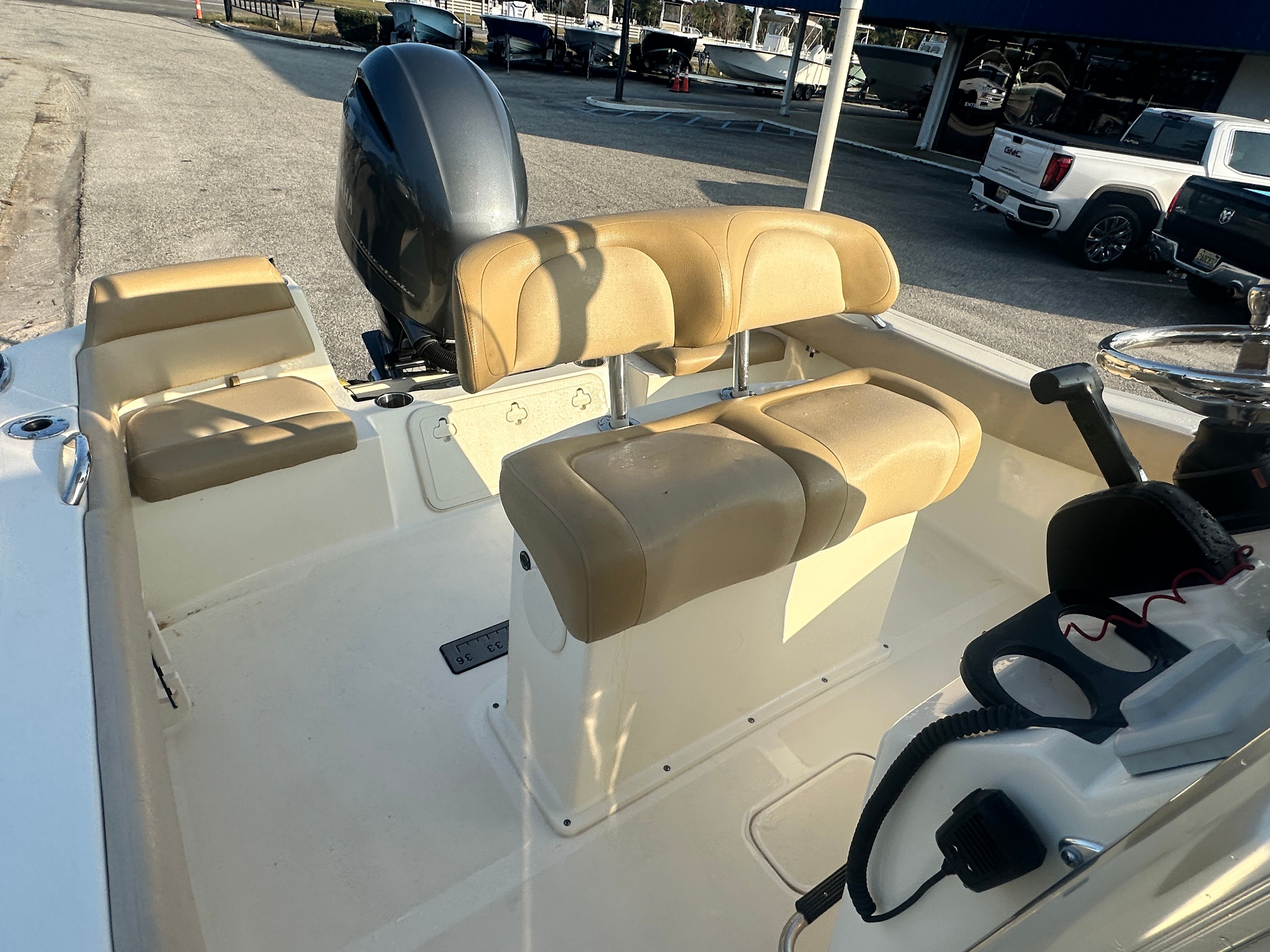 Powering this Scout 195 Sportfish is a single engine with 150 horsepower, boasting just 227 engine hours. This setup delivers impressive acceleration and smooth cruising, making it perfect for a variety of water activities. The 150 HP engine ensures you have the power needed for quick getaways, water sports, or reaching your favorite fishing spot with ease. The efficient engine also means you can enjoy longer outings without worrying about excessive fuel consumption, making this center console boat for sale a smart choice for those who value both performance and economy.