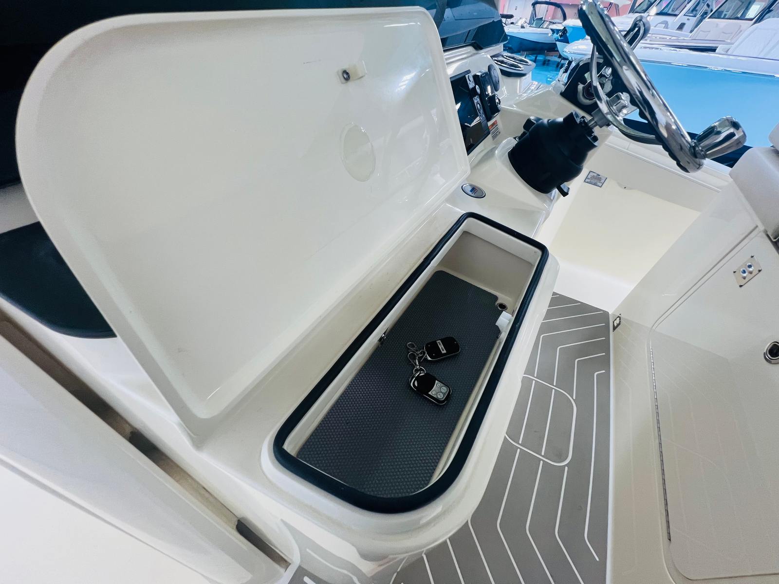 Practicality meets elegance in the Scout 377 LXF. The intelligently designed storage solutions ensure that gear, tackle, and personal items are always within reach yet neatly stowed away. The ease of docking is enhanced by the responsive handling and advanced navigation systems, making every trip stress-free from start to finish. Fuel efficiency is optimized by the Mercury V10 engines, allowing for longer journeys and more time spent enjoying your favorite activities.The integrated lighting and shade systems provide comfort and safety, whether you’re hosting a sunset cocktail party or preparing for an early morning fishing expedition. The robust construction and premium materials guarantee durability and low maintenance, so you can focus on making the most of your time on the water.