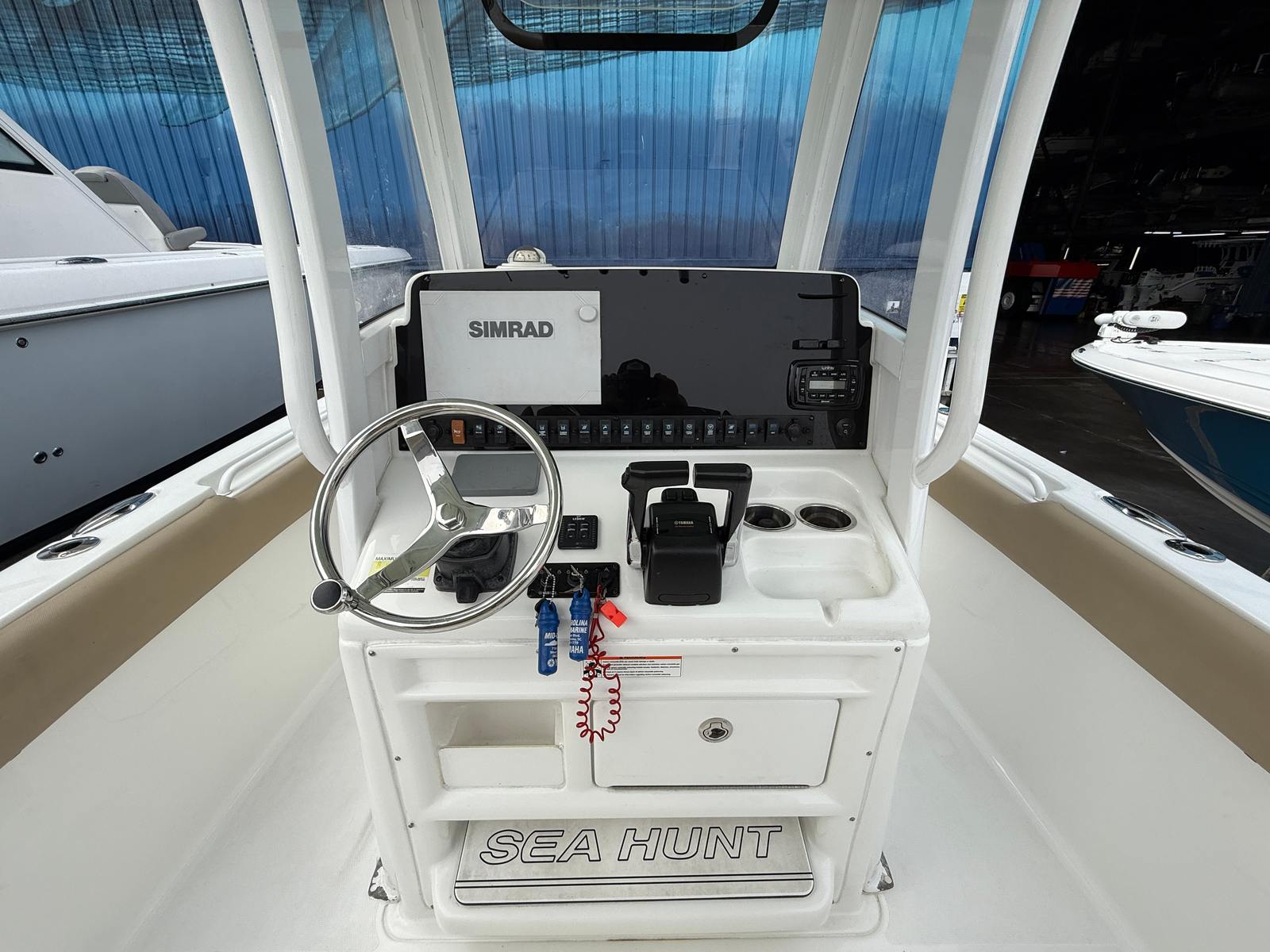 Check out this 2017 Sea Hunt 25 Gamefish powered with twin Yamaha 150s and tons of upgrades! This boat has been kept in a premium dry storage facility so the gelcoat looks great! If you are looking for an awesome fishing boat that can do it all, this one is well equipped with a Simrad EVO 12" Touch Screen GPS and Bottom Machine, a closed dome Radar, outriggers and a Rhodan GPS Trolling motor package with charger too! VHF, Stereo and upgraded toilet with holding tank and overboard discharge! This boat also includes a tandem axle trailer with new brakes and leaf springs! Priced aggressively at $77,900, call Legendary Marine today to set your appointment and get this one before she is gone!