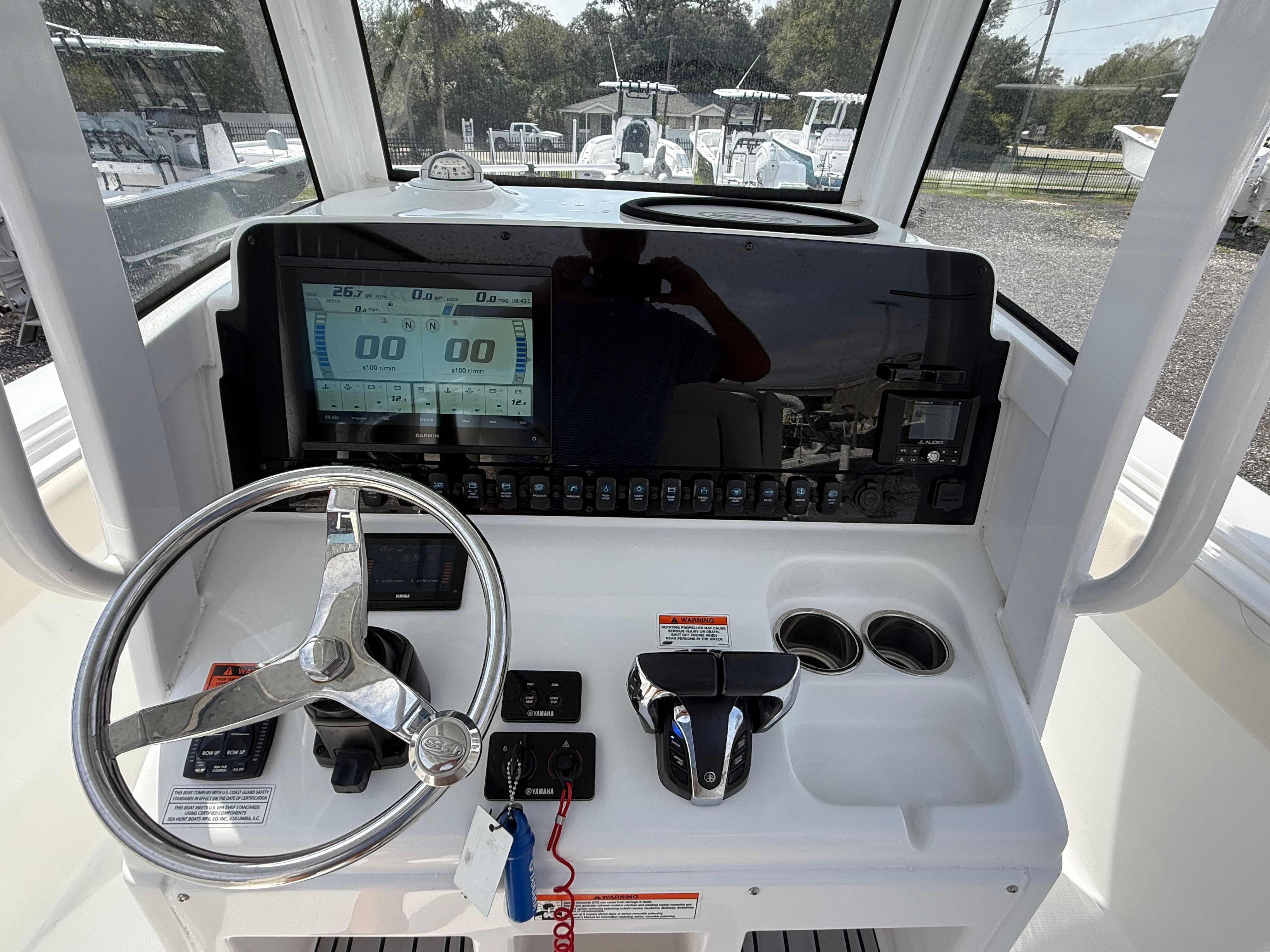The Sea Hunt 27 Gamefish FS is loaded with features that enhance both its functionality and comfort. The center console design maximizes deck space, allowing for easy movement around the boat and providing unobstructed access to all areas. This layout is perfect for anglers who need room to cast and maneuver, as well as for families who appreciate open, social spaces.Special features of the 27 Gamefish FS include a thoughtfully designed helm with intuitive controls, comfortable seating arrangements, and ample storage for gear and supplies. The boat’s construction reflects Sea Hunt’s commitment to quality, with durable materials and attention to detail evident throughout. The spacious deck is ideal for fishing, sunbathing, or simply relaxing with friends and family. The twin engines are not only powerful but also fuel-efficient, helping you make the most of every trip without worrying about excessive fuel costs.