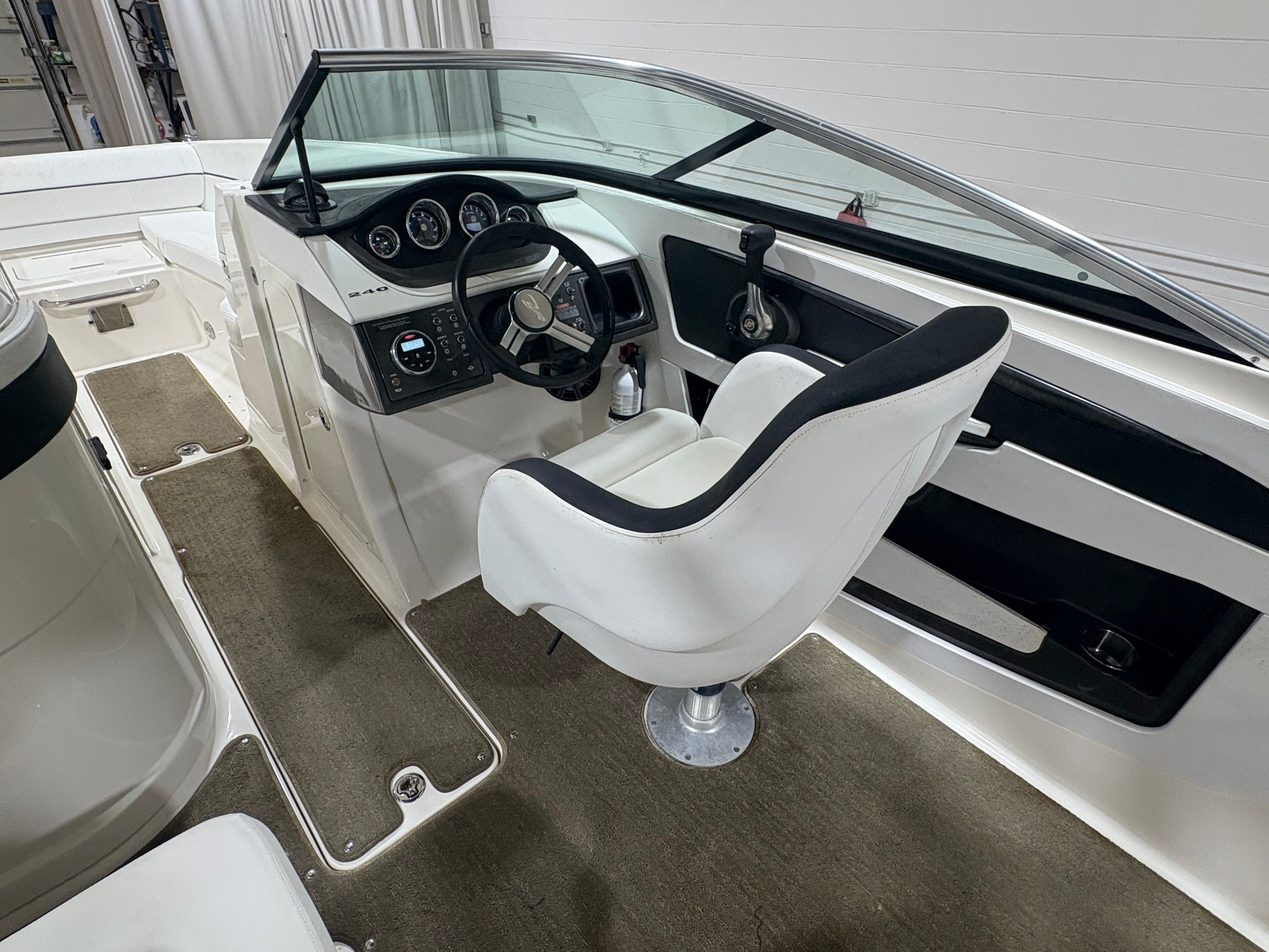 Check out this 2014 Sea Ray 240 Sundeck with the Mercruiser 5.0 MPI motor! This 260 horsepower boat has 199 hours and is just in need of a new home! It also comes with a folding wakeboard tower with collapsible Bimini top, snap-in carpet, dual batteries, stereo with lighted speakers, dual stainless steel props, docking lights, depth finder, and more! Rated for 13 persons, this boat is perfect for you and friends and or family to hit the water!