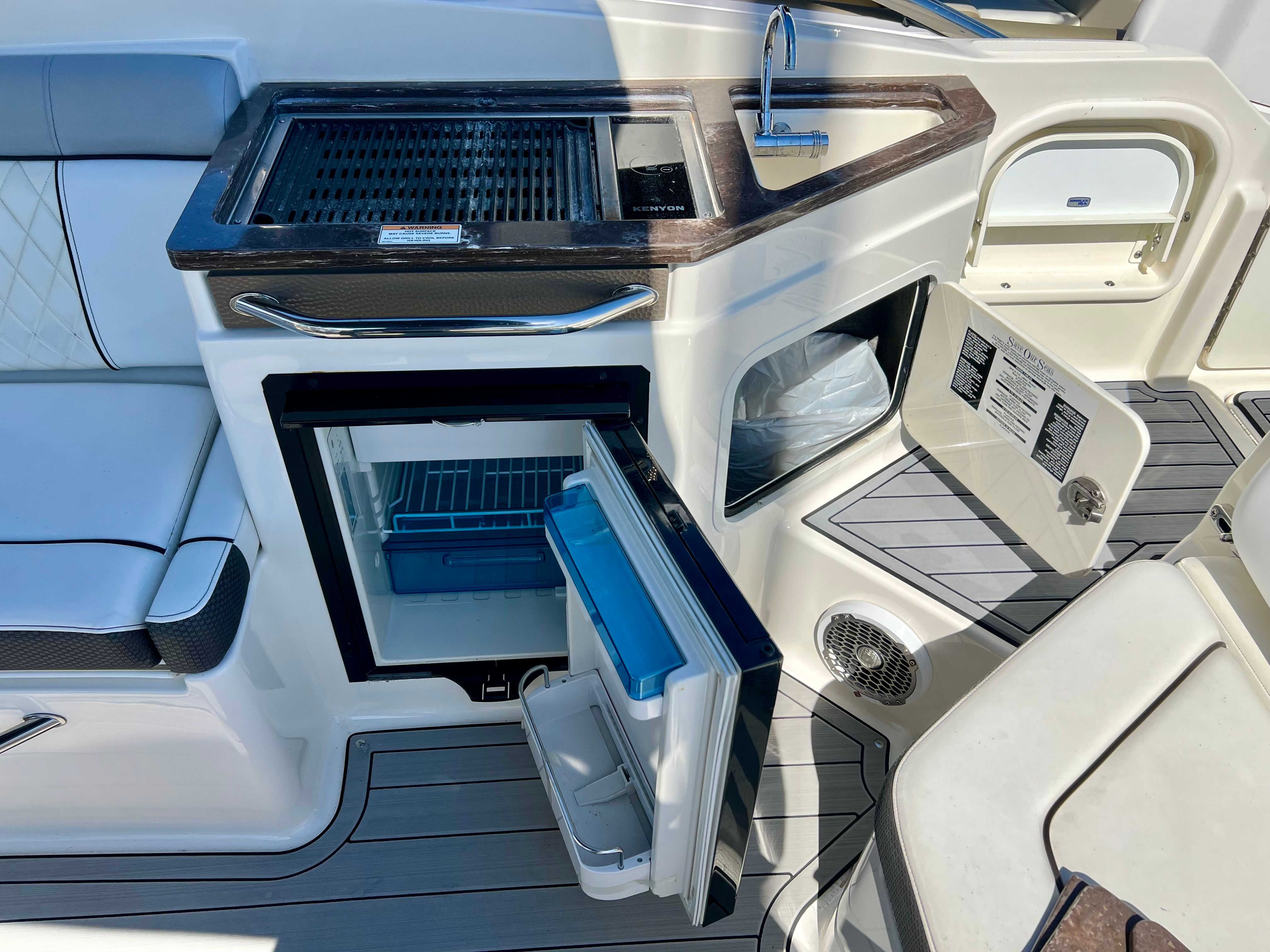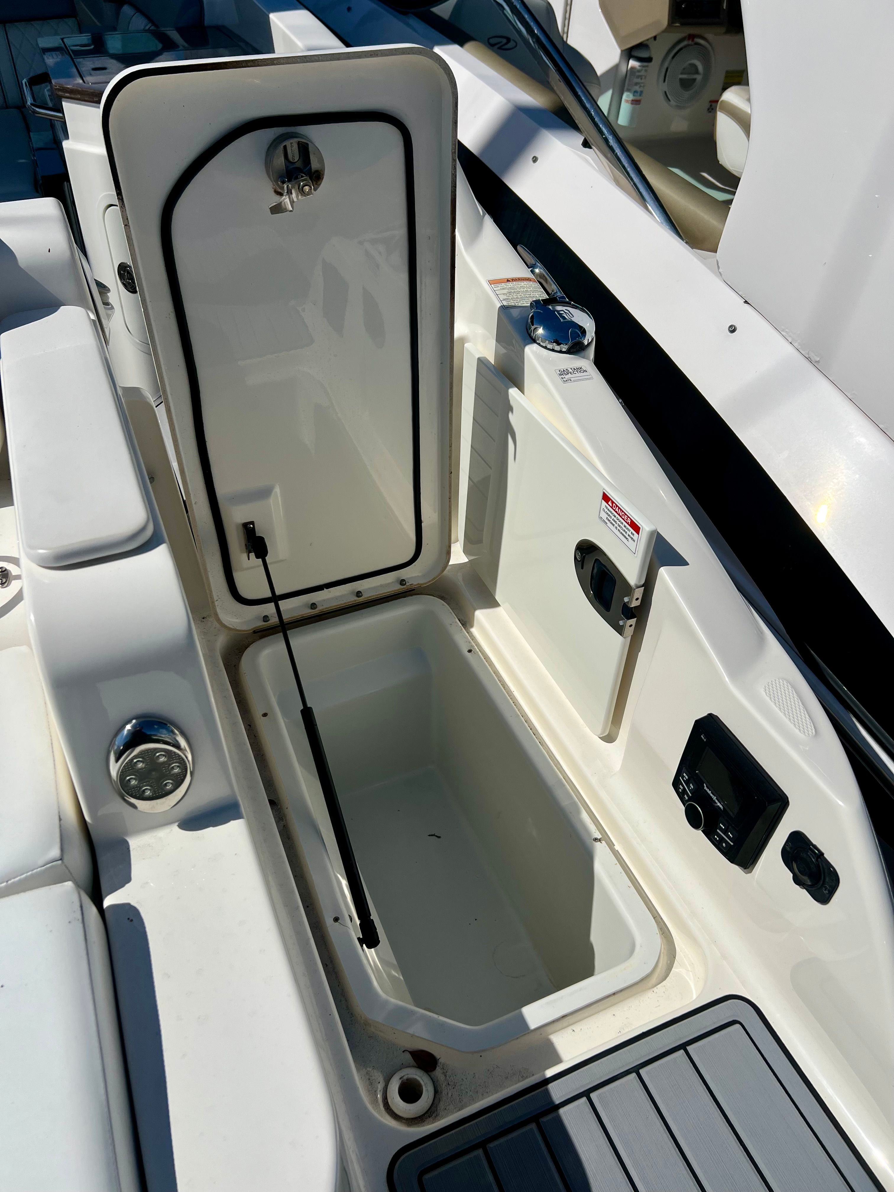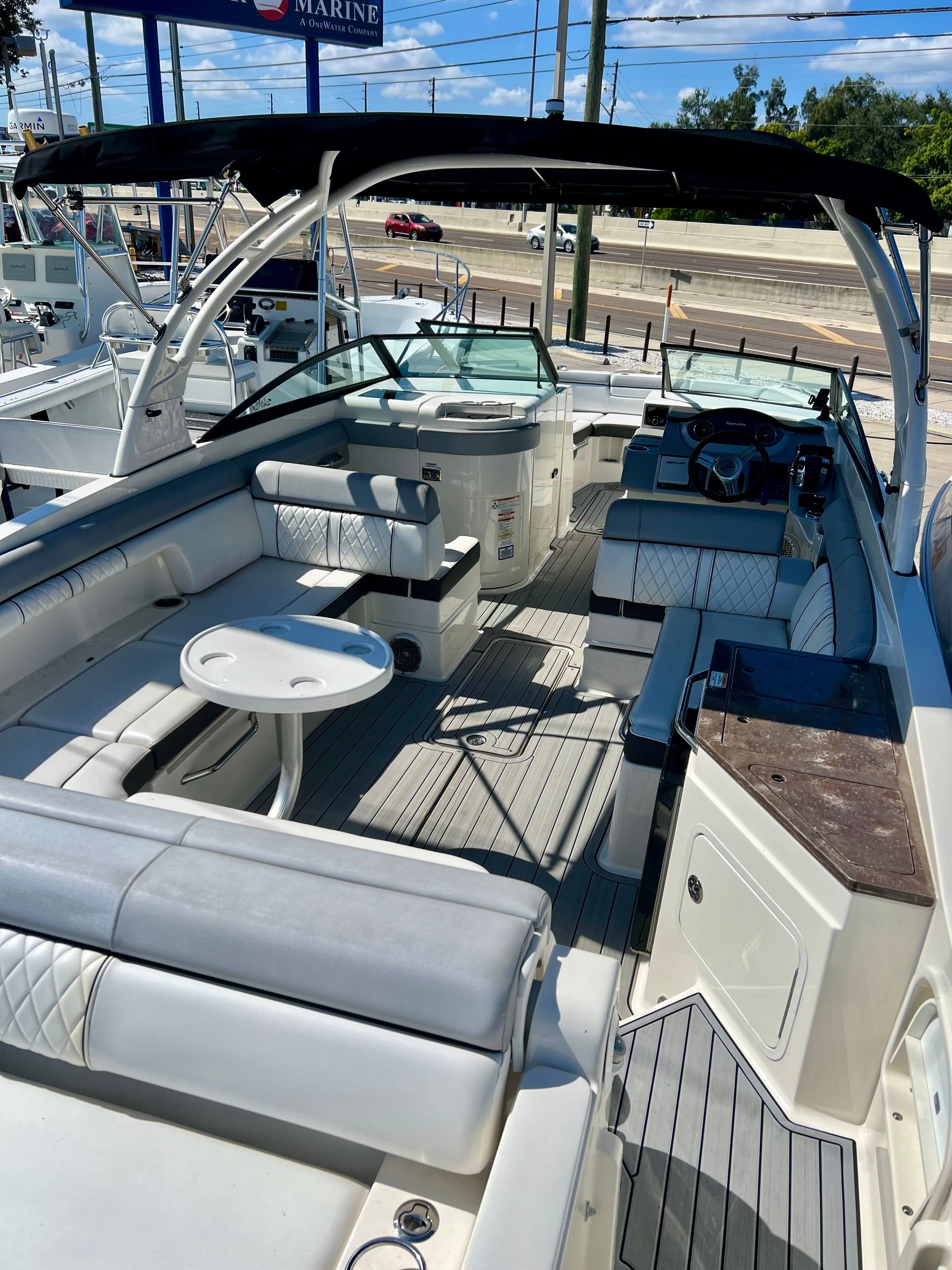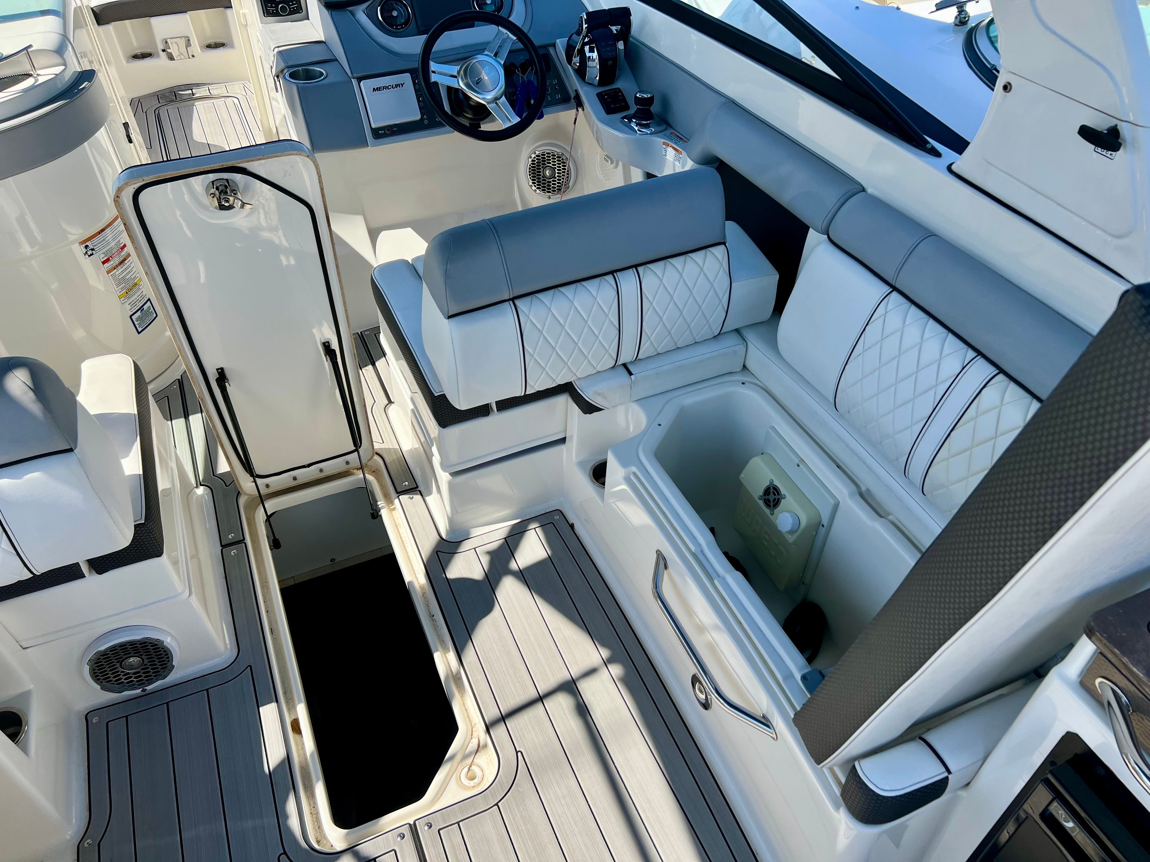 Powering the Sea Ray Sundeck 290 are two robust engines, delivering a combined 500 horsepower. With only 371 engine hours, these engines promise reliable performance and plenty of life left for future adventures. The dual-engine setup ensures smooth acceleration, responsive handling, and the ability to reach impressive speeds, whether you’re cruising along the coastline or heading out for a day of watersports. The Sundeck 290’s performance capabilities make it a top choice for those who want both excitement and dependability from their Bowrider boat.