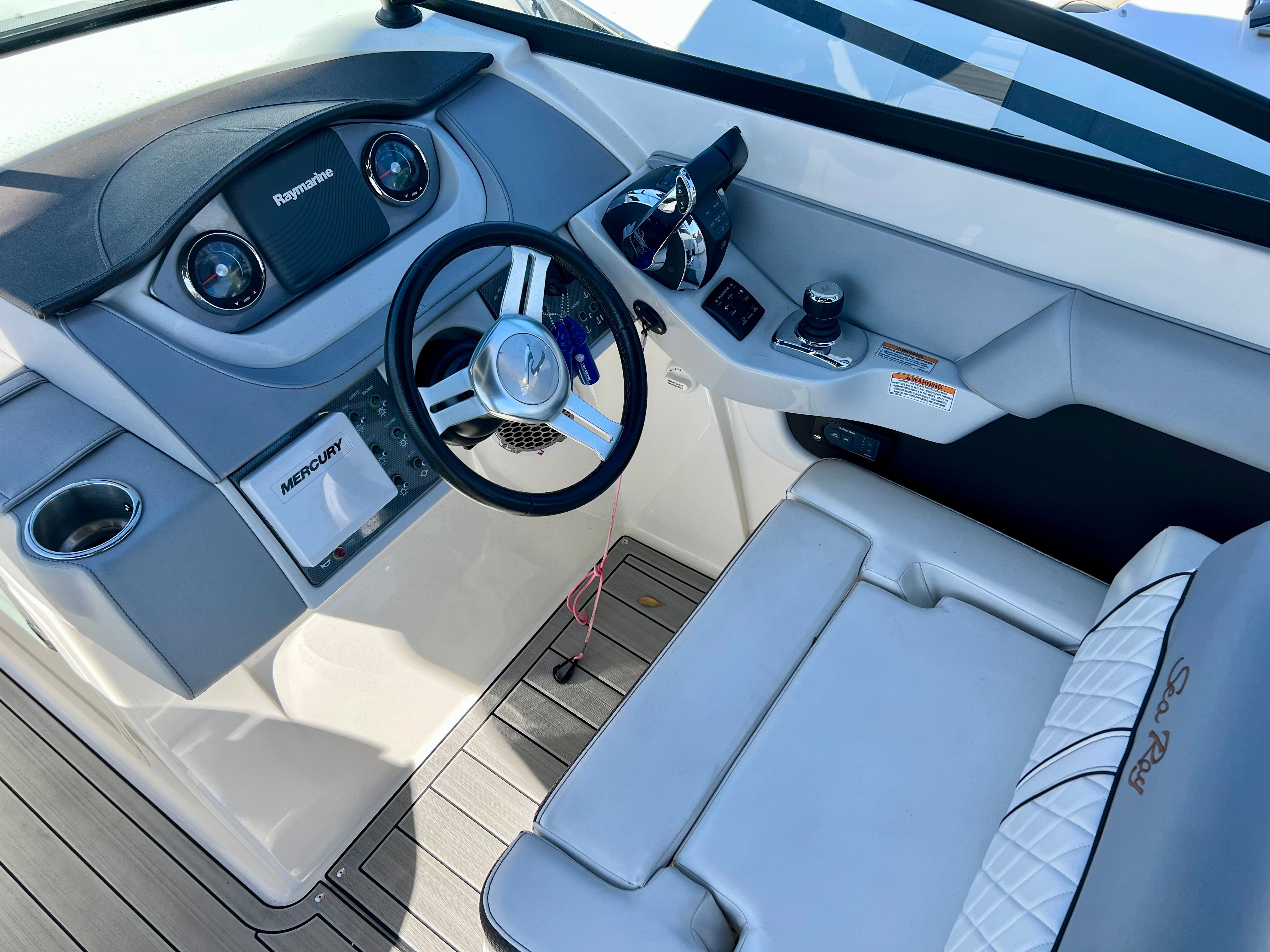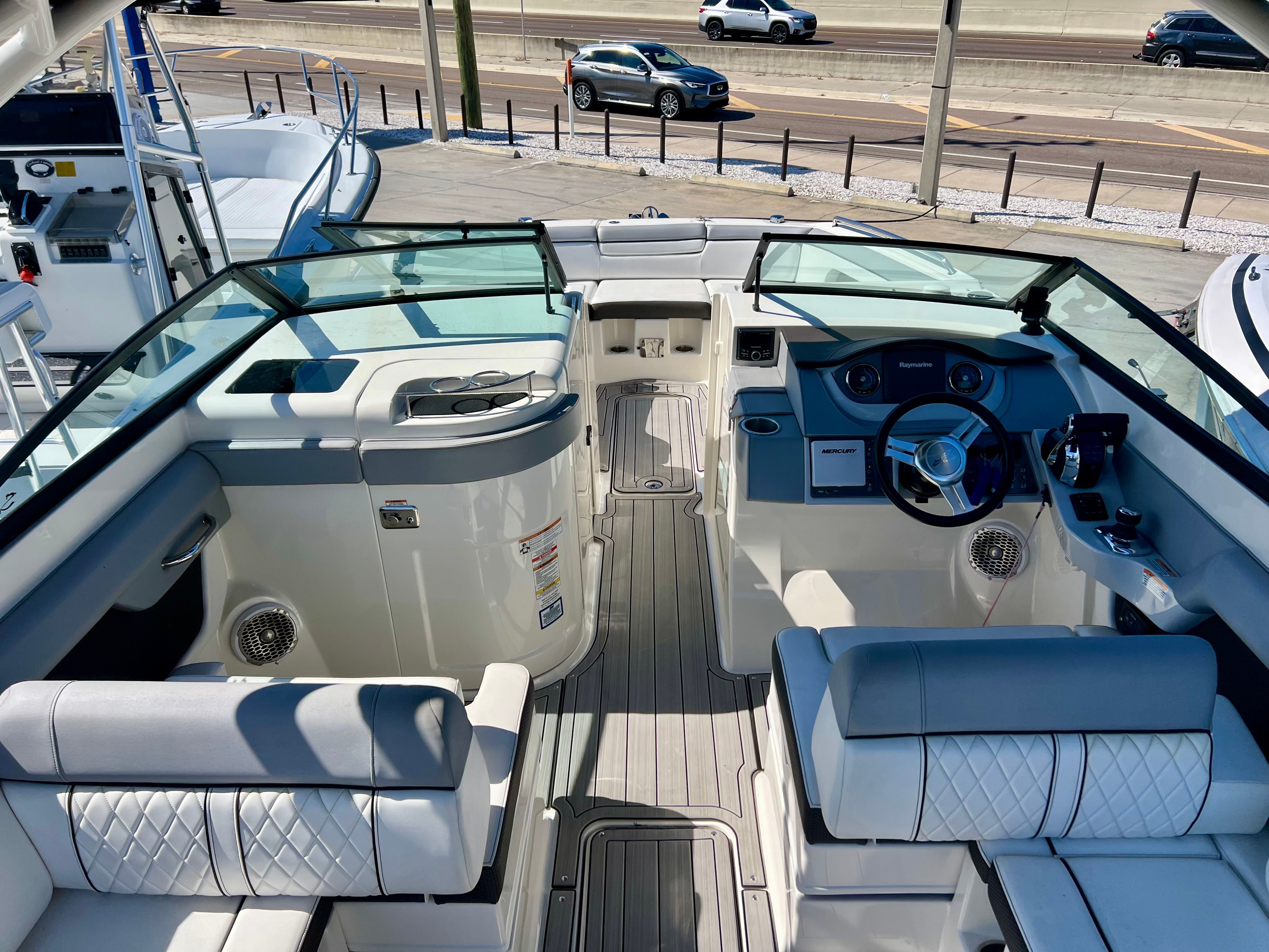 The Sea Ray Sundeck 290 shines in a variety of scenarios, making it a versatile choice for any boating enthusiast. For family outings, the spacious seating and safe design ensure everyone can relax and enjoy the ride. The open deck is perfect for sunbathing, picnics, or simply soaking up the scenery. If you love watersports, the powerful engines provide the speed and agility needed for wakeboarding, tubing, or skiing.For those who enjoy fishing, the Sundeck 290 offers plenty of space for gear and comfortable seating for a day on the water. Its stable hull and responsive handling make it easy to navigate to your favorite fishing spots. If luxury getaways are more your style, the Sea Ray Sundeck 290 delivers a premium experience with its elegant design and smooth performance, making every trip feel special.