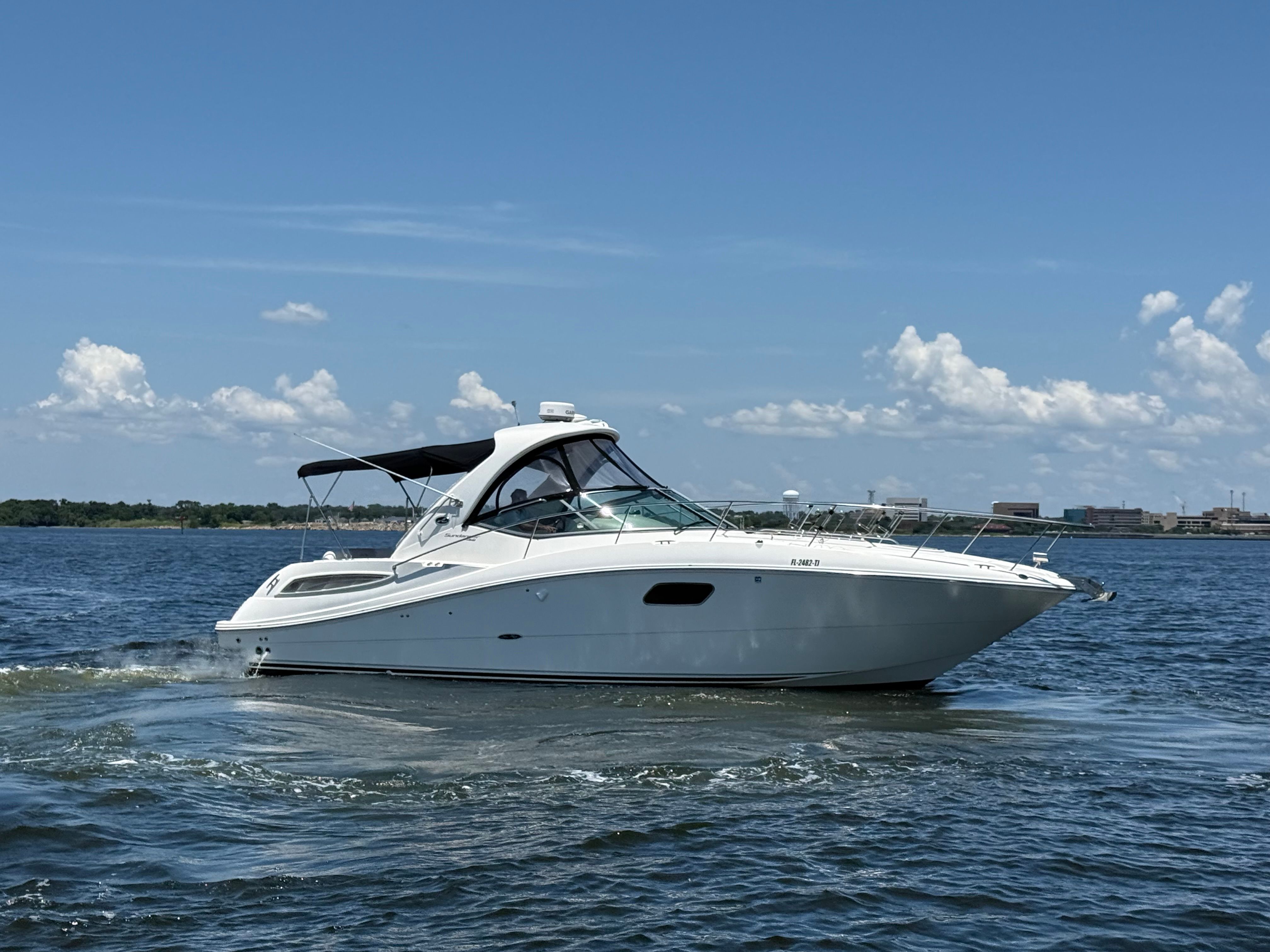 This is an incredible opportunity to own a very clean 2011 Sea Ray 350 Sundancer. She has just recieved NEW manifolds and risers, the bottom paint is less than a year old and she is stored on a rack out of the water. The 8.2L Mercruisers have 502 hours on them and are in excellant running. shape. The boat is a V drive configuration with both a bow and stern thruster for great maneuverability. If you are looking to get out and do some coastal cruising in style this summer don't miss out on this great boat. "Make Memories not Dreams"