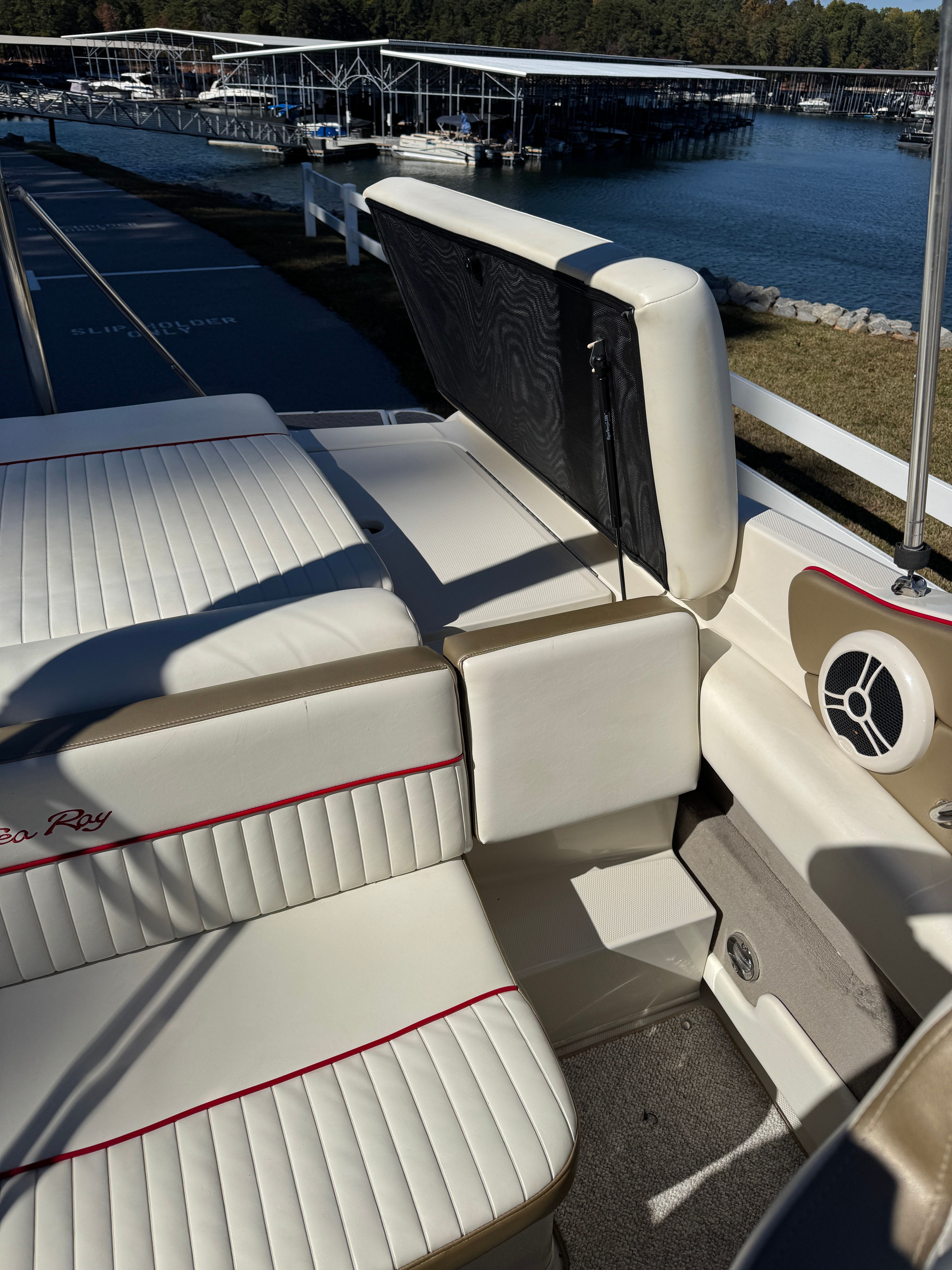 Practicality is a key advantage of the Sea Ray Select 210 Bowrider. The boat’s manageable size makes it easy to dock and maneuver, even in crowded marinas or tight spaces. Generous storage compartments allow you to keep your gear organized and out of the way, so you can focus on enjoying your time on the water. The efficient engine not only delivers impressive power but also helps keep operating costs down, making this Sea Ray boat for sale a smart investment for those who want maximum enjoyment with minimal hassle.The Select 210’s thoughtful design also makes it easy to clean and maintain, ensuring that your boat stays looking great season after season. Whether you’re planning a quick getaway or a full day of adventure, this Bowrider is equipped to handle it all with ease.